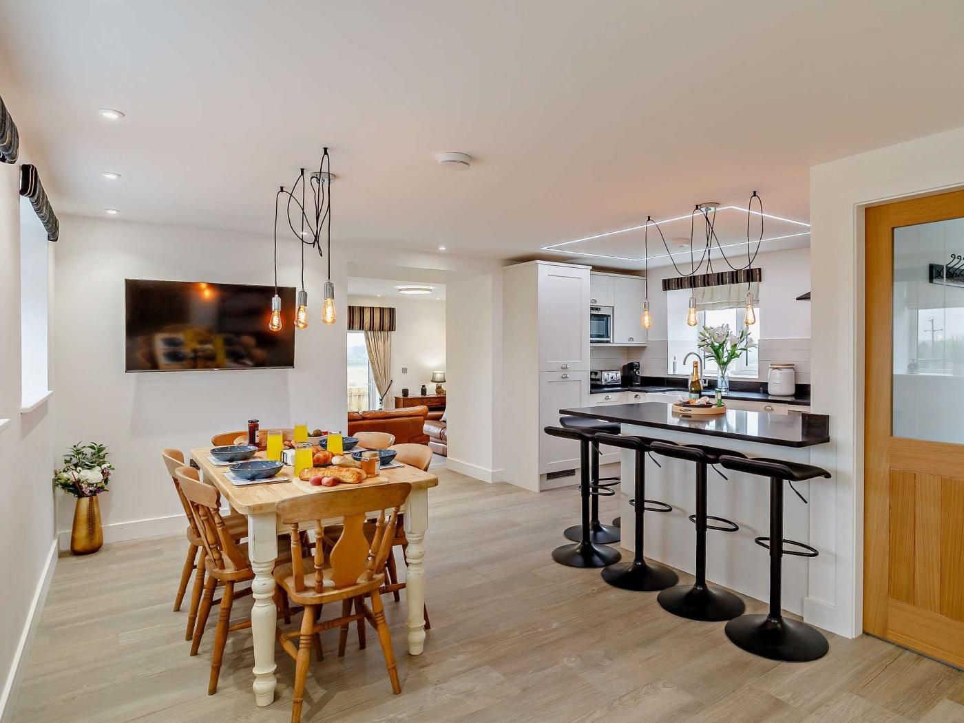 This spacious and airy barn conversion in the West Yorkshire countryside offers a luxurious getaway for families.