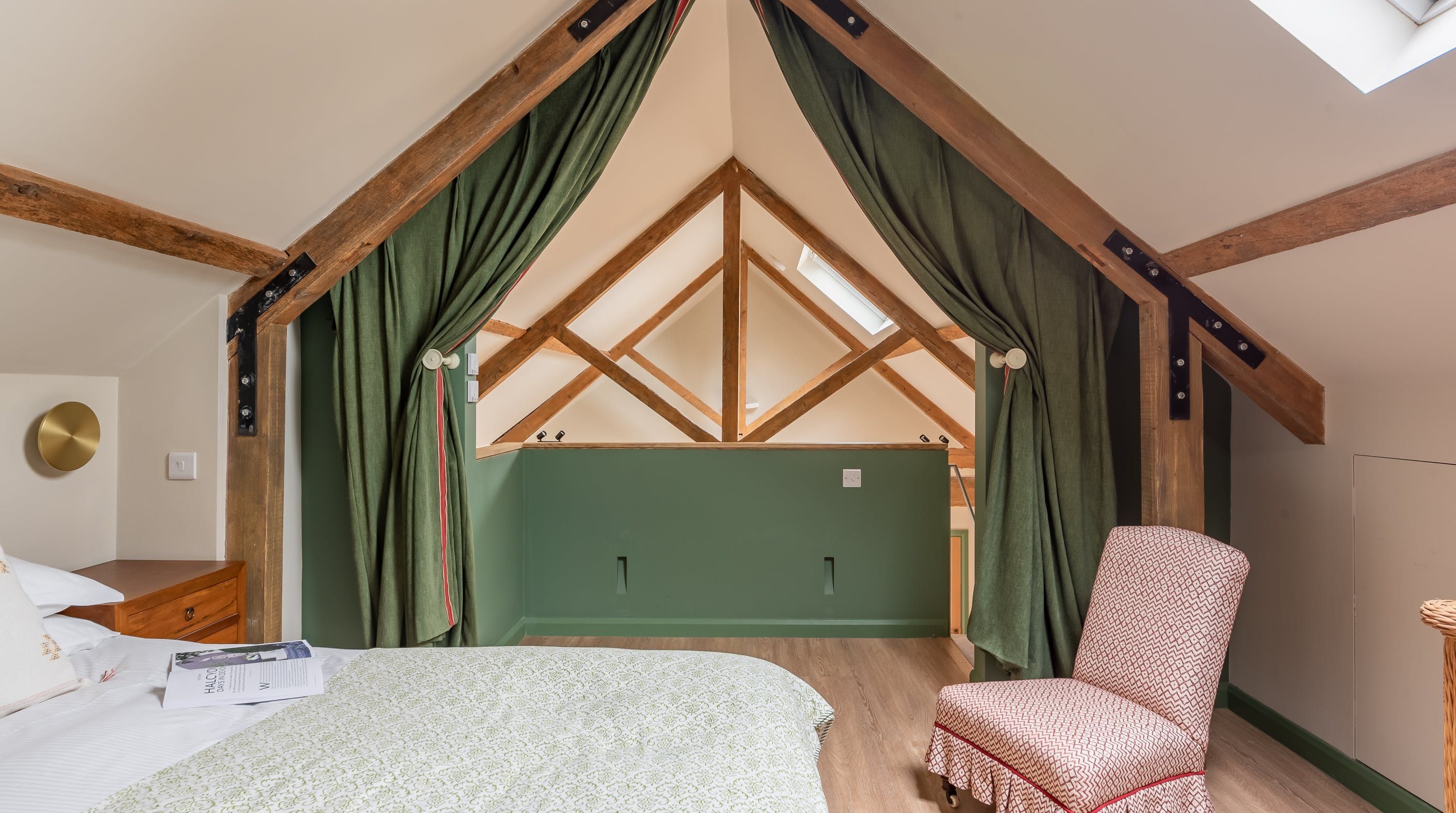 While the former stable dwelling may have old bones (check out those lofty oak beams), there's nothing twee about its interiors inside. Every inch of the home is beautifully reimagined for pure modern luxury with statement lighting, vibrant textiles, and curated artwork bringing a touch of refreshing and playful modernity.