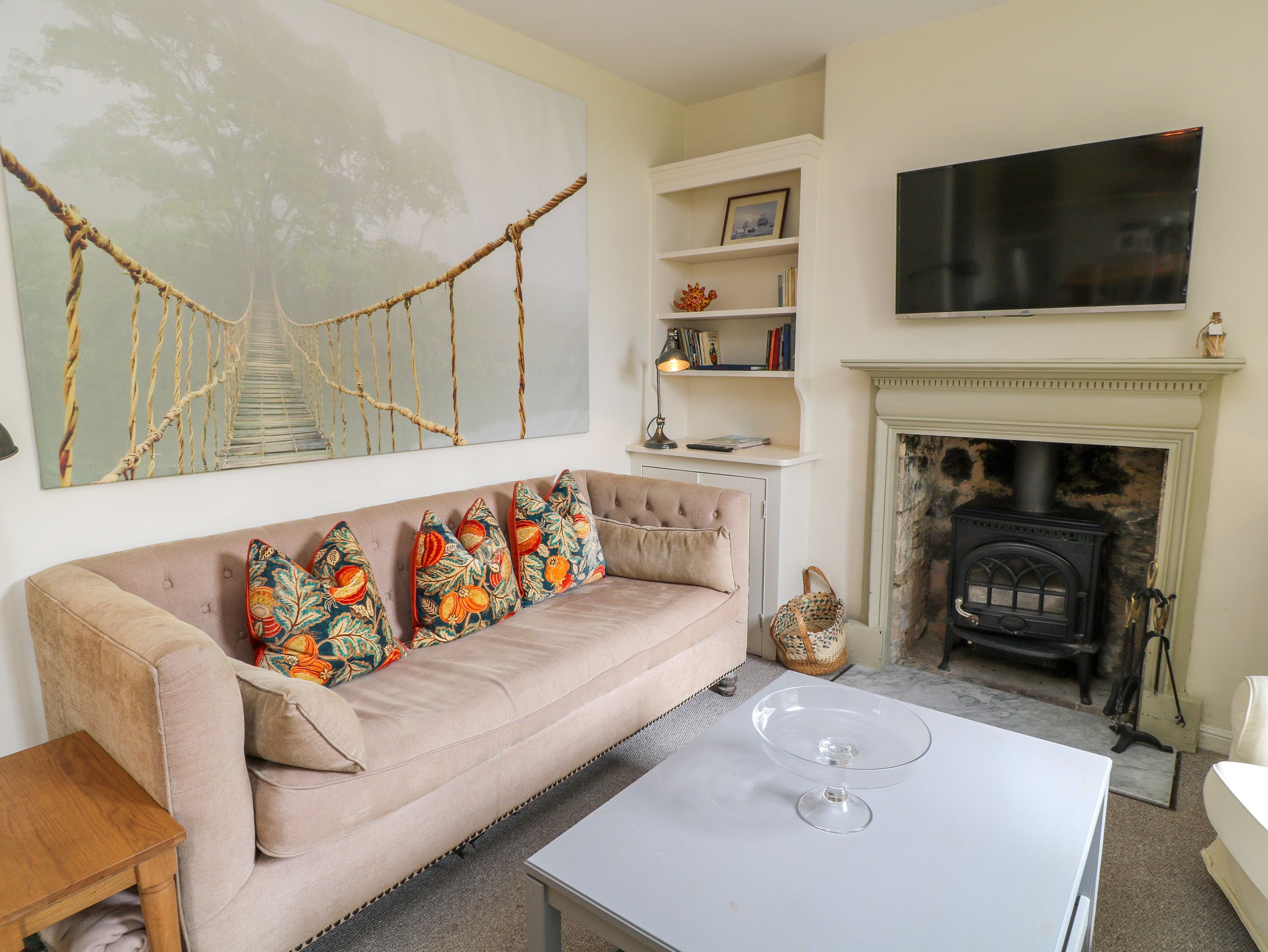 Central heating. Electric oven and hob, microwave, fridge, freezer, dishwasher and Nespresso coffee machine. Smart TV and WiFi. Fuel, power and starter for woodburning stove inc. in rent. Bed linen and towels inc. in rent. Highchair and travel cot available on request. Off-road parking for 2 cars. Shared garden with Bluebell Cottage and barbecue. Two well-behaved dogs welcome. Sorry, no smoking. Shop and pub 2.4 miles. Note: Please bring your own charcoal for the barbecue. Note: Linen for the travel cot is not provided