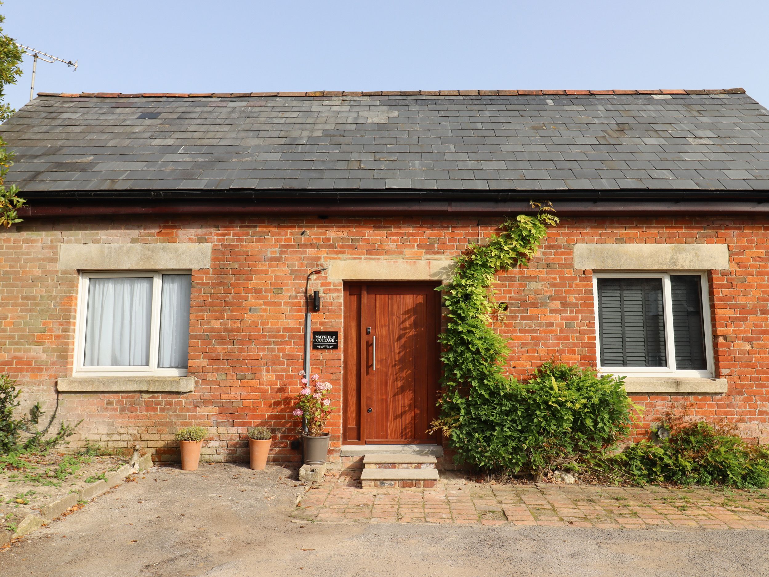 Holiday home Mayfield Cottage is a delightful dwelling featuring an open-plan living space with kitchen, dining area, and sitting area with electric fire. Appliances include an electric oven and hob, microwave, fridge/freezer, washing machine, dishwasher, and two Smart TVs. The bedrooms consist of a king-size and a twin (zip/link), serviced by a shower room. Outside, there is an enclosed courtyard along with off-road parking. Within 2.2 miles, you will find a shop, and within 0.1 miles, a pub. Please note, this property welcomes four well-behaved dogs, but is non-smoking. Wi-Fi, fuel, power, bed linen, and towels are all included in the rent. Highchair and travel cot available on request. Enjoy a refreshing escape to Wiltshire at Mayfield Cottage. Note: Check-in from 6pm, check-out by 10am. Note: The cottage rests in the grounds of Pettifers Hotel.