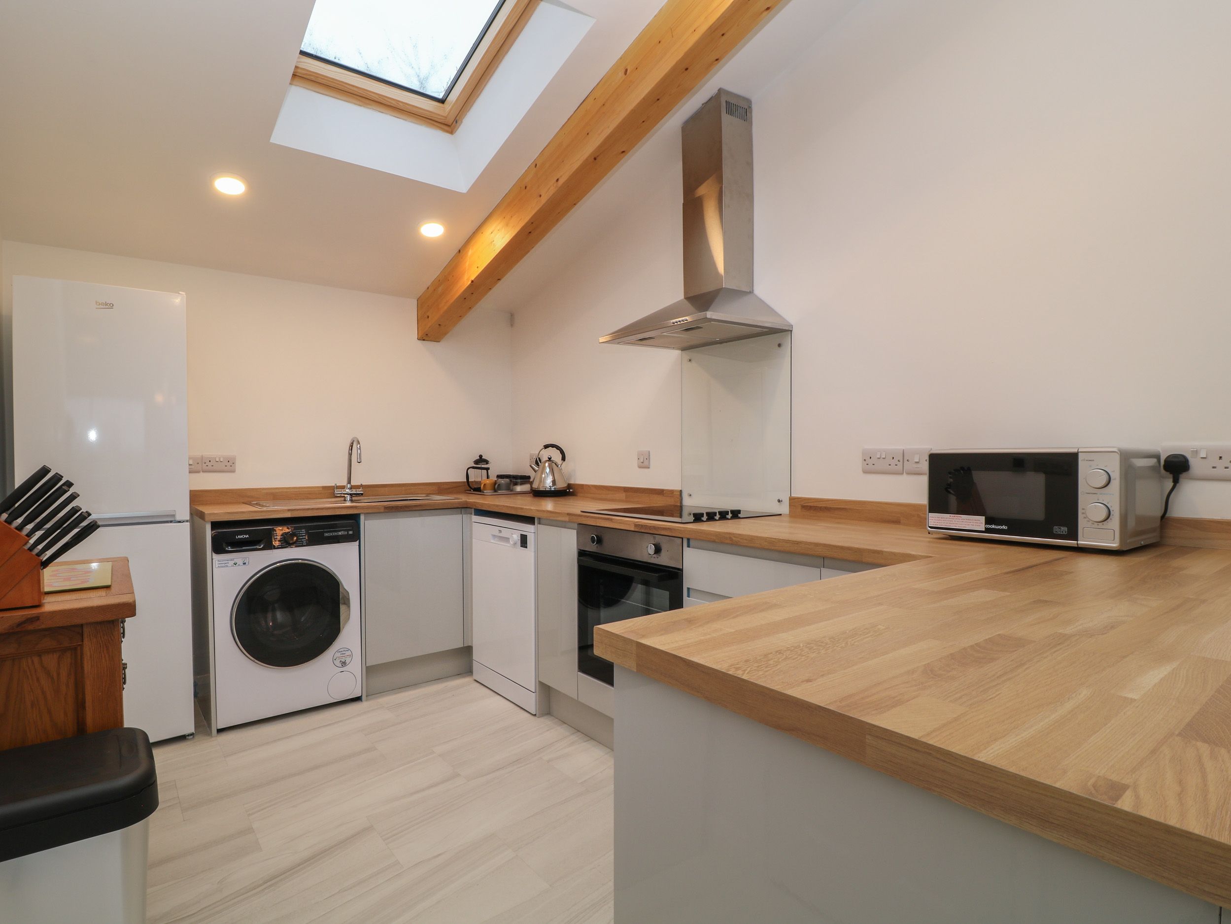 Holiday home The Cook House consists of an open-plan living room and kitchen with a dining table seating six, electric oven and hob, fridge freezer, washing machine, tumble dryer, dishwasher, microwave, DVD player, selection of books and maps and a Smart TV. The bedrooms consist of two king-size beds with en-suite walk-in showers, and a twin, serviced by an additional bathroom. Underfloor central heating, fuel, power, electric, WiFi, bed linen and towels are all included. Outside, there is off-road parking for two cars and a garden with lawn, patio and furniture and a shed with fishing equipment, as well as access to a private fishing lake on site. This is a pet-free and smoke-free property. You'll find the closest shop and pub within 1.9 miles. Note: This property is on a working farm.
