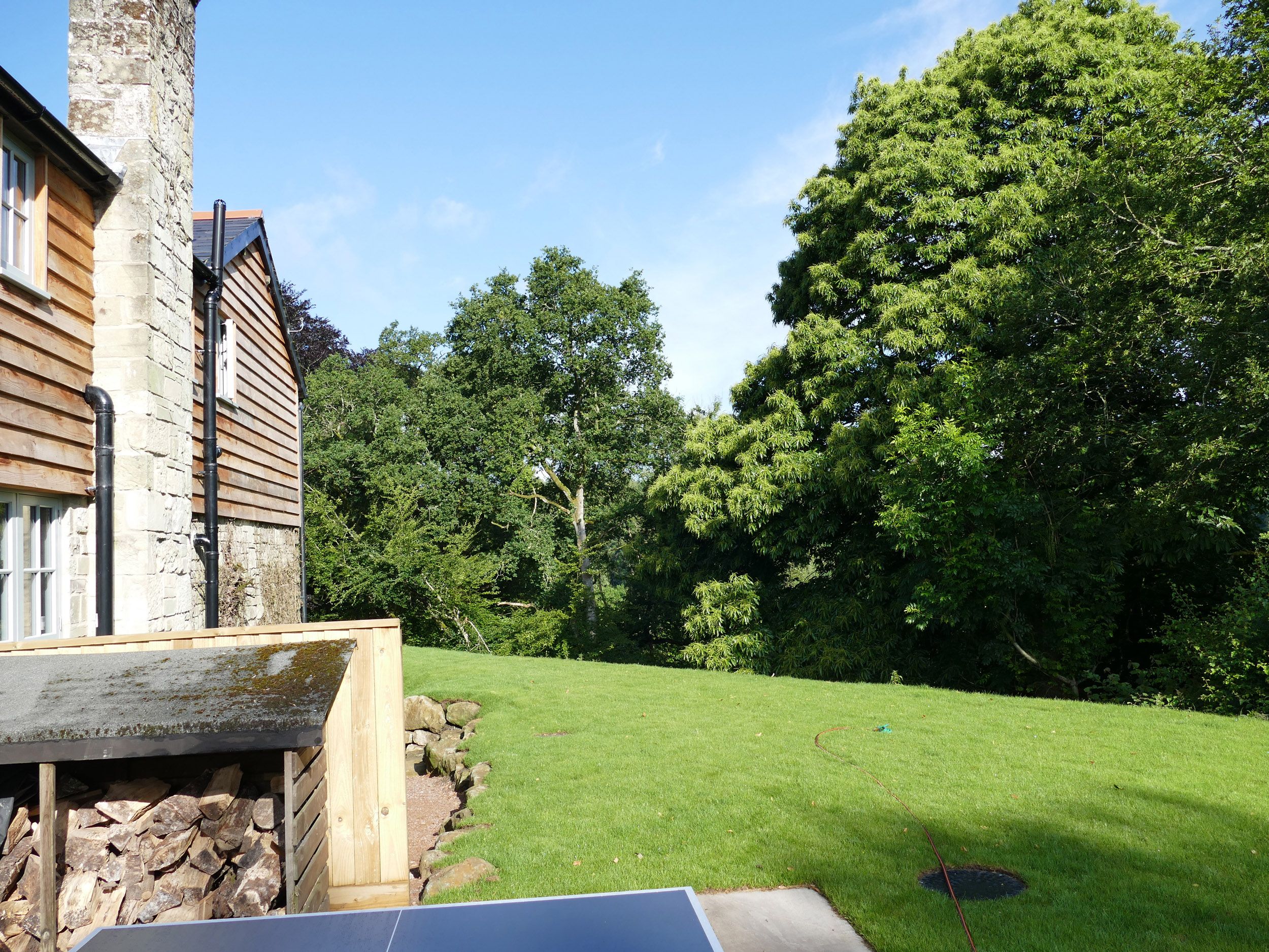 Amenities Oil central heating with woodburning stove. 2 x electric ovens and gas hob, microwave, fridge, chest freezer, 2 x dishwasher, Smart TV and full fibre WiFi (150mb). Fuel and power inc. in rent. Bed linen and towels inc. in rent. Ample off-road parking. Terraced gardens and patio with furniture, gas barbeque and wood-fired hot tub (arriving in September). One well-behaved dog welcome. Sorry, strictly no smoking. Shop 1.5 miles, pub 0.3 miles. Note: Steep hill to the woods below, children to be supervised outside. Note: Hot tub will be available from September onwards. Please note: This property is suitable for family holidays. Note: No stag/hen parties or similar. Note: This property may not suitable for people who are are less mobile or for wheelchairs due to steep location, althought the path leading to property has a handrail. Please contact our reservations team for more details. Please contact our reservations team if you are booking within 3 days of arrival date. Note:There is a Type 2 electric car charge point at the property. There is a flat fee charge of £30 to use the facility during your holiday. Note: The ground - floor bedroom is accesed via two steps.