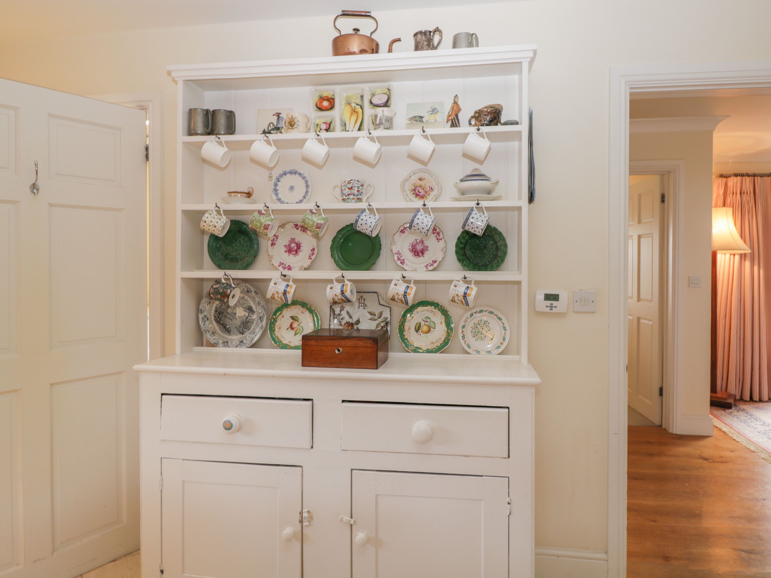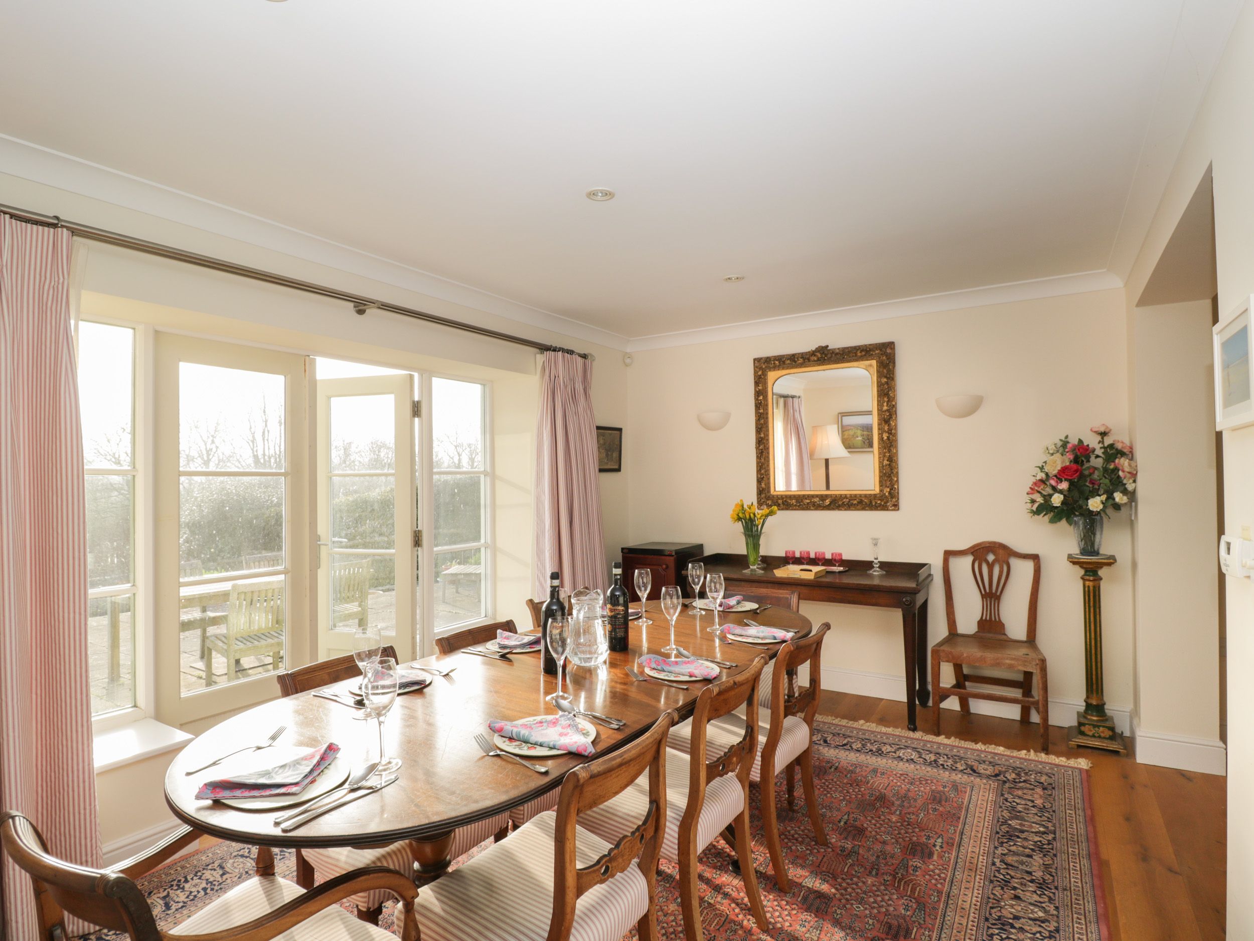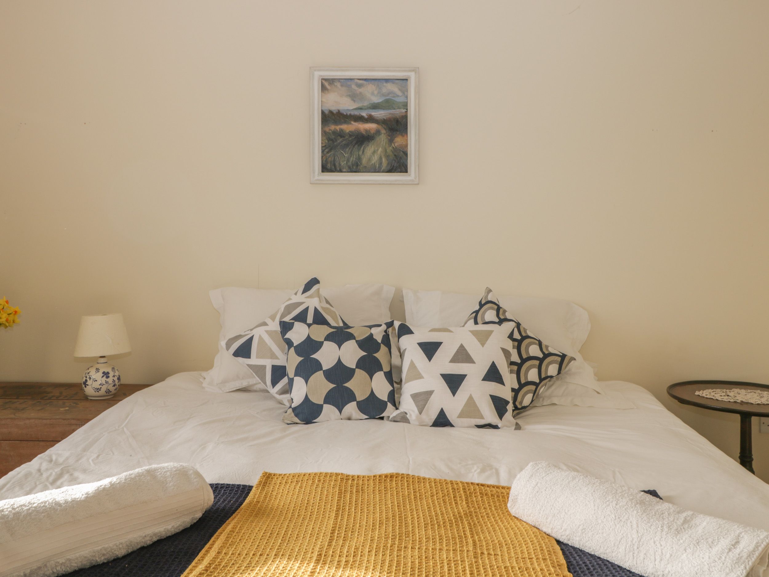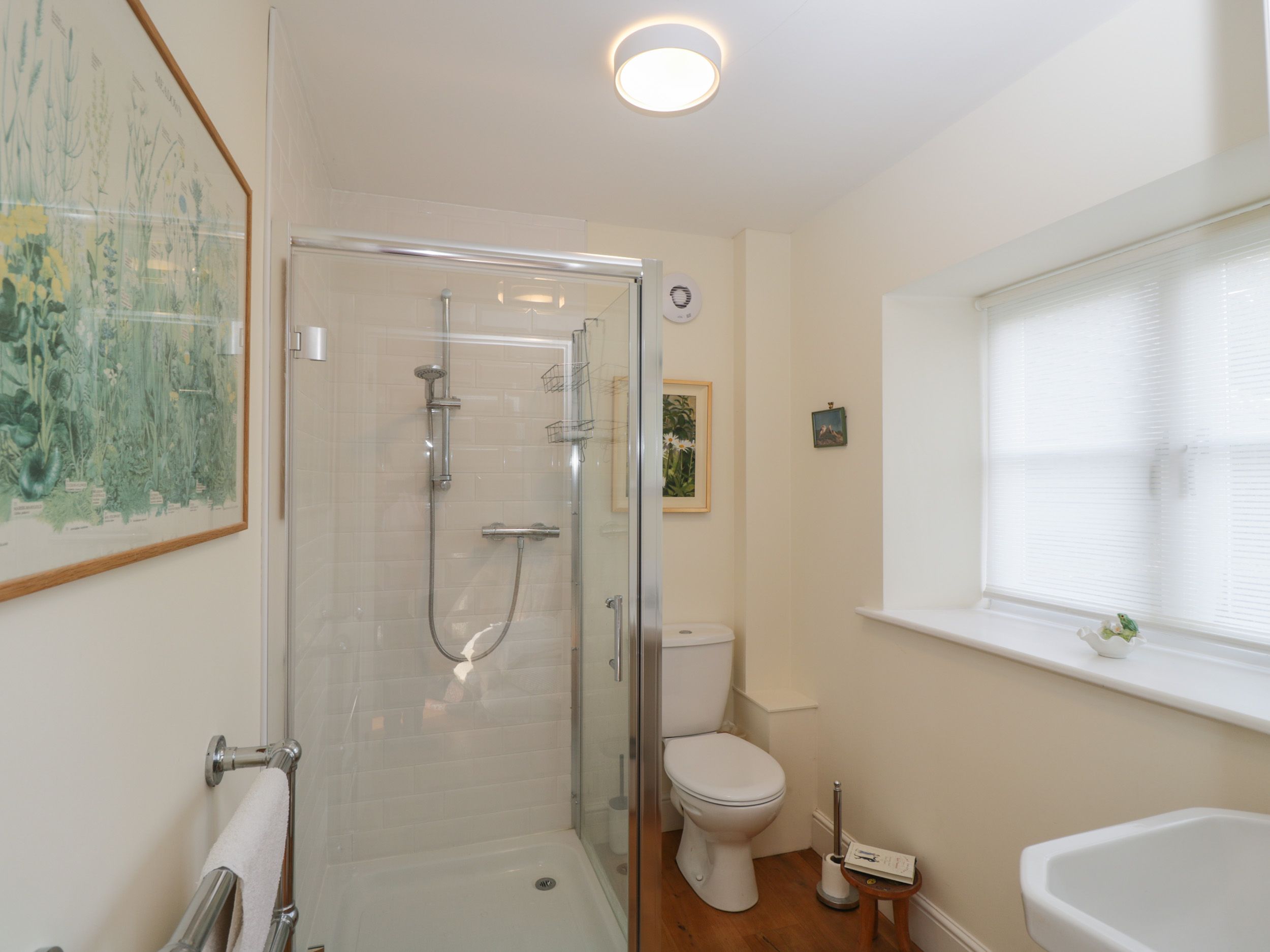 Accomodation Details Four bedrooms: 1 x ground-floor super-king-size (zip/link, can be twin on request), 1 x king-size with en-suite shower, basin, heated towel rail and WC, 1 x king-size, 1 x twin. Bathroom with bath, hand held shower, basin and WC. Ground-floor shower room with walk-in shower, basin, heated towel rail and WC. Kitchen/diner. Utility. Dining room. Sitting room with open fire