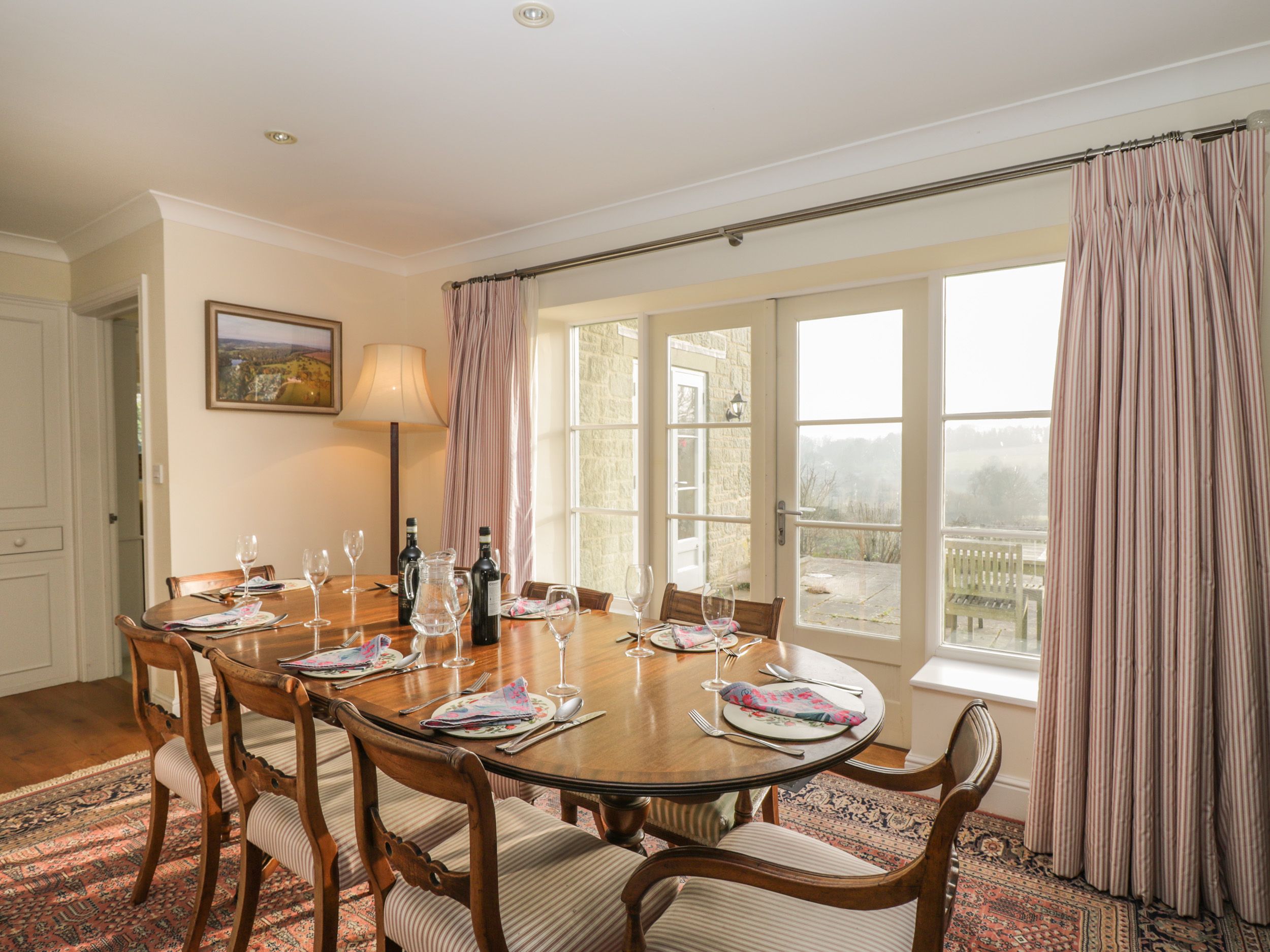 Amenities Oil central heating, underfloor heating and open fire. One double and one single electric oven and electric hob, microwave, washing machine, dishwasher. TV and DVD player, WiFi. Fuel and power inc. in rent. Bed linen and towels inc. in rent. Highchair available on request. Off-road parking for two cars. Garden with lawned area, patio, dining seating and a pond. Two well-behaved dogs welcome, please be advised the garden is not fully enclosed. Sorry, no smoking. Shop 1.4 miles, pub 1.3 miles. Note: Dogs are not allowed upstairs or on furniture. Note: There is pond at this property but this is always covered.