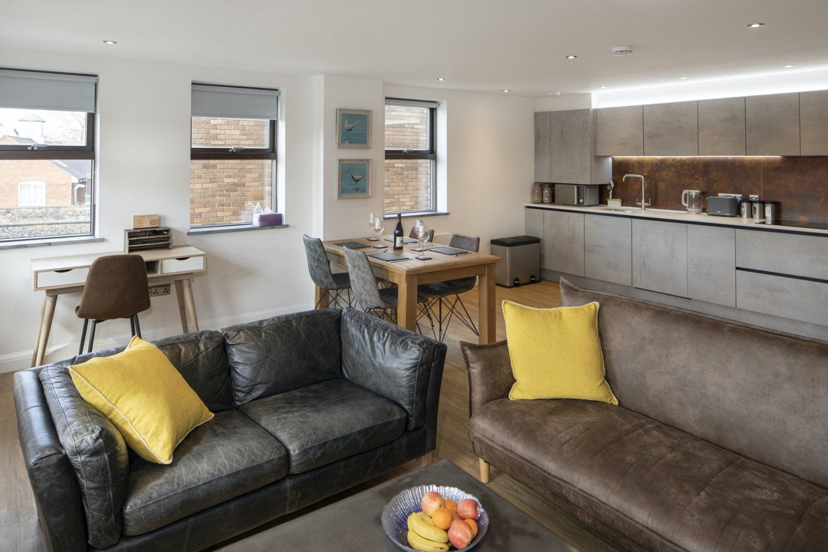 The apartment is in the heart of Swindon’s Old Town, which is fitting given the nod to retro styling in this home. You’ll still have all the modern amenities you’ll need though, whether it’s wi-fi or a desk to work at.
