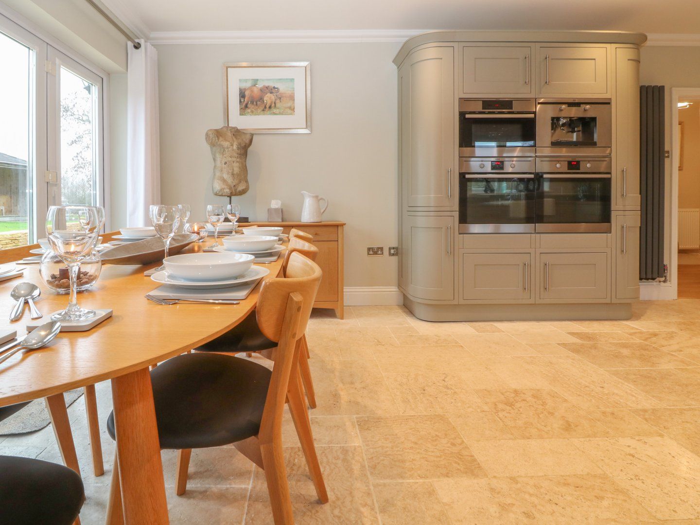 Holiday home Oil central heating. 3 x electric ovens, induction hob, microwave, coffee maker, fridge/freezer, washing machine, tumble dryer, dishwasher, 2 x Smart TVs and 1 x 'regular' TV, WiFi. Printer. Gym with cross trainer, rowing machine and exercise mats. Games room which is fully equipped with a snooker/pool table, dart board and arcade games machine and seating. .Fuel and power inc. in rent. Bed linen and towels inc. in rent. Highchair and cot available. Off-road parking for six cars. Enclosed garden with lawn, permanent gazebo with seating, boules playing area, and patio. Sorry, no smoking. Shop 1.2 miles, pub 2 miles. Note: Check-in from 4pm, check-out by 10am.