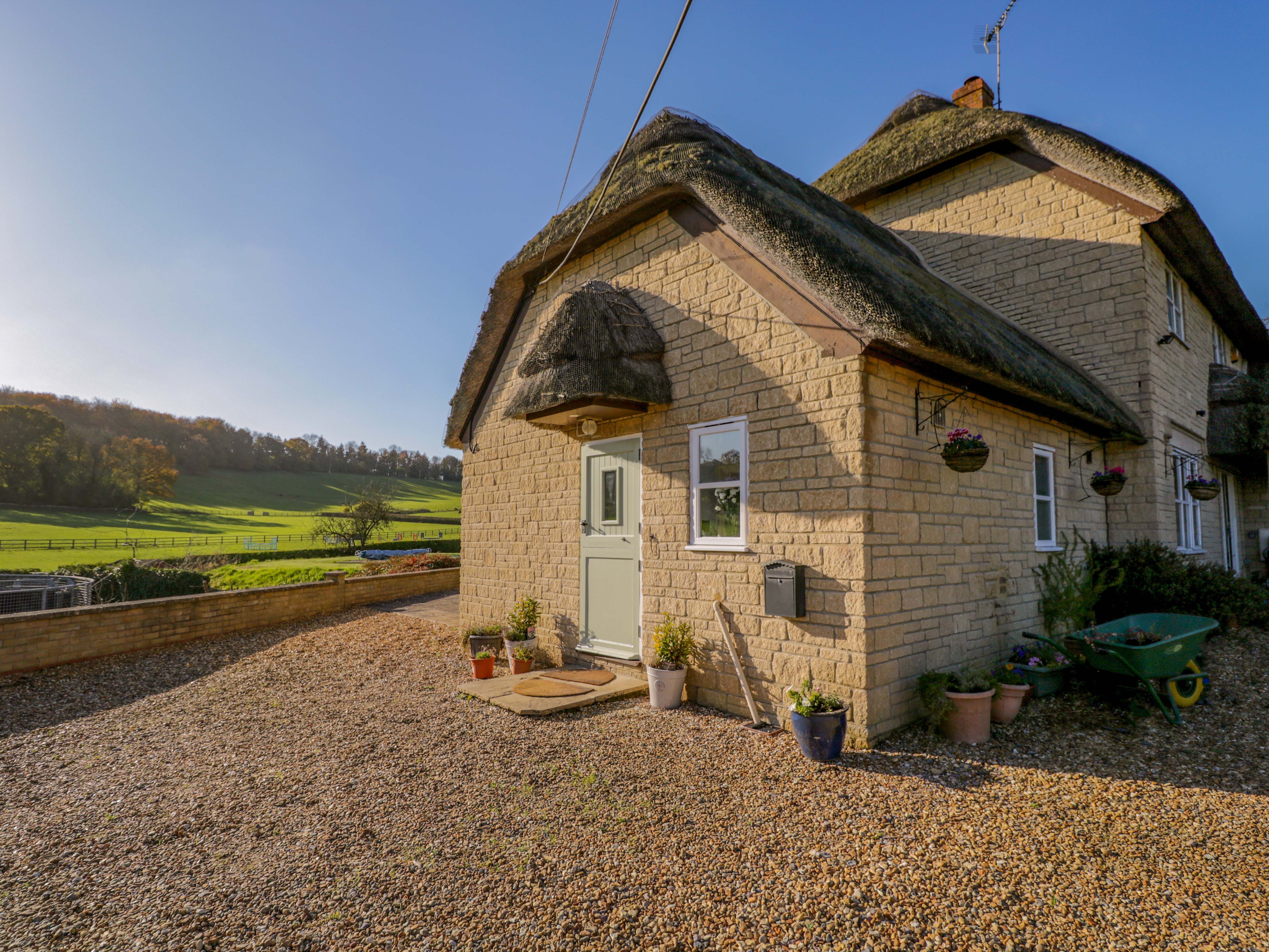 Clarendon Annex consists of a kitchen/diner with dining seating, fridge, toaster, electric oven and hob, microwave, washing machine and kettle, and a sitting room with TV. The bedroom is a double. There is a bathroom with bath, shower over, basin, and WC. WiFi, fuel, power, bed linen, and towels are included in the rent. Outside, there is a side patio with furniture and off-road parking for one car. Pet-friendly. Sorry, no smoking. Uncover the best of Wiltshire and its surrounding areas with a holiday at Clarendon Annex. Note: Guests can use the outdoor pool with prior arrangement. Note: Guests can bring their horses with prior arrangement. Note: This property has a Good Housekeeping Bond of £100.
