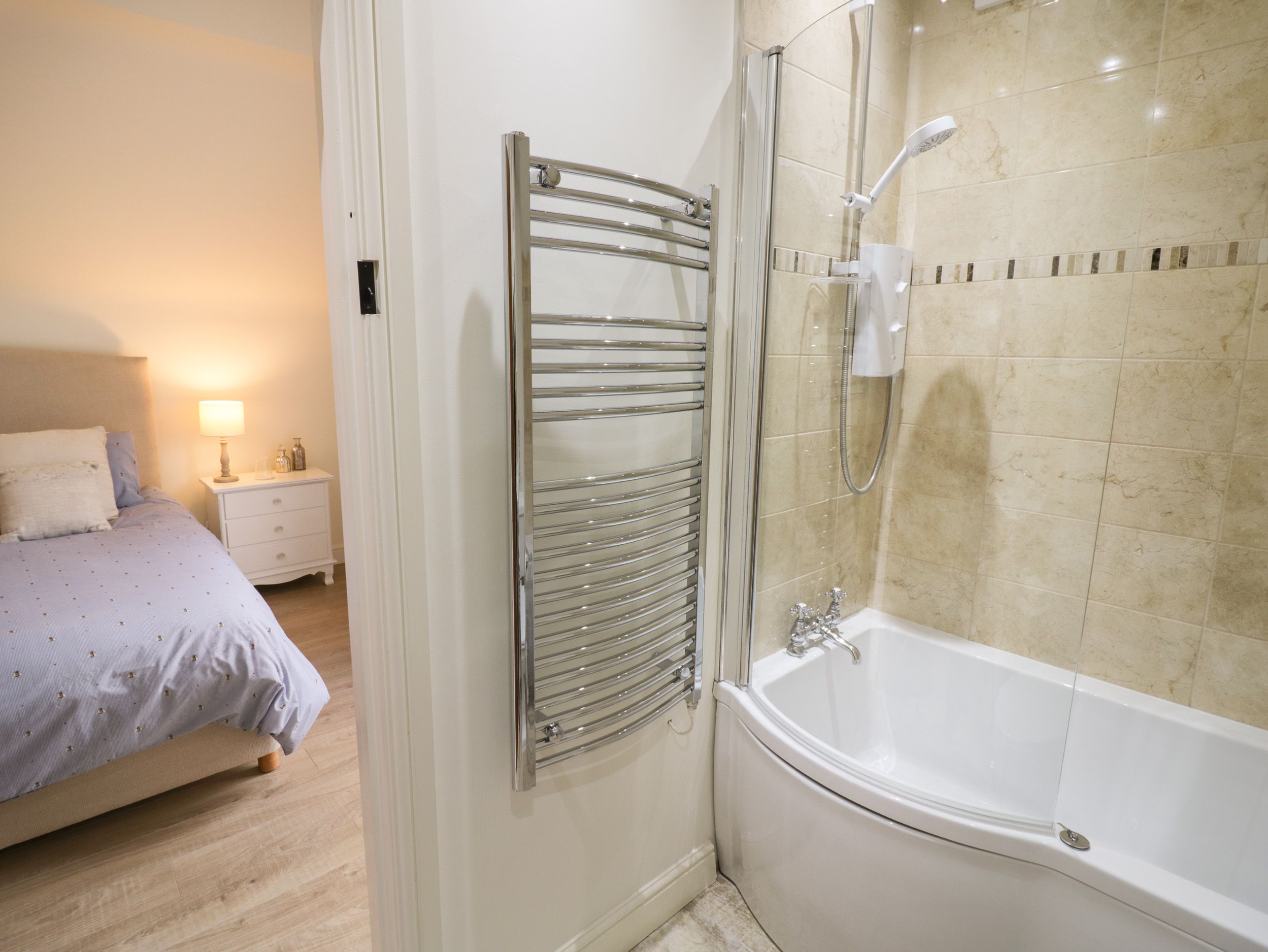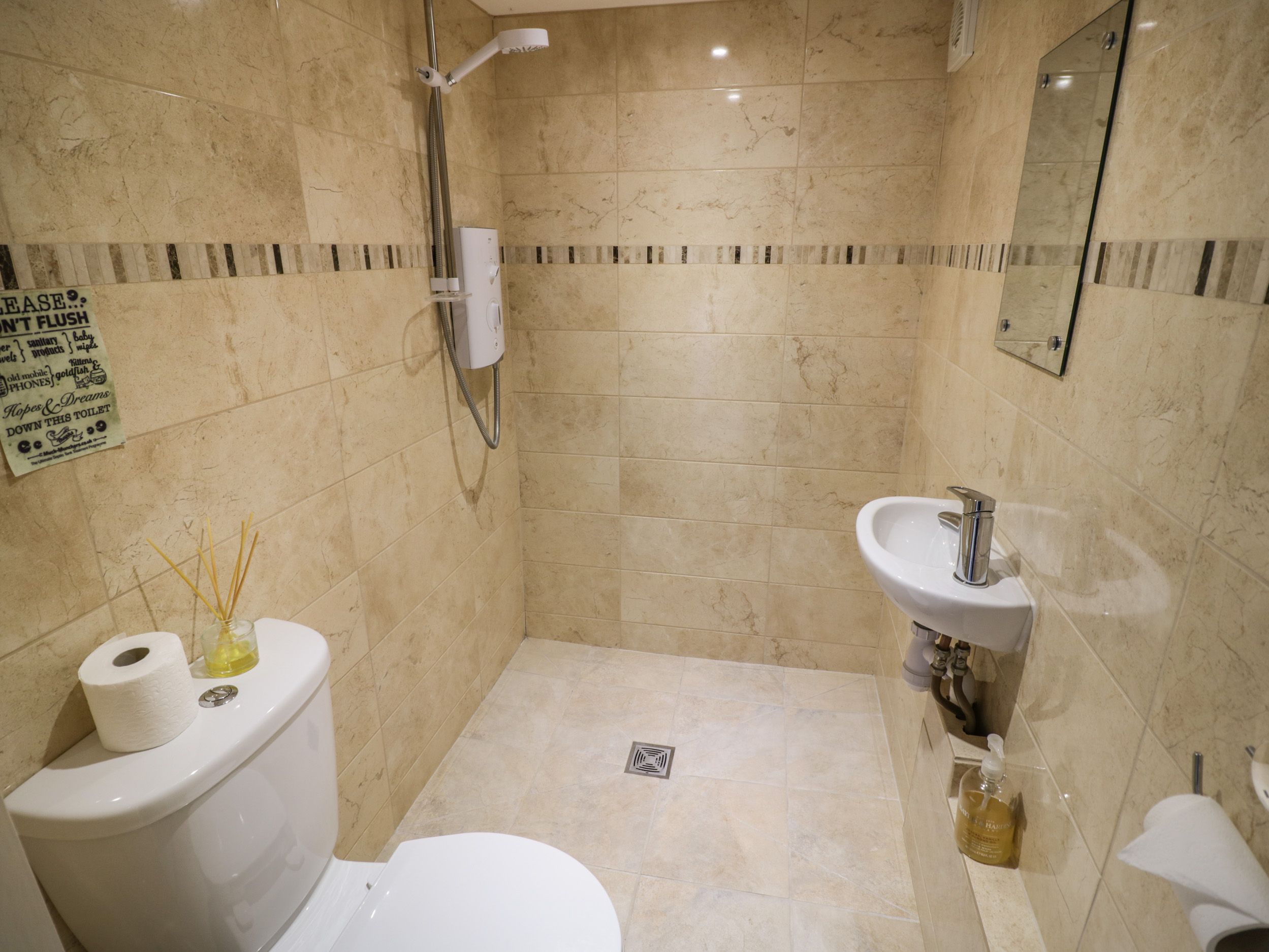 Accomodation Details One super-king-size bedroom with TV and en-suite bath, shower over, basin, heated towel rail and WC. Ground-floor wet room with shower, basin and WC. Kitchen/diner. Utility. Sitting room with electric fire