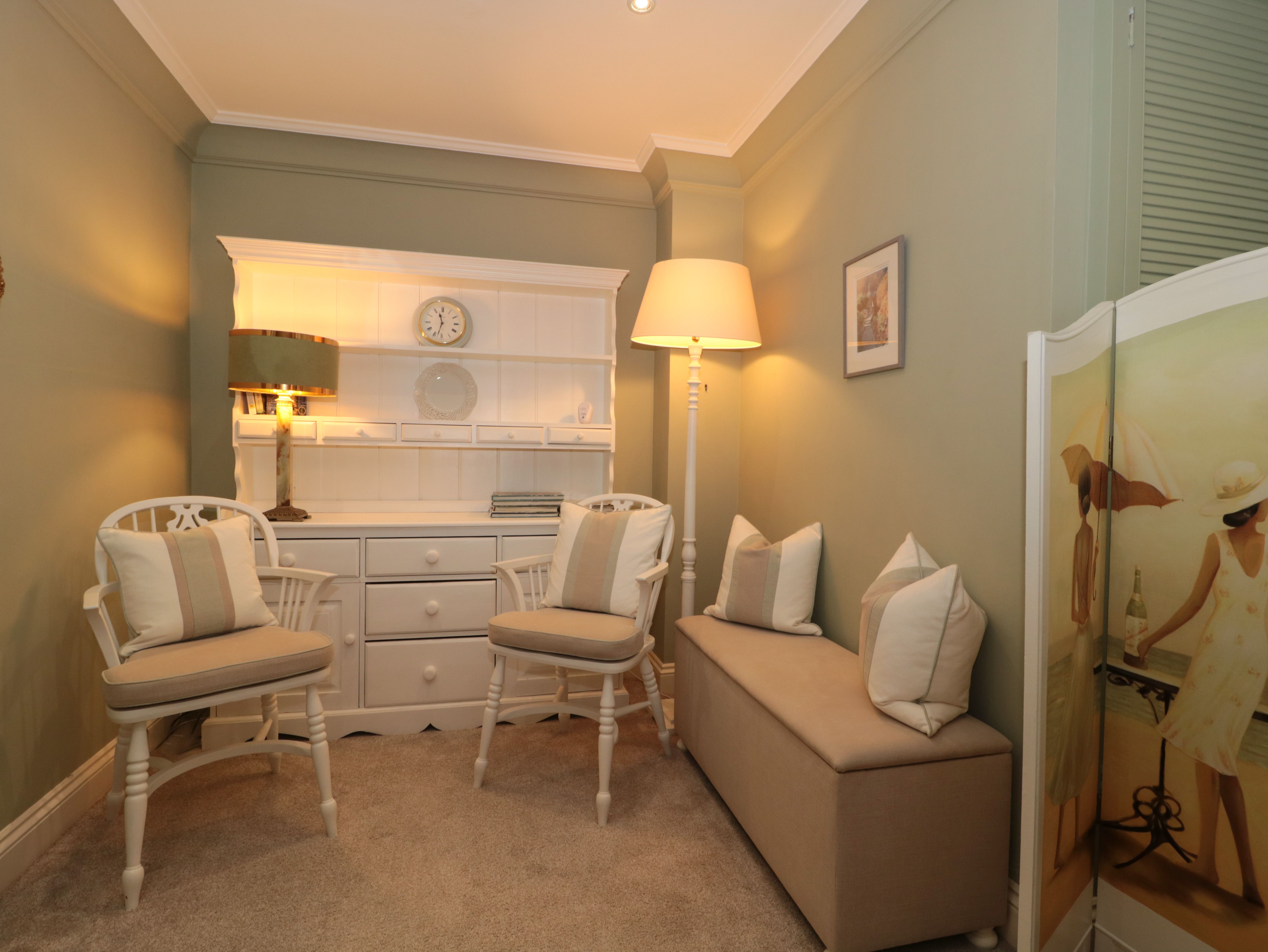 Accomodation Details First-floor apartment. Bedroom: 1 x king-size with en-suite with walk-in shower, basin, heated towel rail and WC. Cloakroom. Kitchen with electric fire. Sitting/dining room with electric fire