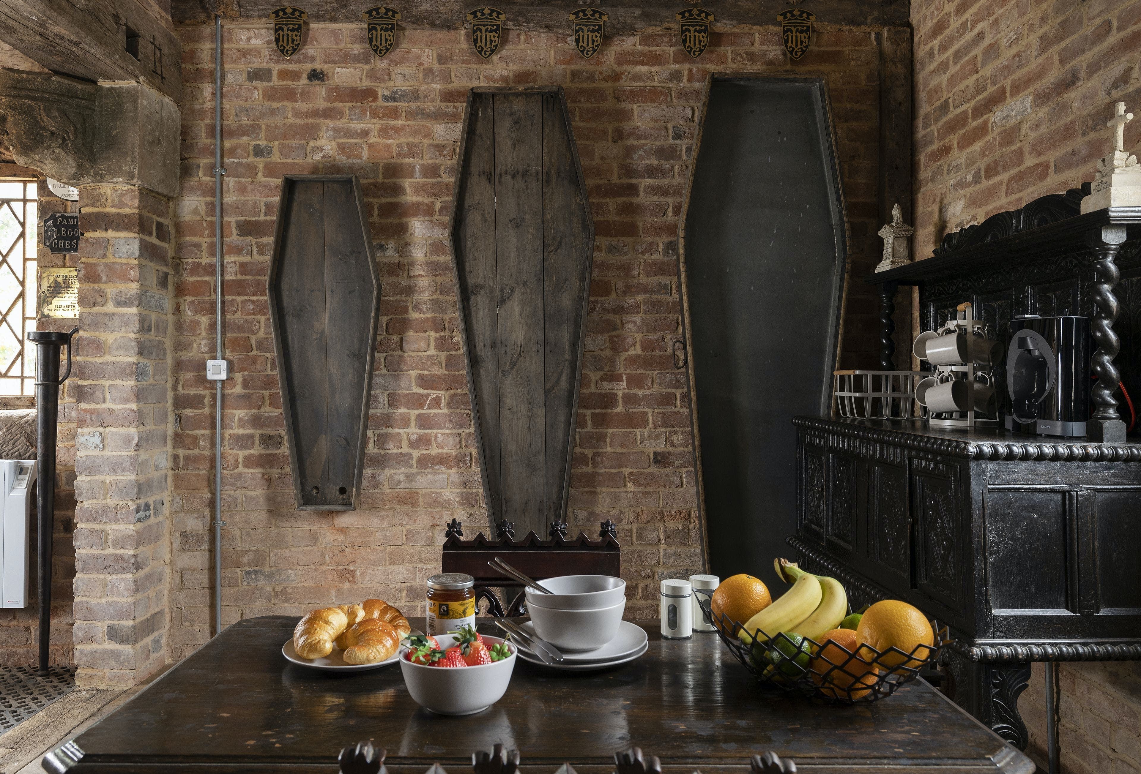 With a gothic spin, this stone-built cottage has become a Worcester favourite for a unique, romantic trip. Tiny but beautiful, it's bursting with period charm and features arched windows, exposed timbers, a statement fireplace and a luxurious clawfoot tub alongside quirky decorative touches. Outside, near a stream, seating allows for alfresco meals and sunset drinks in the hot tub, and the on-site orchard is ripe for fruit picking. Your host can also arrange for a private chef or measures to take the weekend to the next level.