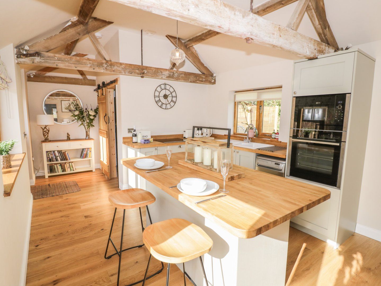 Holiday home This detached, single-storey barn conversion has one king-size bedroom with an en-suite shower room. The open-plan living area has a kitchen with electric oven and hob, microwave, and dishwasher, a breakfast bar for two, and a sitting area with a Smart TV, along with a utility with fridge/freezer and washing machine. To the front, there is a patio with furniture and fire pit, and off-road parking for two cars, as well as a garden with furniture to the rear. Within 1.1 miles, there is a shop, and within 1 mile, a pub. Sorry, no smoking. WiFi, fuel, power, bed linen and towels are all included in the price. Explore the heart of England with your partner at The Old Piggery. Note: As of July 2nd 2022, the rear and front gardens will be fully enclosed with one well-behaved dog welcome. Note: This property is located on the owner's grounds. Note: Property does not accept children.
