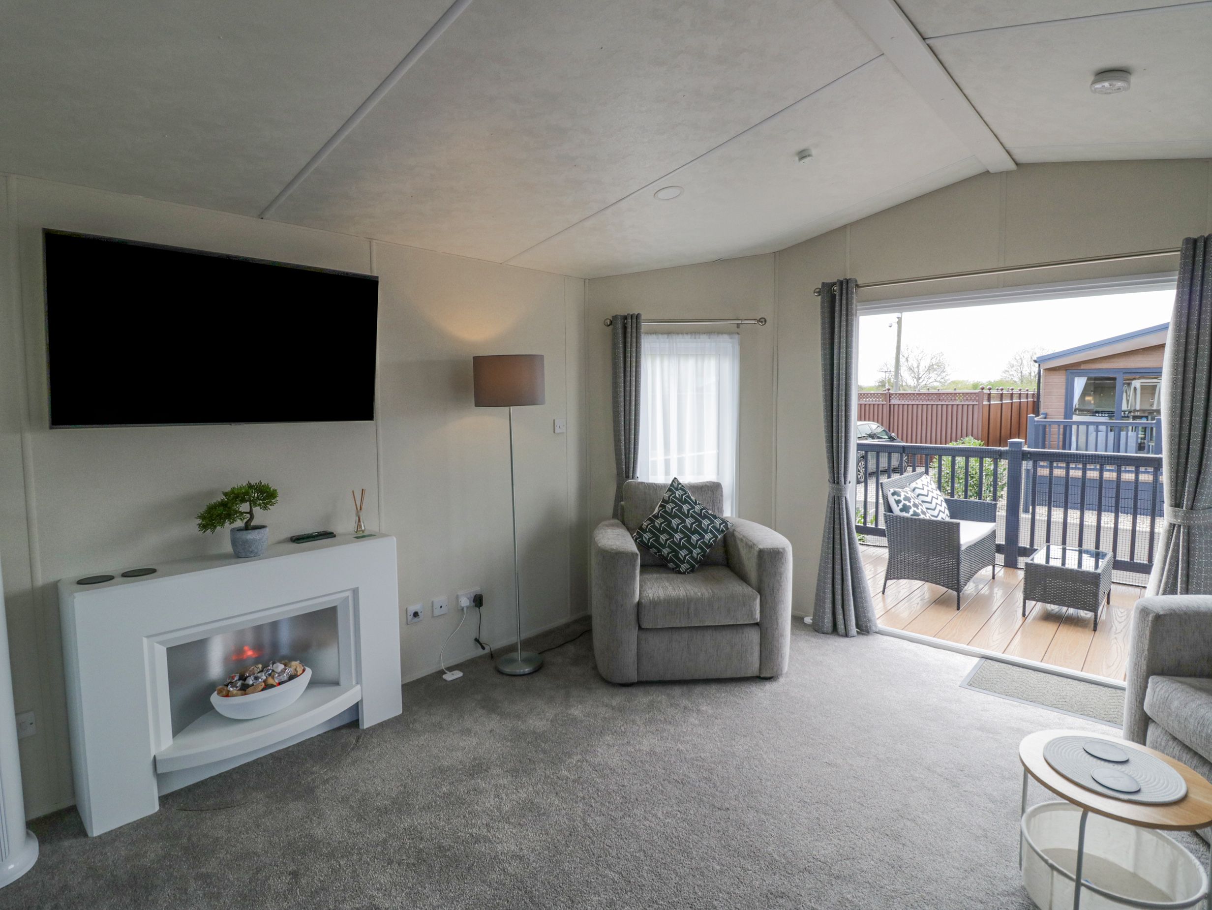 Holiday home Long Acres Lodge has one double with en-suite shower room and a twin service by a bathroom. There’s an open-plan living space with a kitchen equipped with an oven, hob, microwave, fridge/freezer, washing machine, dishwasher, coffee maker, a dining area and a sitting area with a Smart TV and a flame-effect electric fire. Gas central heating, WiFi, fuel and power, bed linen and towels are included in the rent. Outside there is designated parking for 2 cars and a non-enclosed wraparound garden with decking, lawn, gravel, and furniture. Sorry, no pets and no smoking. Shop 0.7 miles, pub 0.8 miles. Enjoy a lovely stay at Long Acres Lodge. Note: There are steps up to property, please take care. Note: Check-in from 4pm, check-out by 10am.