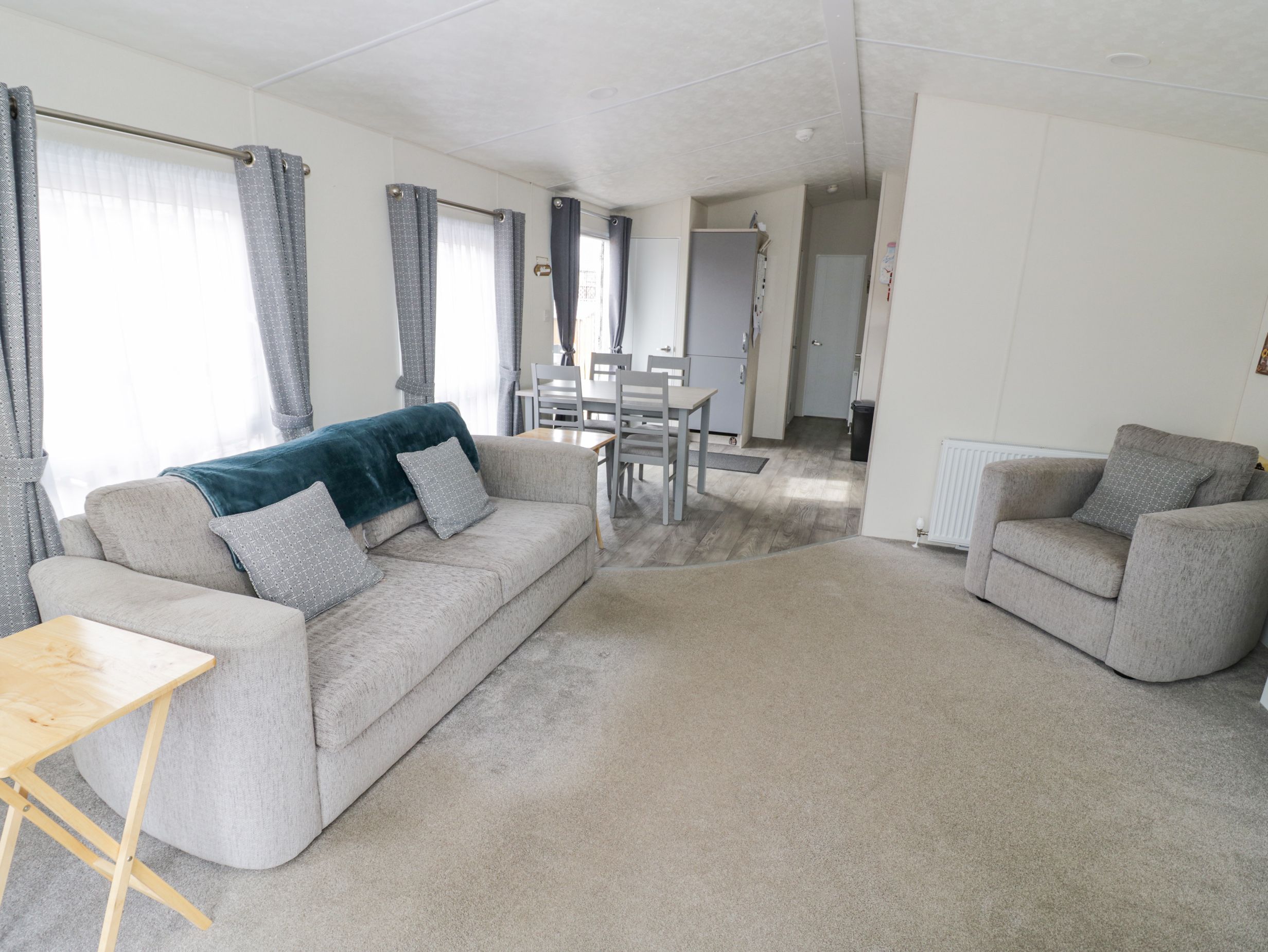 Accomodation Details Single-storey. Two bedrooms: 1 x double with en-suite walk-in shower, basin, and WC, 1 x twin. Bathroom with bath, shower over, basin, and WC. Open-plan living space with kitchen, dining area, and sitting area