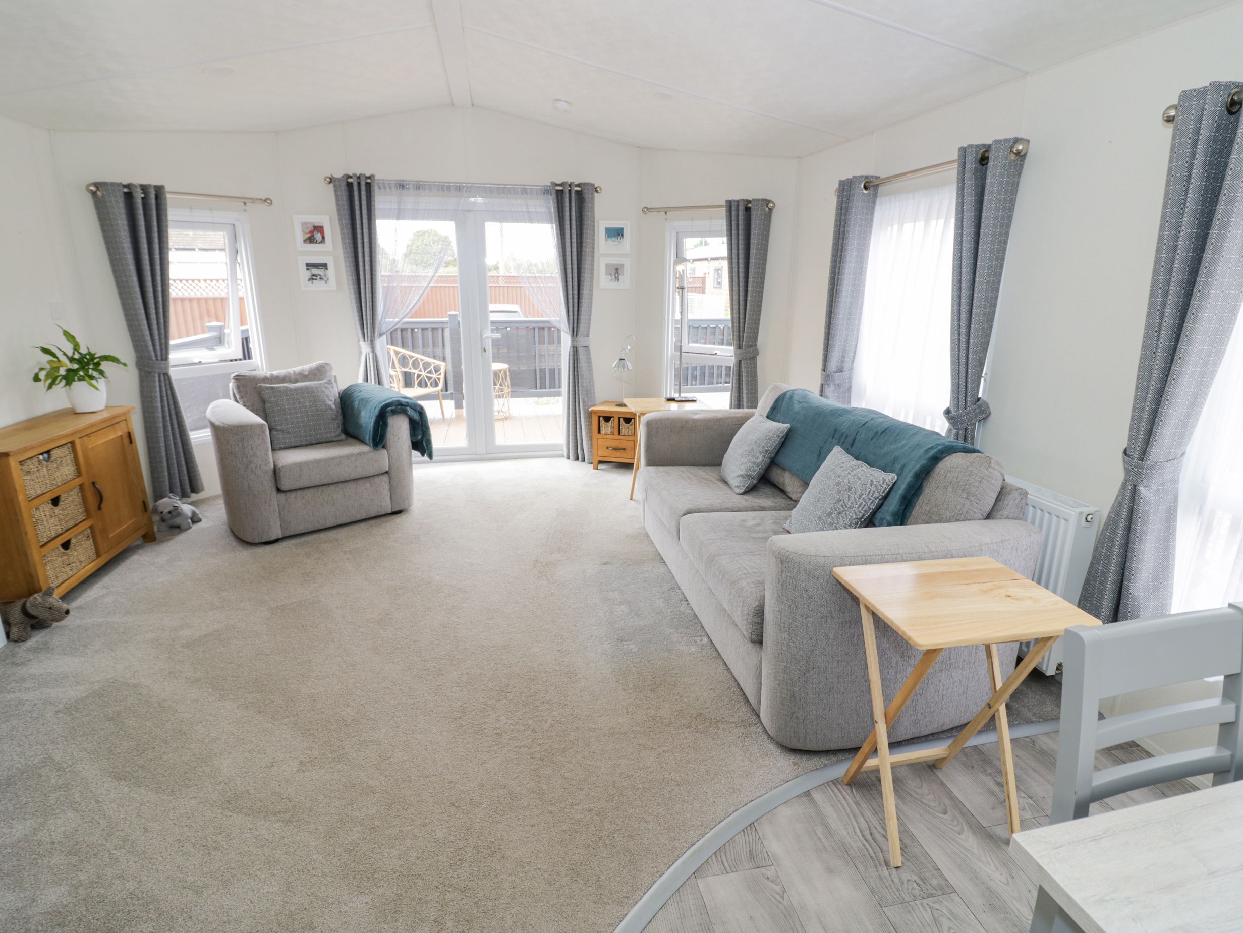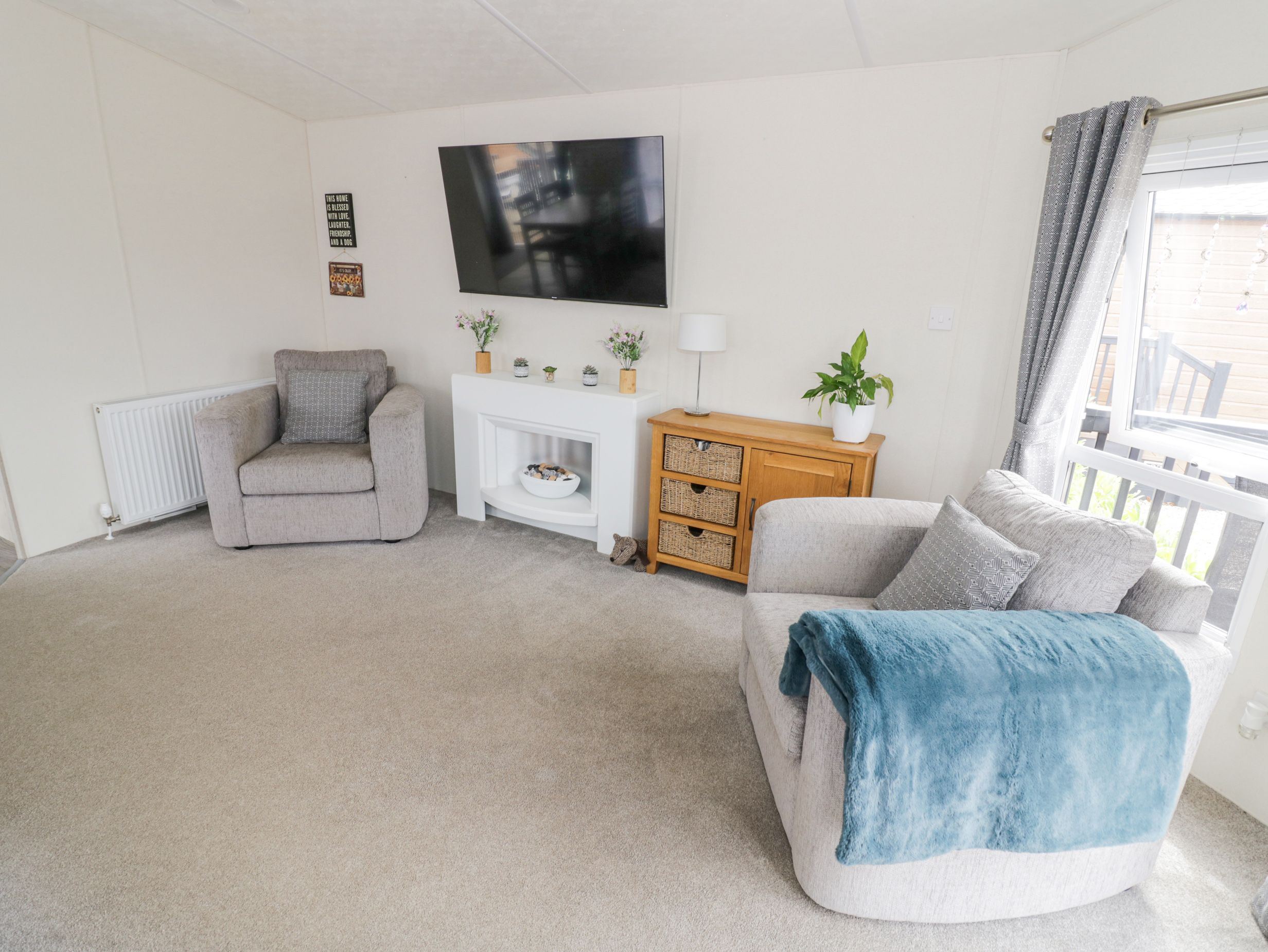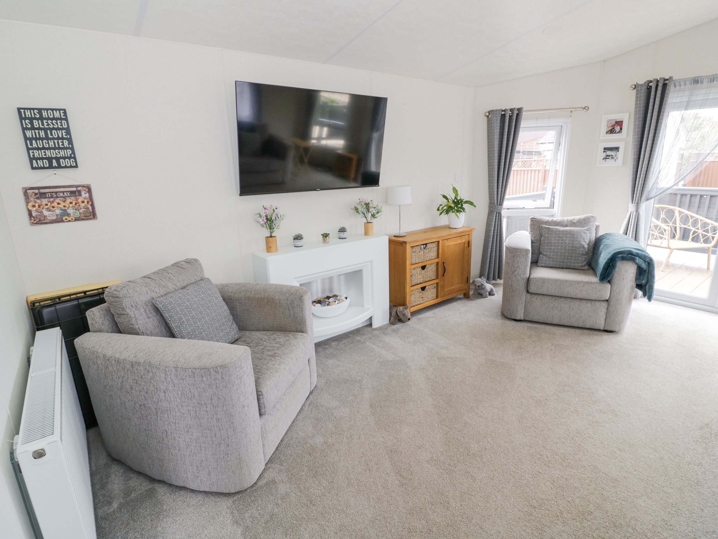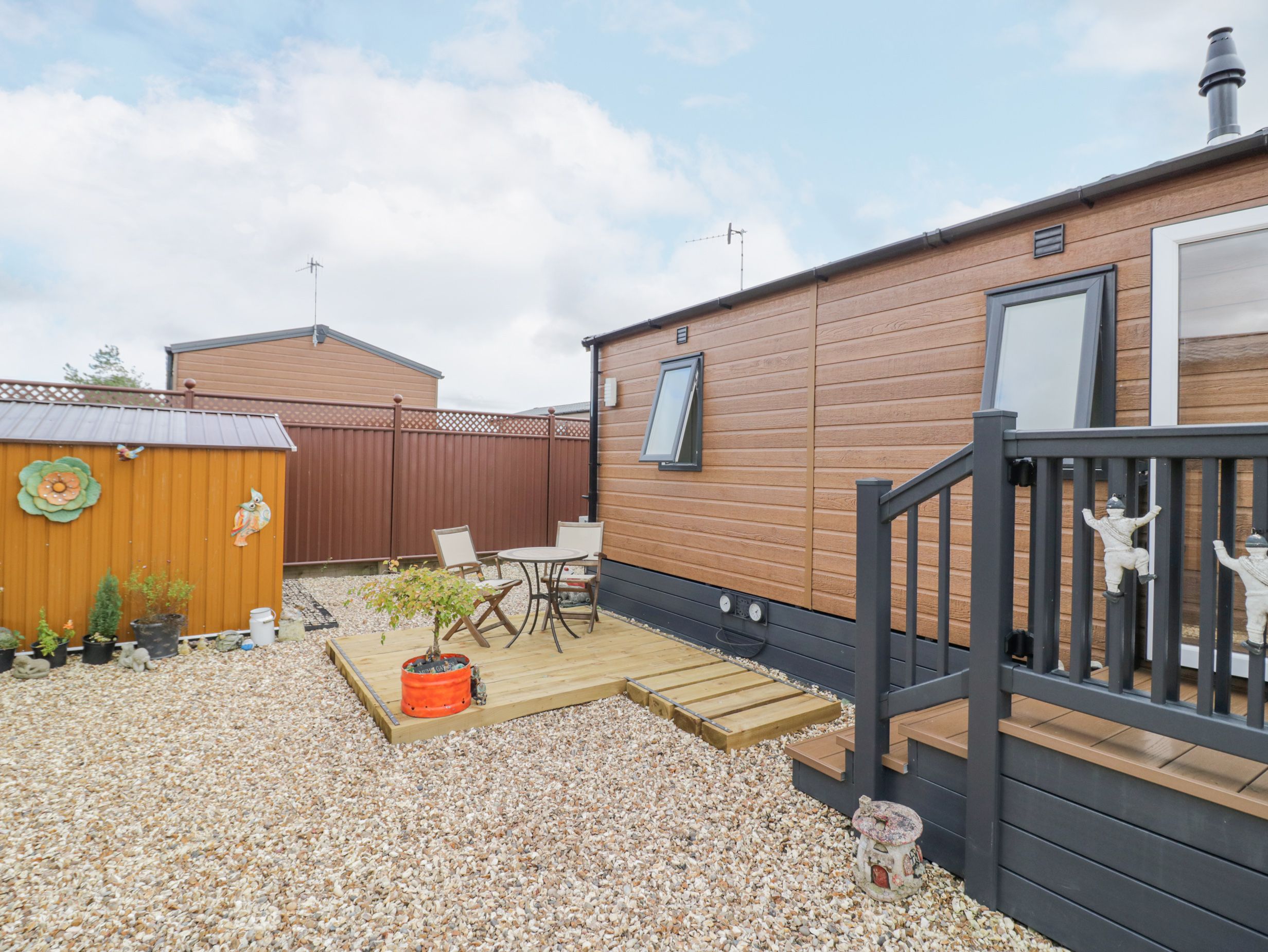 Amenities Gas central heating. Electric oven and gas hob, fridge/freezer, air fryer, dishwasher, microwave, washing machine. Smart TV and WiFi. Fuel and power inc. in rent. Bed linen and towels inc. in rent. Off-road parking for 2 cars. Wraparound decking with furniture. Enclosed, front garden with gravel, decking, and furniture. Two well-behaved dogs welcome. Sorry, no smoking. Shop 0.9 miles, pub 1.9 miles. Note: Check-in from 4pm, check-out by 10am. Note: Although the property is single-storey, there are steps up to entrance