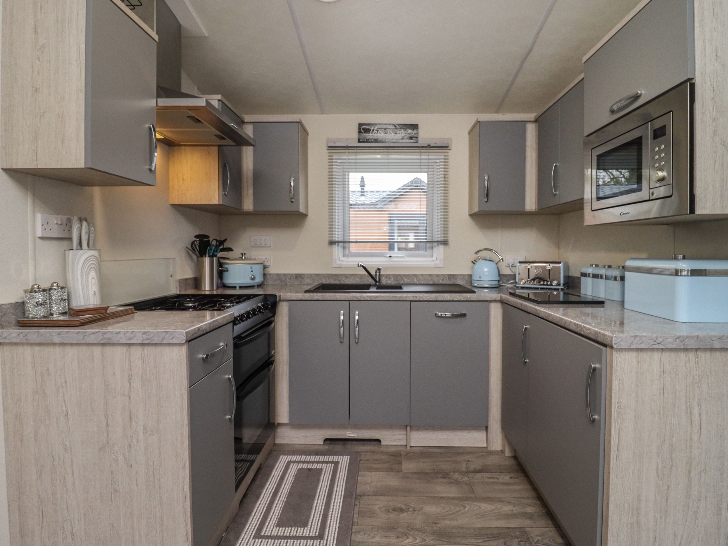 Amenities Gas central heating with electric fire. Electric oven, gas hob, microwave, fridge/freezer, washer/dryer, dishwasher. Smart TV, WiFi. Fuel and power inc. in rent. Bed linen and towels inc. in rent. Travel cot and highchair available on request. Off-road parking for 2 cars. Enclosed wrap-around decking with furniture, side lawn with furniture. Sorry, no pets and no smoking. Shop 0.9 miles, pub 1.7 miles. Note: There are steps up to the lodge. Note : Washing machine currently out of use. Note: The lawn is not enclosed. Note: The property is loctaed on Longacres Park.