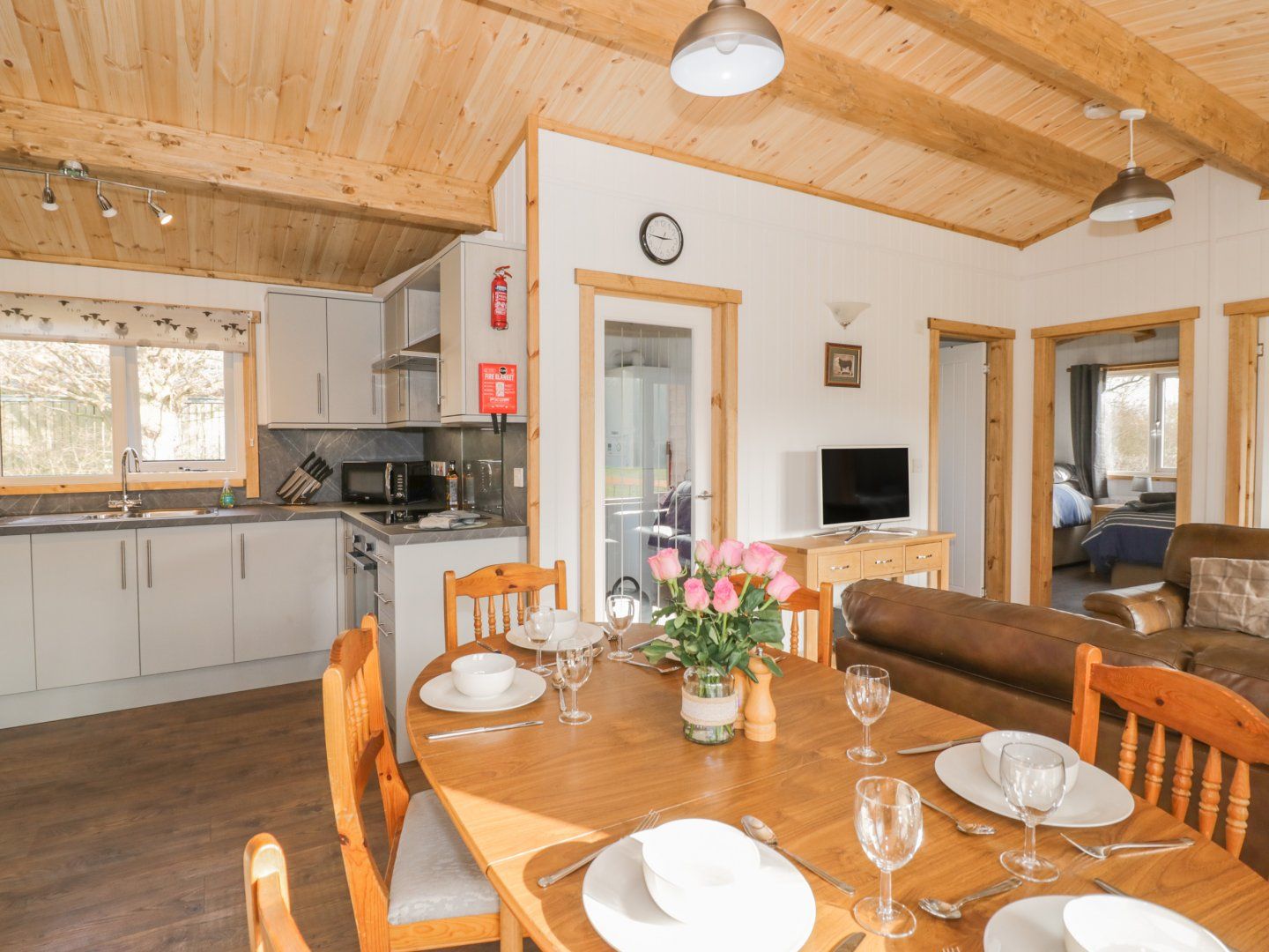 Amenities LPG heating with electric stove-effect fire. Electric oven and hob, microwave, fridge, dishwasher. TV with FreeSat, DVD player, WiFi. Fuel and power inc. in rent. Bed linen and towels inc. in rent. Highchair available. Off-road parking for three cars. Decked area with furniture and bench. Sorry, no pets and no smoking. Shop 2.3 miles, pub 3.6 miles