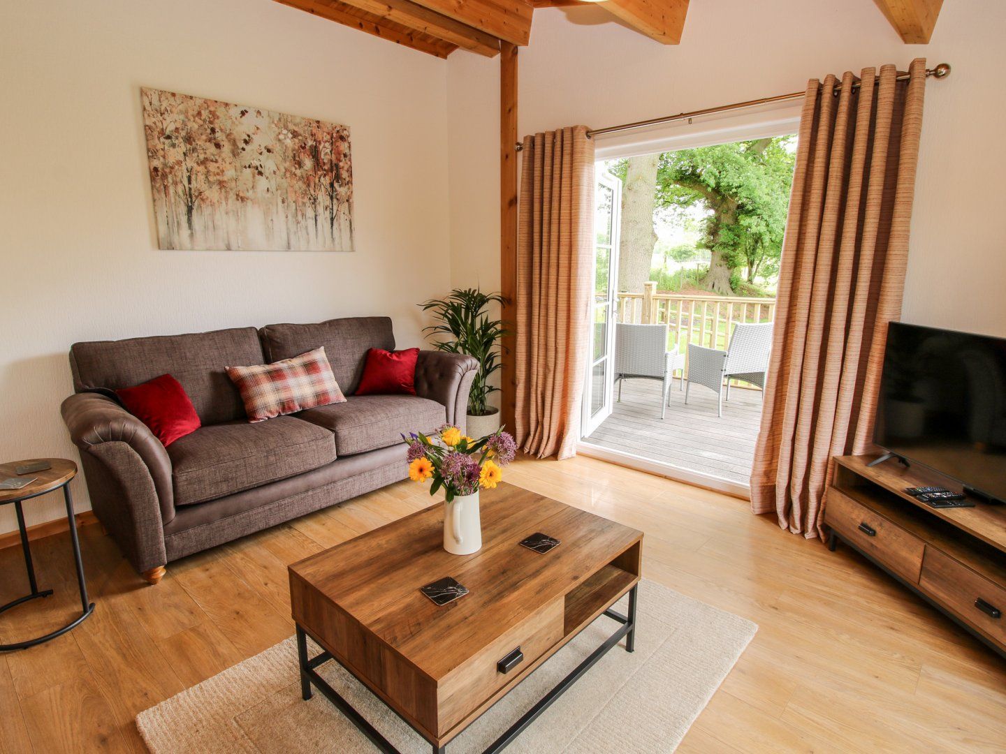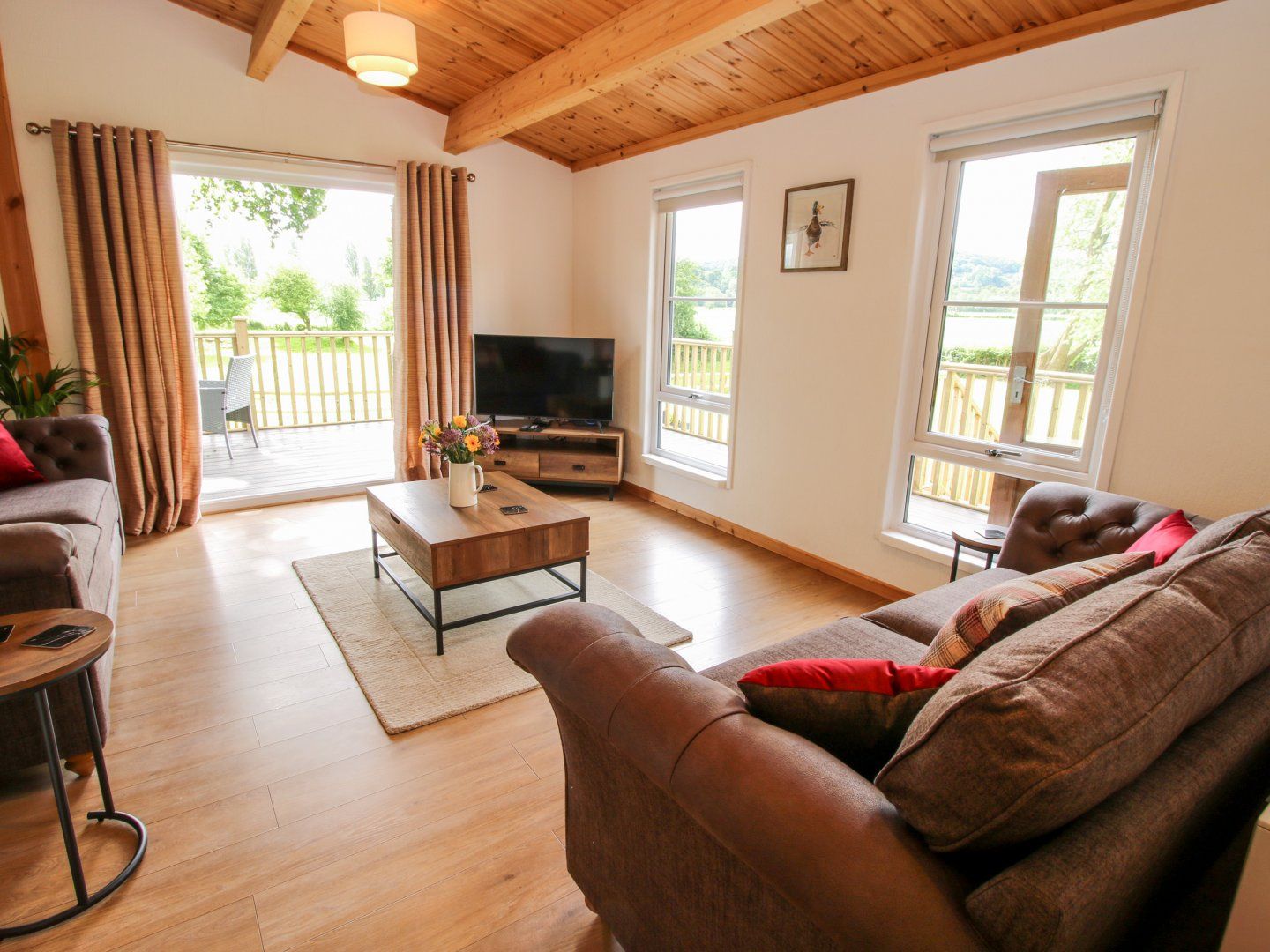 Amenities Gas central heating. Electric oven and hob, microwave, fridge with ice box, dishwasher, coffee machine. Smart TV, WiFi. Fuel and power inc. in rent. Bed linen and towels inc. in rent. Highchair and travel cot available. Ample off-road parking. Access to grounds with seating, pond, putting course, private decking with furniture. Secure bike storage. Sorry, no pets and no smoking. Shop 3.8 miles, pub 2.5 miles. Note: The single bedroom is accessed through the double bedroom. Note: The grounds have a pond, please ensure children are supervised at all times