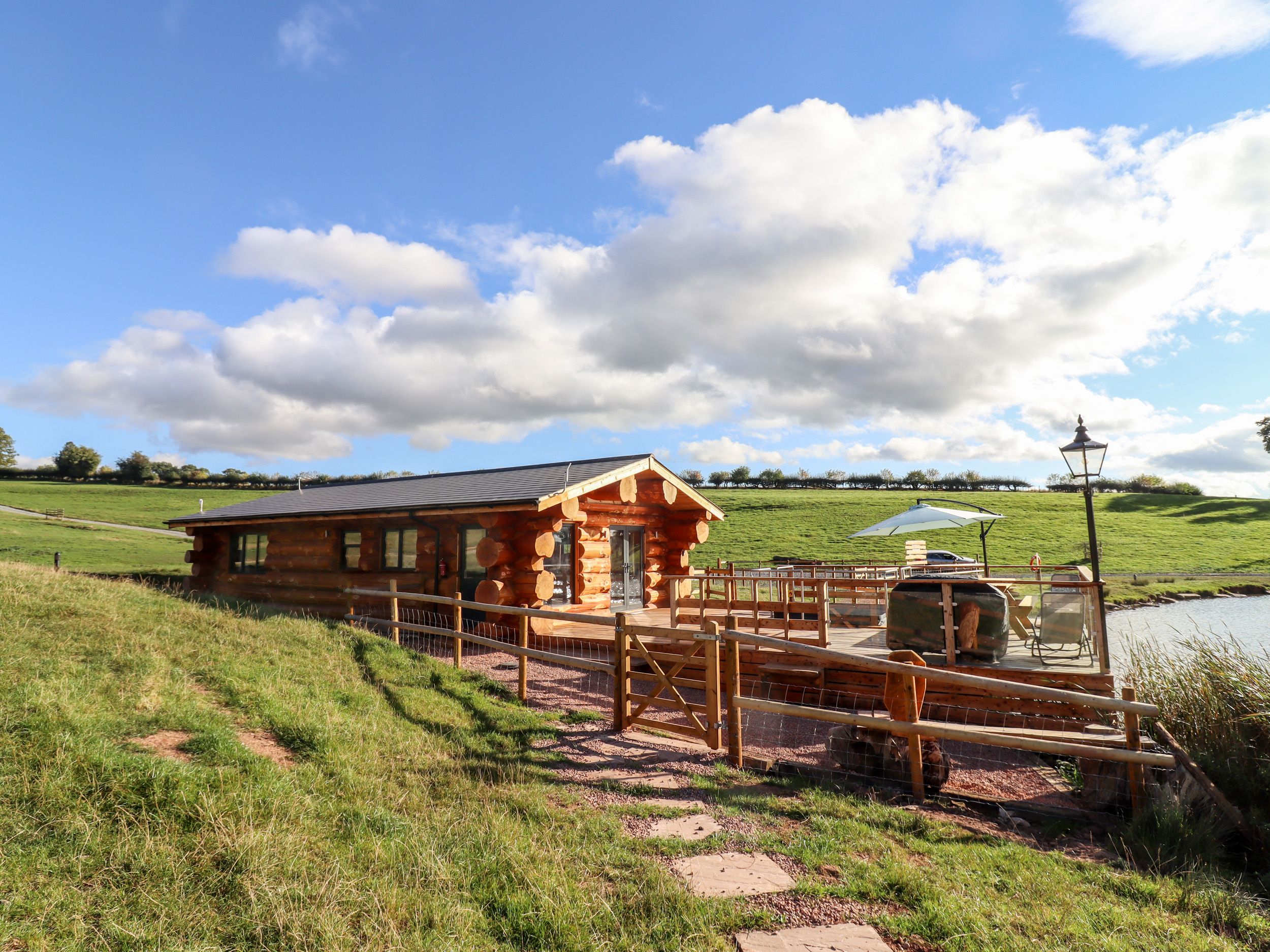 Amenities Central heating with woodburning stove. Gas oven and hob, microwave, fridge. TV and WiFi. Fuel, power and starter pack for woodburning stove inc. in rent. Bed linen and towels inc. in rent. Ample off-road parking. Decking with gas barbecue, furniture and hot tub. Sorry no smoking. Shop 0.9 miles, pub 1 mile. The decking is not enclosed. The owner will supply landing nets and carp cradles for fisherman to use to limit cross-contamination, these will be available for you in the property, please do not bring your own. Anglers will need to bring their own rod and bait. Check-in from 4pm, check-out by 10am. The sofas in the sitting area pull-out to provide additional sleeping arrangements. This property is located on a working farm. Two well-behaved pets welcome. No stag/hen or similar parties permitted. Please note you can book this property with: Ref: 1080939 (Goose Pod), Ref: 1080941 (Cedar Cabin), Ref: 1080942 (Douglas Cabin). Please Note - You must be over 25 to book this property.