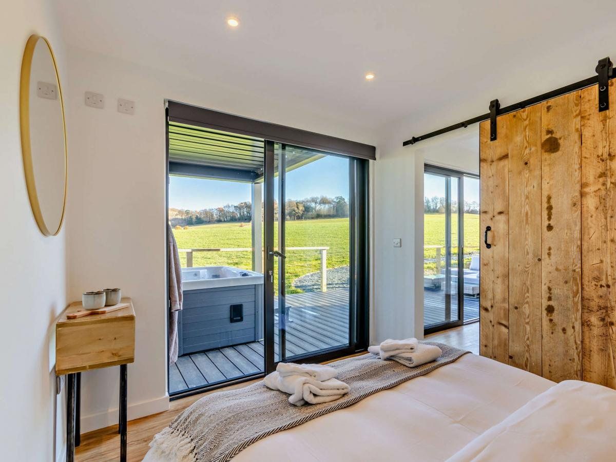 A delightful single-storey lodge nestled amidst a working farm in the serene landscapes of the Teme Valley, offering couples a peaceful and stylish retreat.