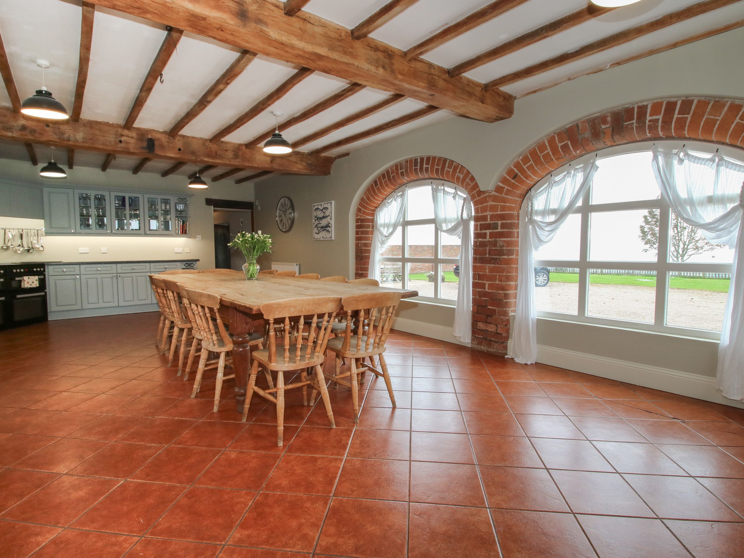 Accomodation Details Overlooking panaramic views near picturesque Tenbury Wells, Worcestershire, lies a charming rural home featuring six bedrooms, each designed to provide comfort and convenience for guests. Bedroom 1: Offers a cosy Double bed with an en suite shower, providing a private sanctuary for relaxation. Bedroom 2: Features Twin beds, sharing a family bathroom with Bed 3 and Bed 4, complete with a bath, shower, basin, and WC, ensuring comfort for all occupants. Bedroom 3: Furnished with Twin beds, this room also shares the family bathroom with Bed 2 and Bed 4, providing ample space for guests to refresh and rejuvenate. Bedroom 4: Offers Twin beds and shares the family bathroom with Bed 2 and Bed 3, ensuring convenience for all guests. Bedroom 5: Presents a comfortable Double bed with an en suite shower with heated towel rail, offering privacy and tranquillity for a restful night's sleep. Bedroom 6: Accommodates Twin beds, with two additional single trundles available, accompanied by an en suite shower for added comfort. A ground floor basin and WC provides convenience and accessibility for guests. The property boasts a very large well-equipped kitchen with a dining area with an enormous dining table, perfect for communal meals and gatherings. Essential appliances include four electric ovens, electric hobs, microwave, American style fridge/freezer, washing machine, and dishwasher, catering to the needs of guests. A cosy sitting room featuring a woodburning stove offers a warm and inviting atmosphere, while a snug provides additional space for relaxation. Entertainment options abound with two TVs equipped with Freeview, DVD players, and WiFi access. A selection of books, games, and DVDs are provided for added enjoyment.
