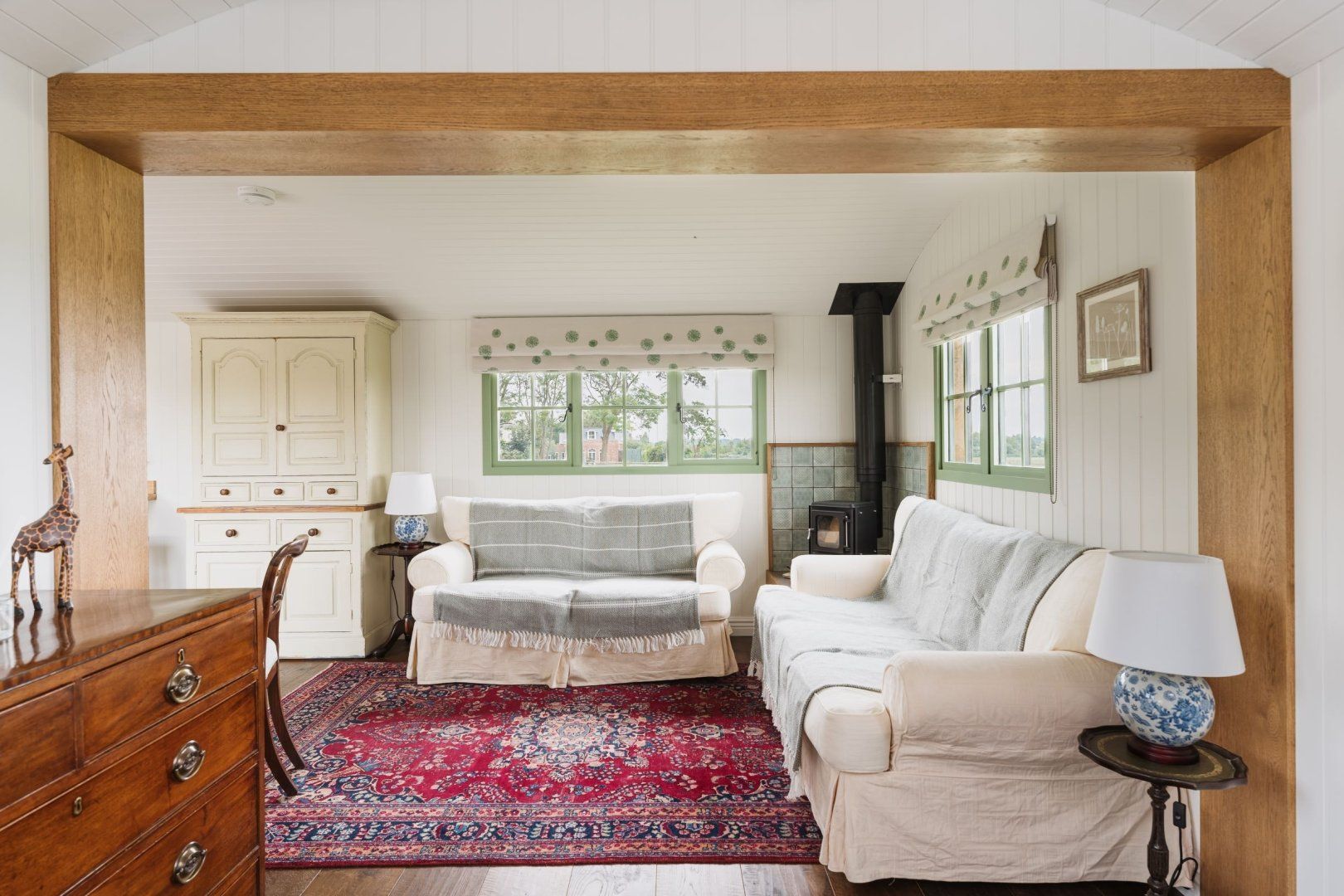 Nestled within eighty acres of organic arable farmland, this beautiful rural home is actually made up of two shepherd's huts built together. The L-shaped space is super cosy, with an open-plan kitchen where you can rustle up some tasty meals and a breakfast bar where you can sip your morning espresso. The living room is full of rustic charm, with a wood-burning stove that's ideal for warming you up on chiller evenings. However, it's the outside space that will really wow you. On the terrace, you'll find a fabulous sunken hot tub where you can soak under the stars, glass of wine in hand. There's also an outdoor dining area, a formal garden, and even a fire pit where you can huddle round and tell ghost stories after dark. The local footpaths will lead you through the beautiful rolling countryside up to Bredon Hill, and you'll find the local pub is just two miles away. Plus, with countless picturesque Cotswold villages to explore, you're not likely to run out of things to do in this heavenly corner of England.