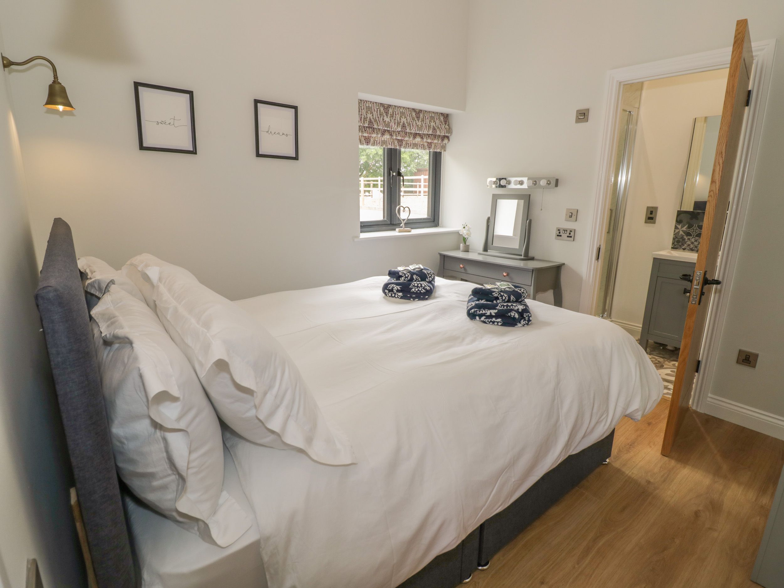 The Barn is one of two luxury barn conversions within the grounds of the owner's home, on the outskirts of the village of Hanbury in Worcestershire. This all-ground-floor property has two bedrooms, comprising a king-size double and a twin, each with an en-suite shower room, sleeping four guests. There is an open-plan living room with kitchen, dining and seating area and outside you will find off-road parking for two cars, a well as a front patio with furniture and a rear decked garden with furniture and a barbecue. The Barn is a tranquil getaway in a lovely, rural location.