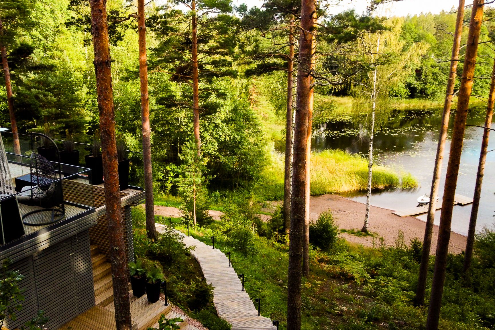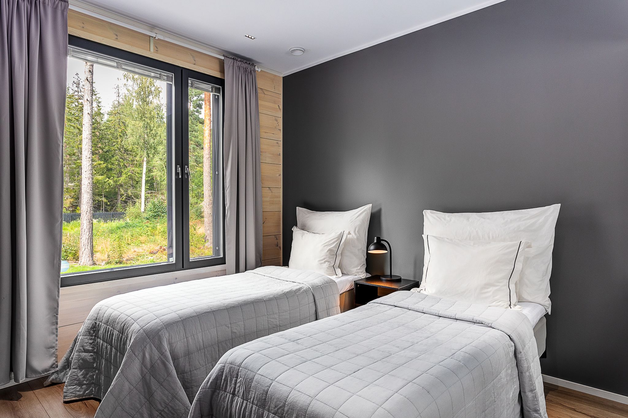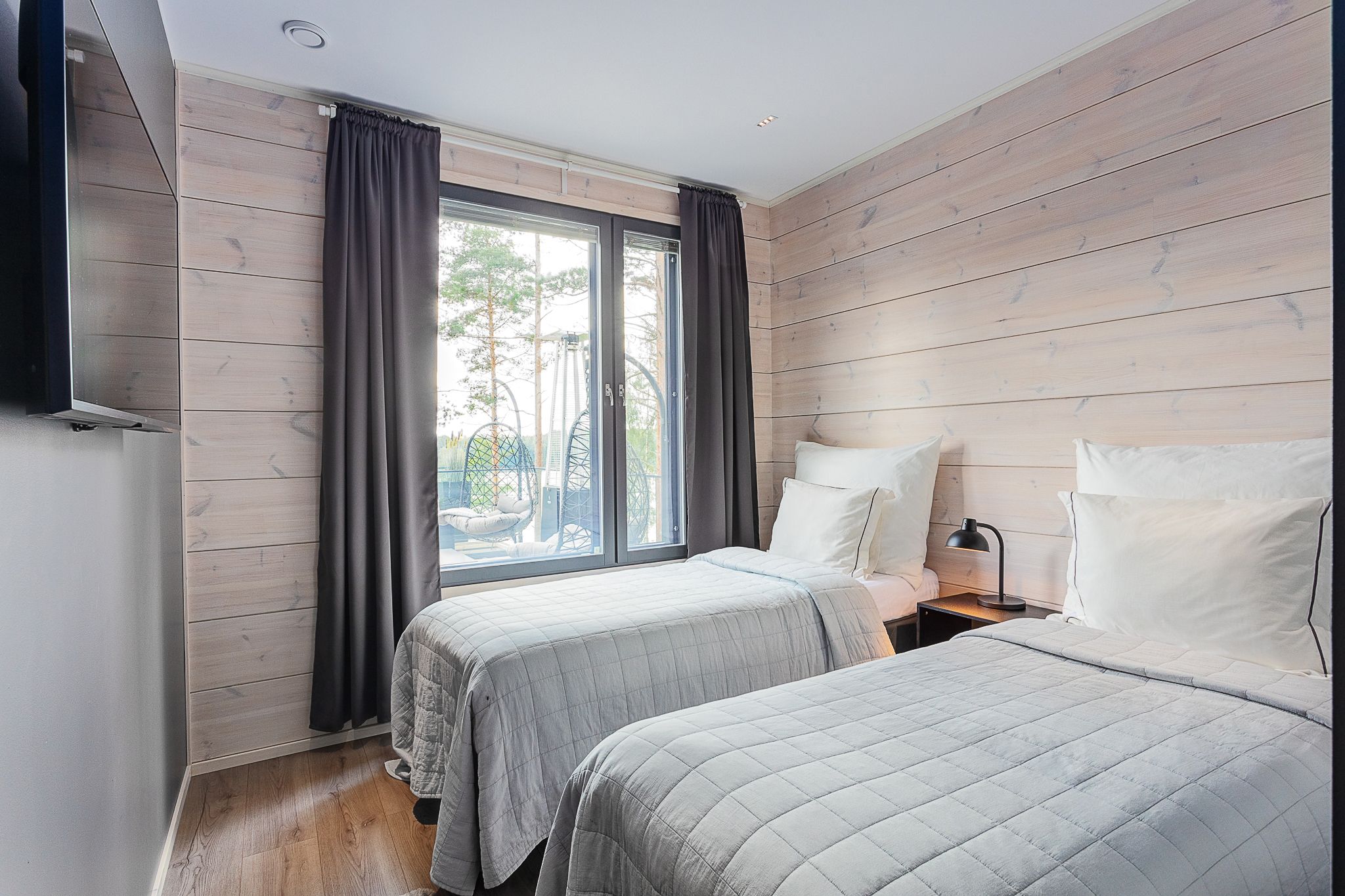 With idyllic lake views, a private sandy beach and a Jacuzzi, this home has everything you could need for a refreshing retreat on the edge of Lake Enäjärvi. Soak in the natural elements while relaxing on the terrace. There is also a wood-fired sauna in the external cottage and the rooms have everything you could need to switch off, socialise and spend quality time together. Days here can be spent fishing, cycling, hiking or exploring the region. It’s just also just a short drive or leisurely walk into the heart of Sammatti where you’ll find a grocery store and restaurant.
