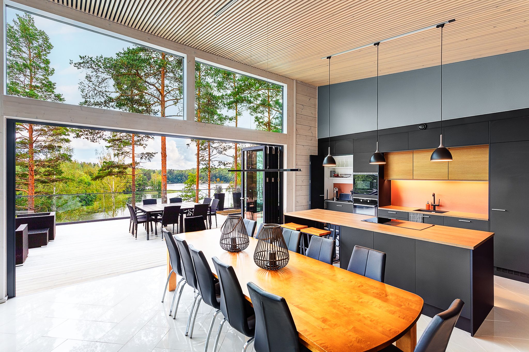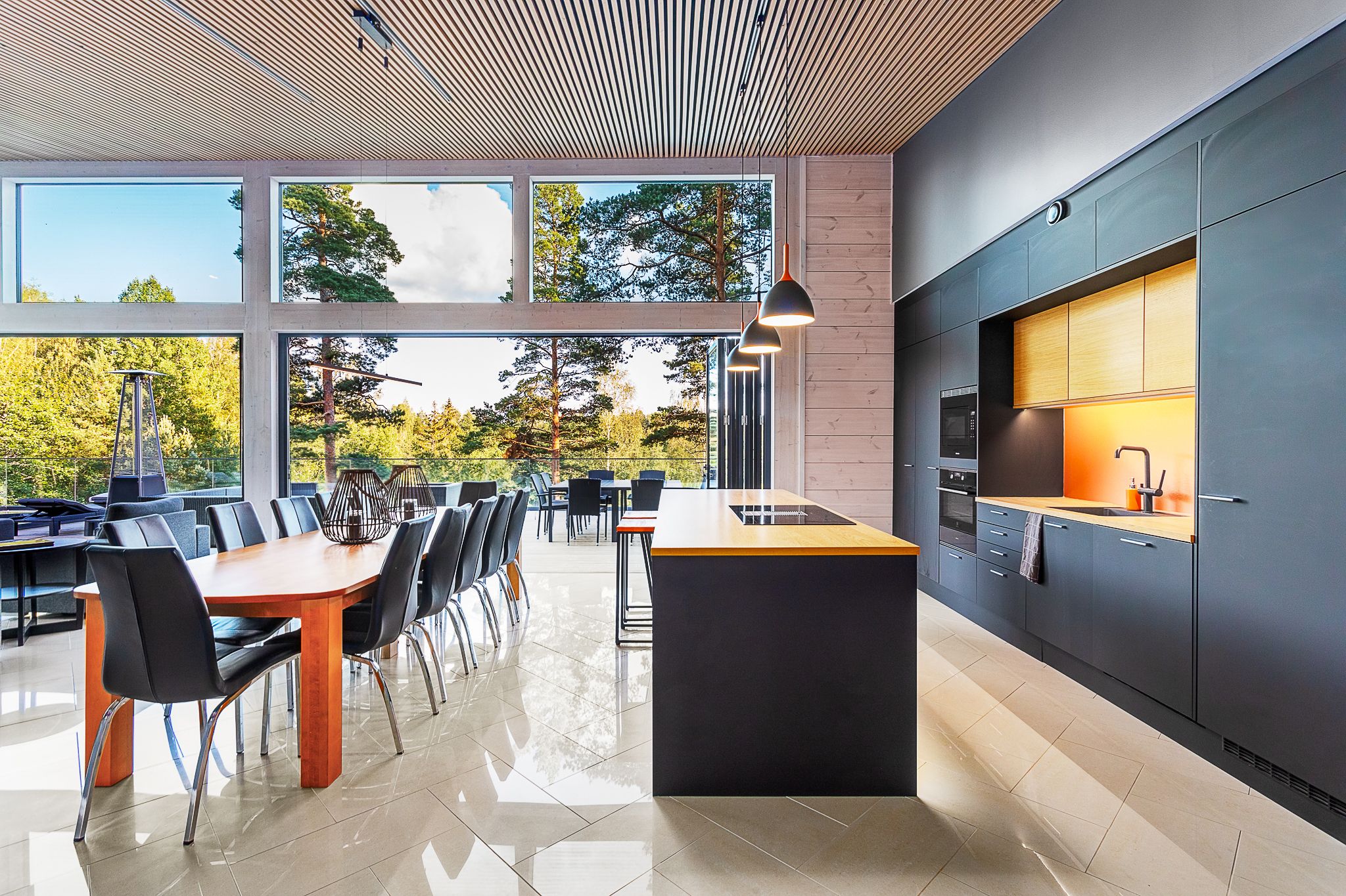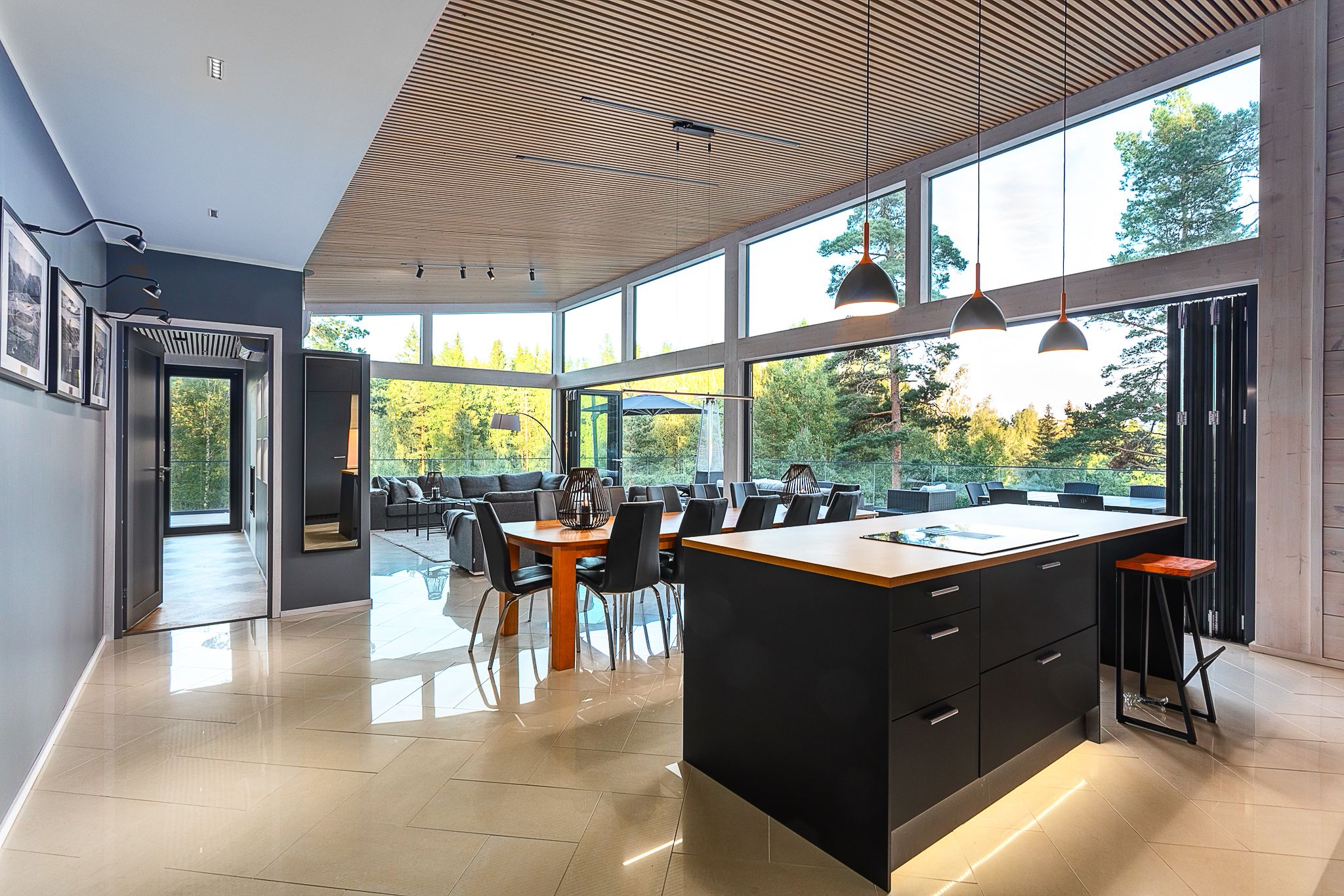 With idyllic lake views, a private sandy beach and a Jacuzzi, this home has everything you could need for a refreshing retreat on the edge of Lake Enäjärvi. Soak in the natural elements while relaxing on the terrace. There is also a wood-fired sauna in the external cottage and the rooms have everything you could need to switch off, socialise and spend quality time together. Days here can be spent fishing, cycling, hiking or exploring the region. It’s just also just a short drive or leisurely walk into the heart of Sammatti where you’ll find a grocery store and restaurant.