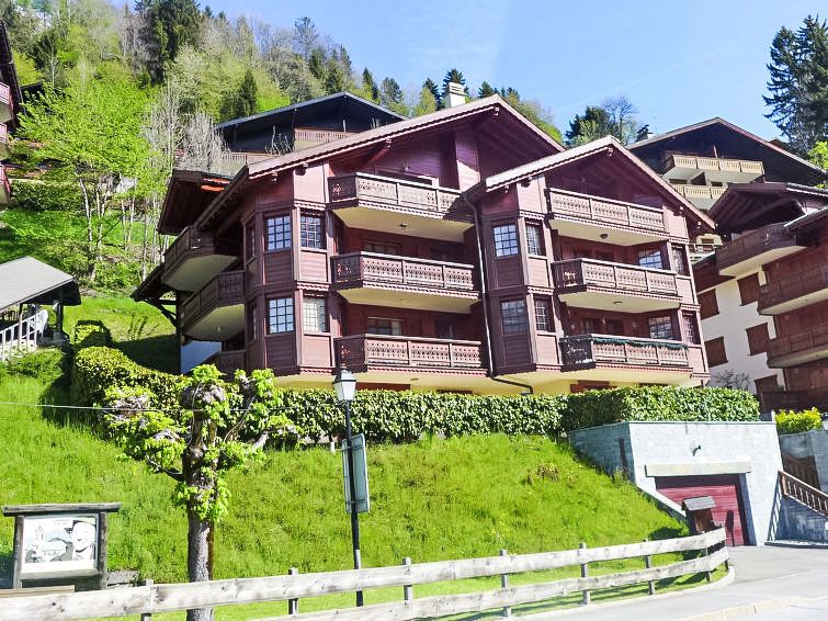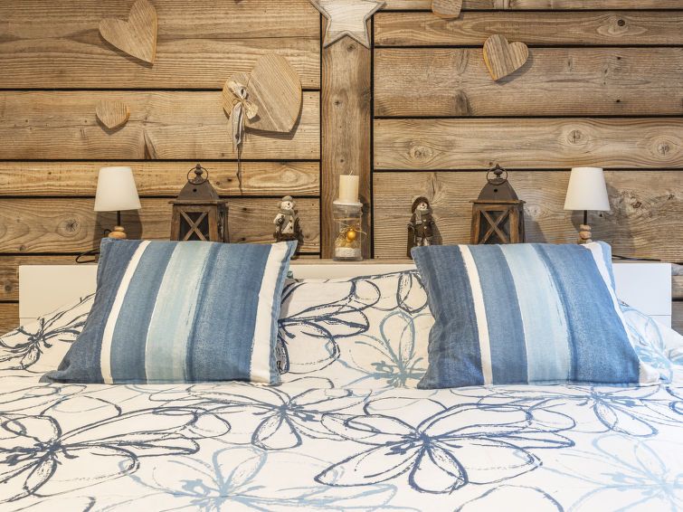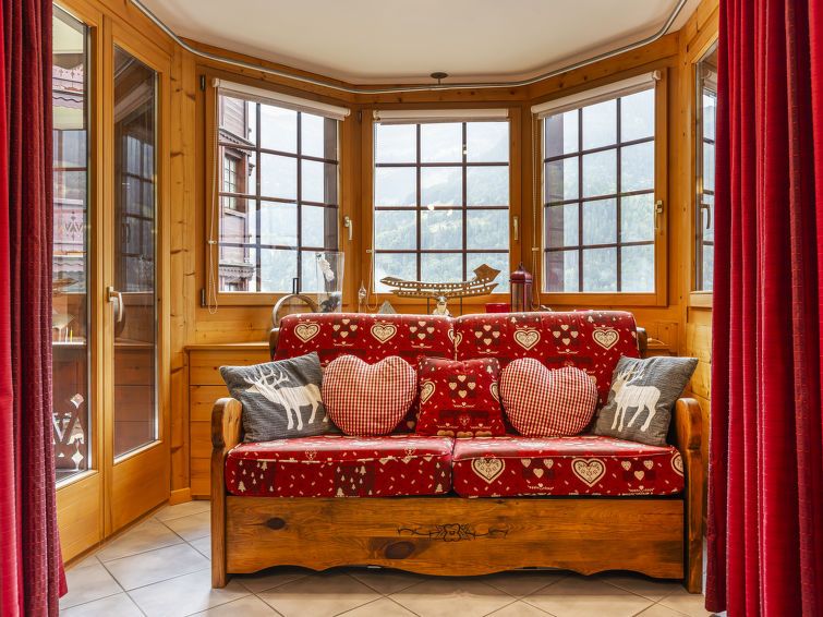 "Bouquetins", 3-room apartment 100 m2 on 1st floor. Tasteful and cosy furnishings: open large living/dining room with 1 double sofabed, Scandinavian wood stove and TV. Exit to the balcony. 1 room with 1 double bed (160 cm, length 200 cm), bath/WC. 1 room with 1 x 2 bunk beds, 1 fold-away bed.