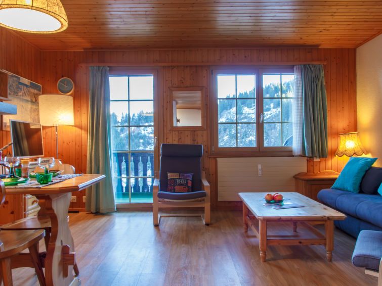 "Edelweiss", 2-room apartment. Object suitable for 2 adults + 2 children. Comfortable and tasteful furnishings: living/dining room with 1 double sofabed (140 cm, length 200 cm). Exit to the balcony. 1 room with 2 beds (90 cm, length 200 cm). Small, open kitchen (3 hot plates, oven, dishwasher, microwave, electric coffee machine, Capsules for coffee machine (Nespresso), fondue Set (chinoise, cheese)) with hatch.