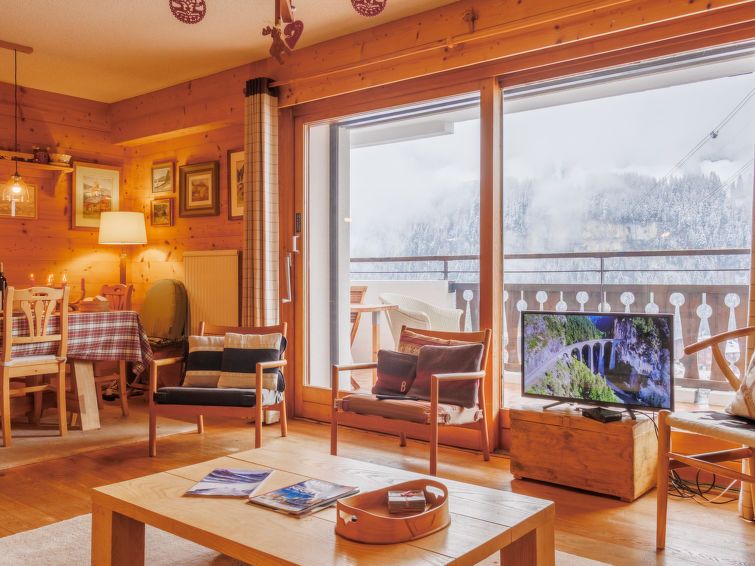 "Neige et Soleil", 3-room apartment 70 m2 on 3rd floor. Object suitable for 2 adults + 2 children. Comfortable and tasteful furnishings: living/dining room with cable TV and electric shutters. Exit to the balcony. 1 room with 2 beds (80 cm, length 200 cm), electric shutters. 1 children's room with 1 x 2 bunk beds (90 cm, length 190 cm).