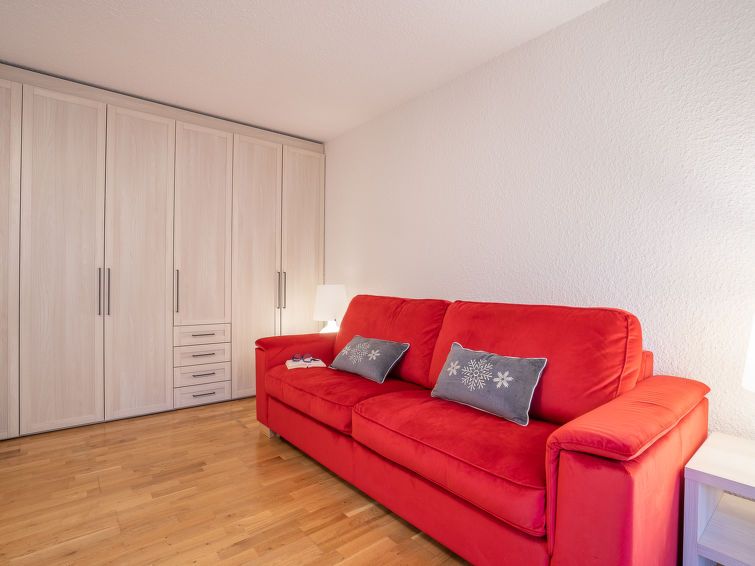 1-room apartment 25 m2, on the ground floor. Comfortable furnishings: living/dining room with 1 double sofabed (160 cm, length 200 cm), TV (flat screen). Exit to the garden. Open kitchen (dishwasher, 4 ceramic glass hob hotplates, kettle, microwave). Shower/WC. Electric heating. Small patio 7 m2, north facing position.