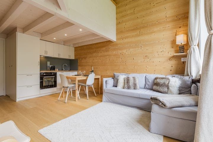 Featuring all the elements of a traditional Alpine stay, the soft tones and wooden interiors sit in perfect harmony with the natural beauty that surrounds this home. You could while away hours simply admiring the stunning views from the balcony or living area. But it will be hard to resist the fun that awaits outdoors.