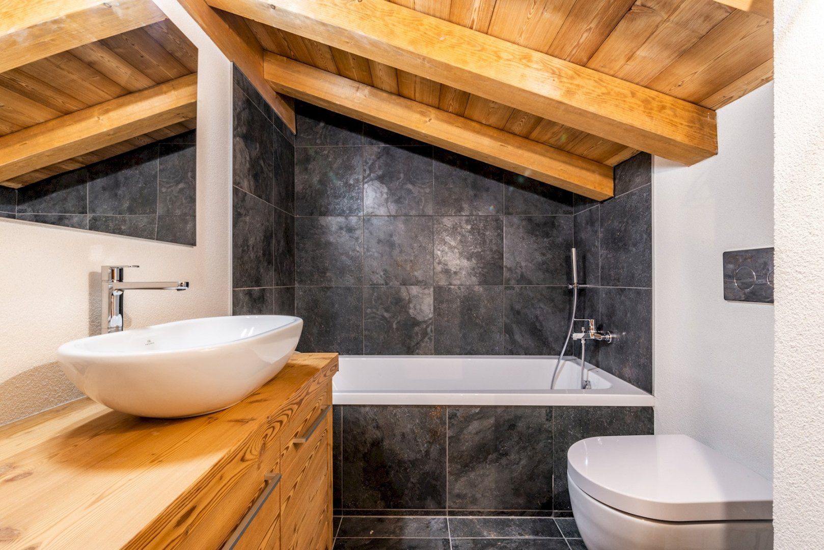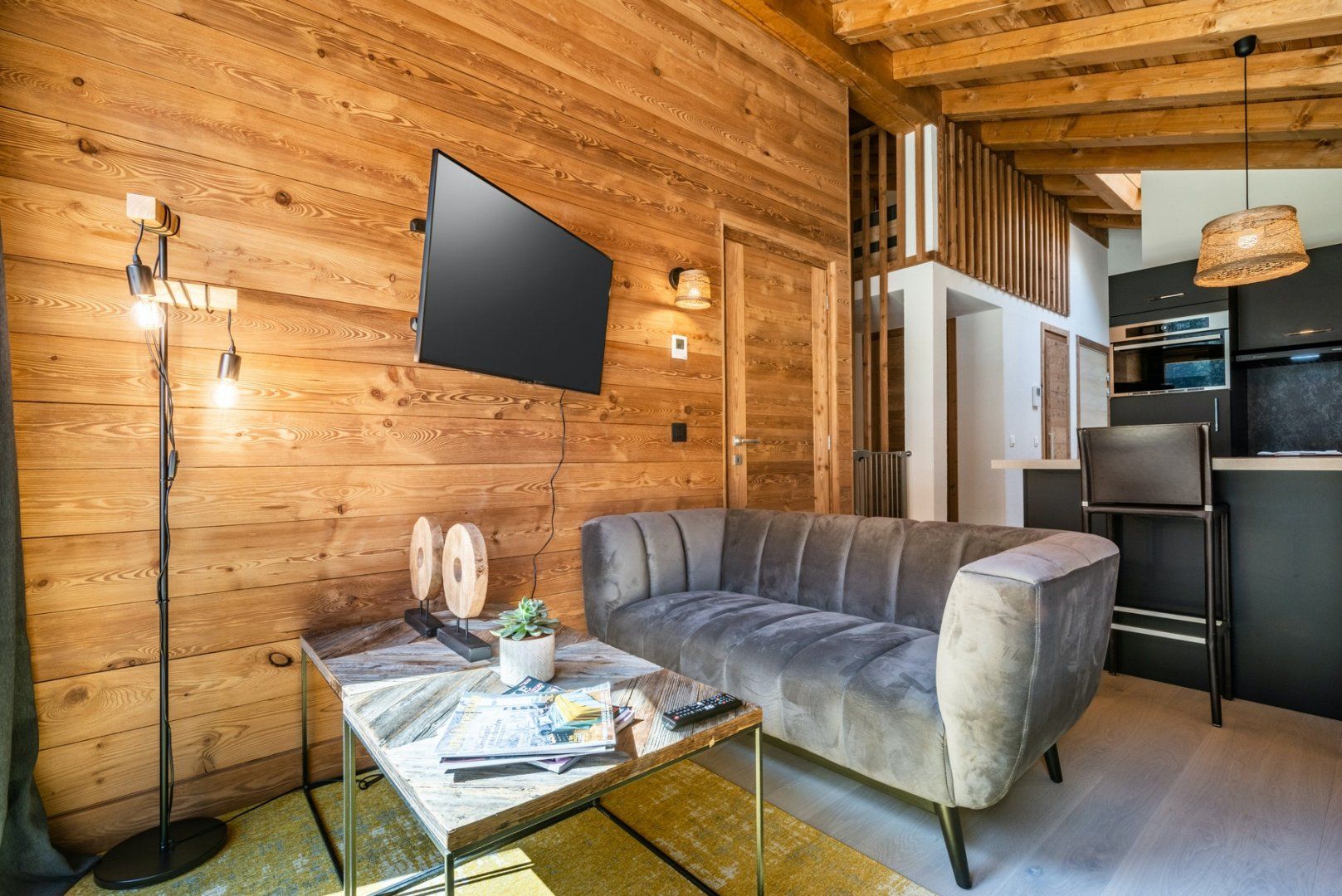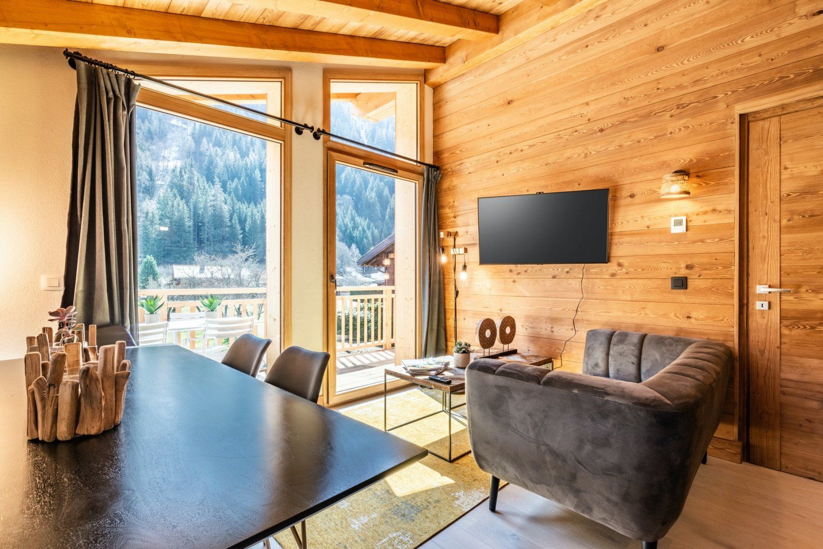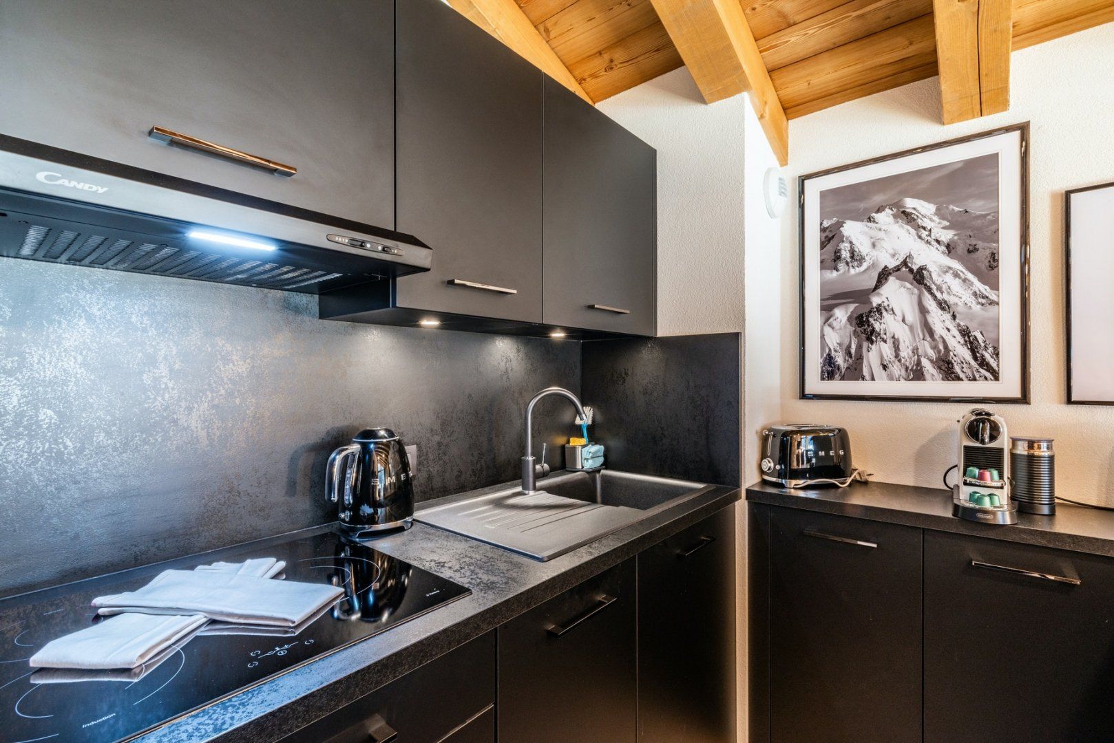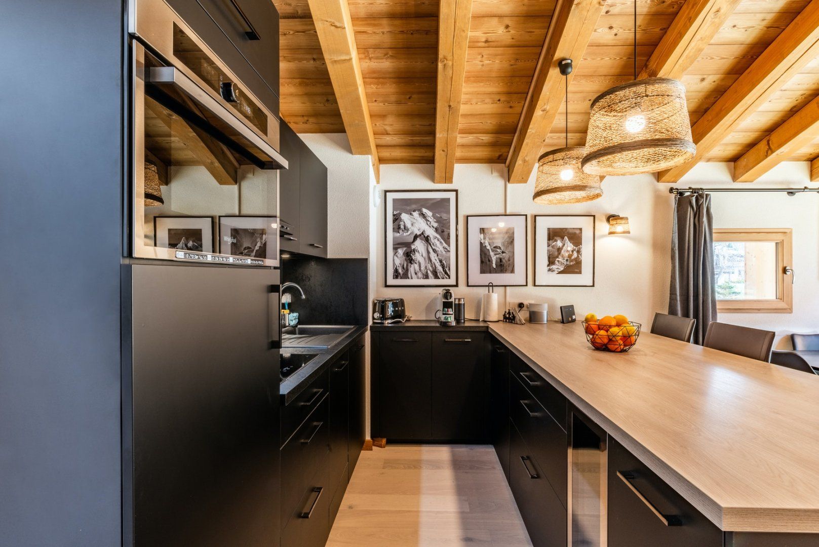 Step out onto the balcony of this smart new apartment and gaze in wonder at the mountain views. Built from local timber and stone, it's a charming mix of the traditional and the modern, with vaulted ceilings, a small mezzanine overlooking the lounge and high-end contemporary styling. We particularly love the black kitchen, kitted out with everything you'll need for cooking at home.