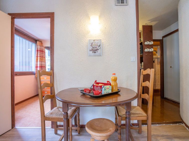 2-room apartment 32 m2 on 4th floor. Living/dining room with 1 double sofabed (160 cm, length 200 cm), TV. Exit to the terrace. 1 room with 1 x 2 bunk beds (90 cm, length 190 cm). Kitchenette (2 hot plates, oven, kettle, microwave, freezer, electric coffee machine). Bath/WC. Electric heating.