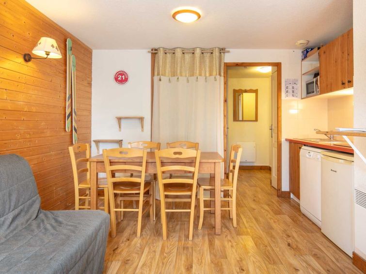 "V du Bachat Asters A", 2-room apartment 38 m2, on the ground floor. Object suitable for 6 adults. 1 room with 2 beds and TV. Living room with 1 sofabed and 1 x 2 bunk beds, 1 pull-out bed. Open kitchen (4 hot plates, dishwasher, toaster, kettle, microwave, electric coffee machine).