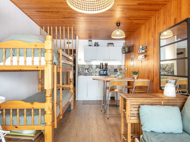 "Le Carina", 1-room studio 25 m2, on the ground floor. Object suitable for 4 adults. Living room with 1 sofabed and 1 x 2 bunk beds, 1 pull-out bed and TV. Open kitchen (2 hot plates, toaster, kettle, microwave, electric coffee machine). Bath/WC. Terrace. Facilities: washing machine, iron.