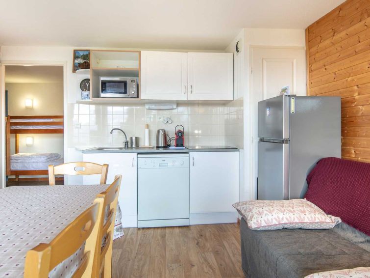 "V du Bachat Sorbiers E", 1-room studio 38 m2 on 2nd floor. Object suitable for 6 adults. Living room with 1 sofabed and 1 x 1 bunk beds, 1 double bed, 1 pull-out bed and TV. Kitchen (oven, dishwasher, toaster, kettle, microwave, freezer, electric coffee machine). Bath/WC. Balcony.