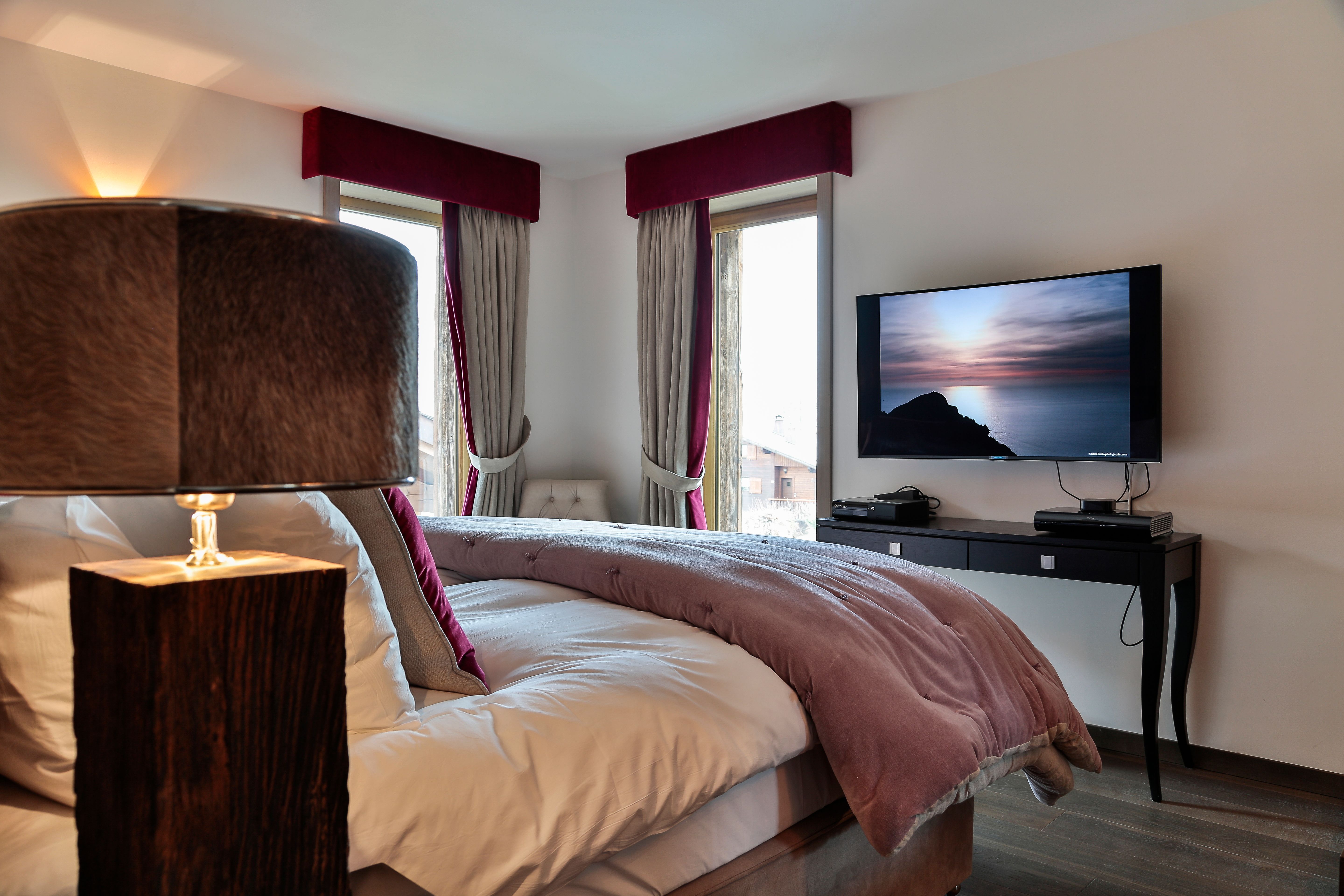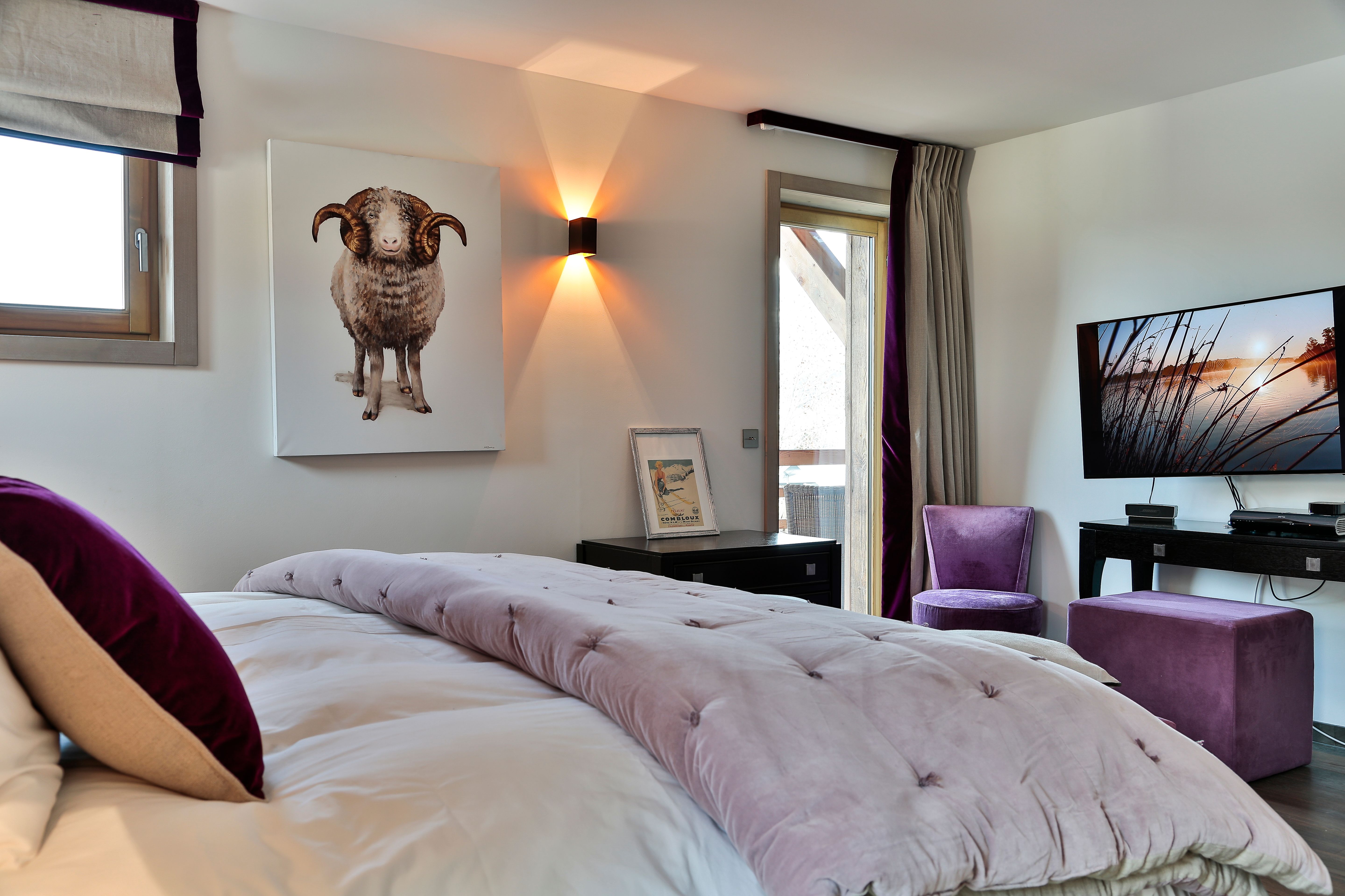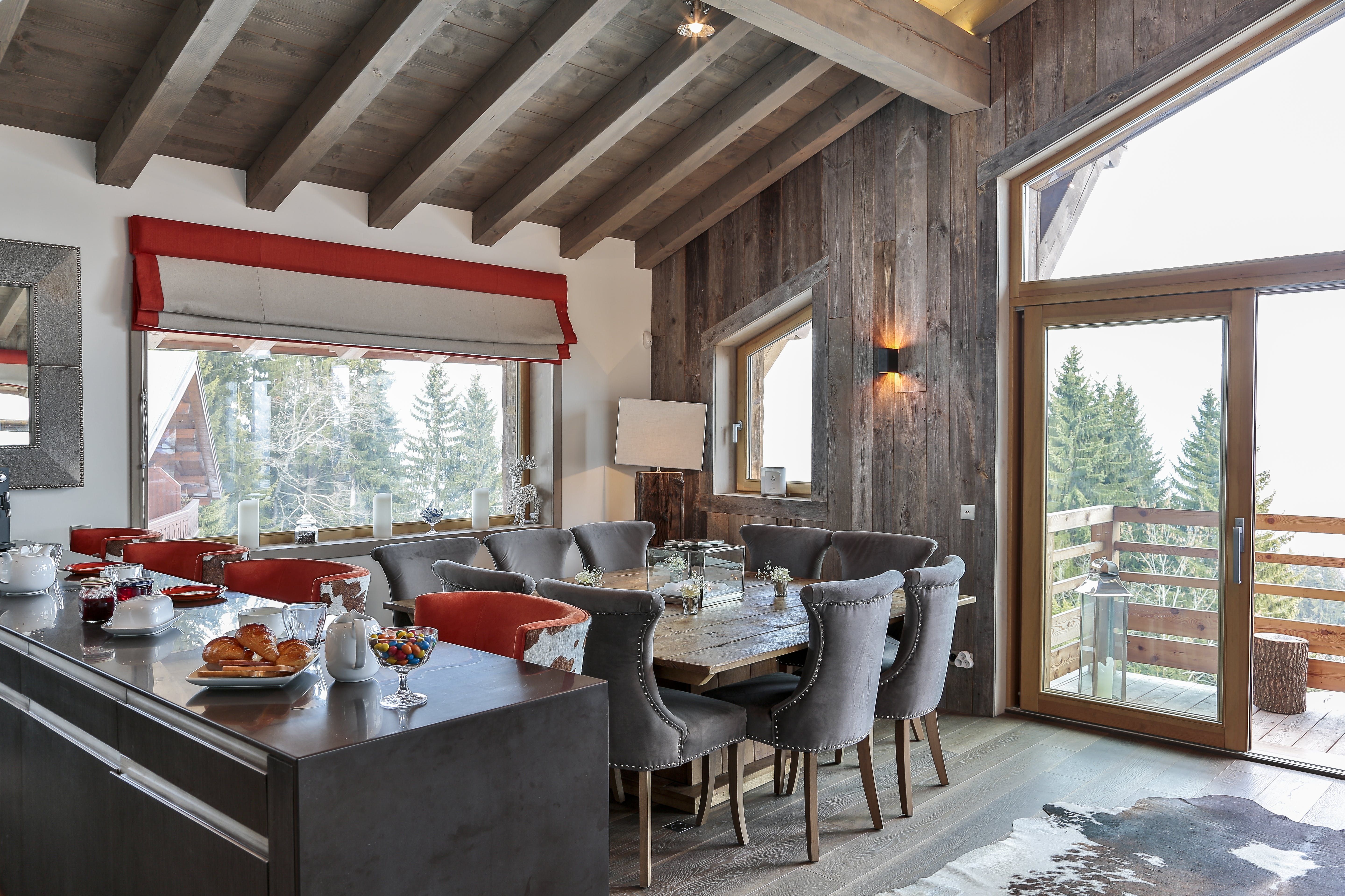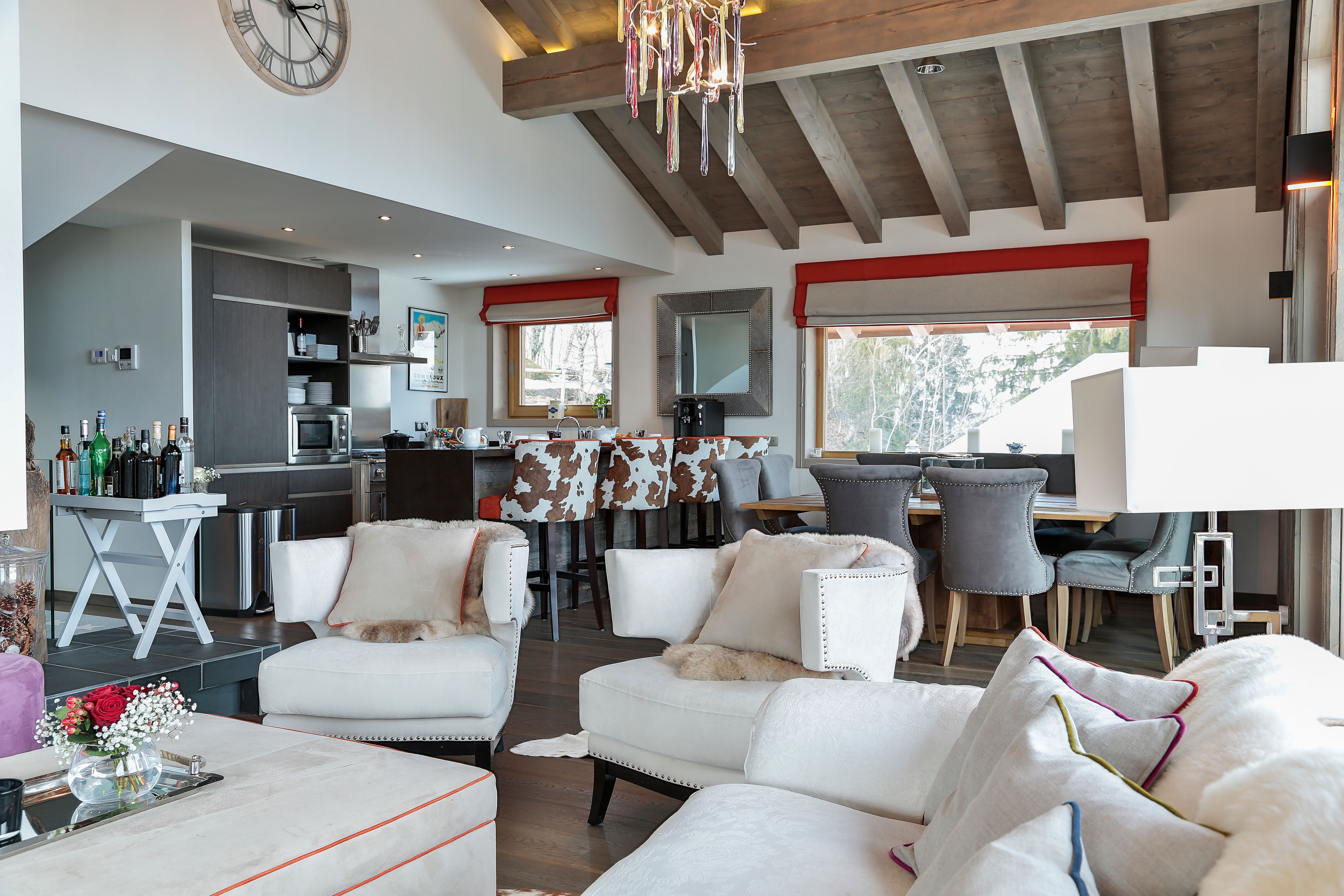 There’s no two-ways about it; the view from this chalet is absolutely breathtaking. From the wall of glass in the living room, you’ve got a panorama of the Mont Blanc valley, where snow-topped mountains are impossibly tall. Step out onto the balcony to breathe in the Alpine air and admire the view from fur-covered seats and perhaps consult the drinks table for a little aprés ski.