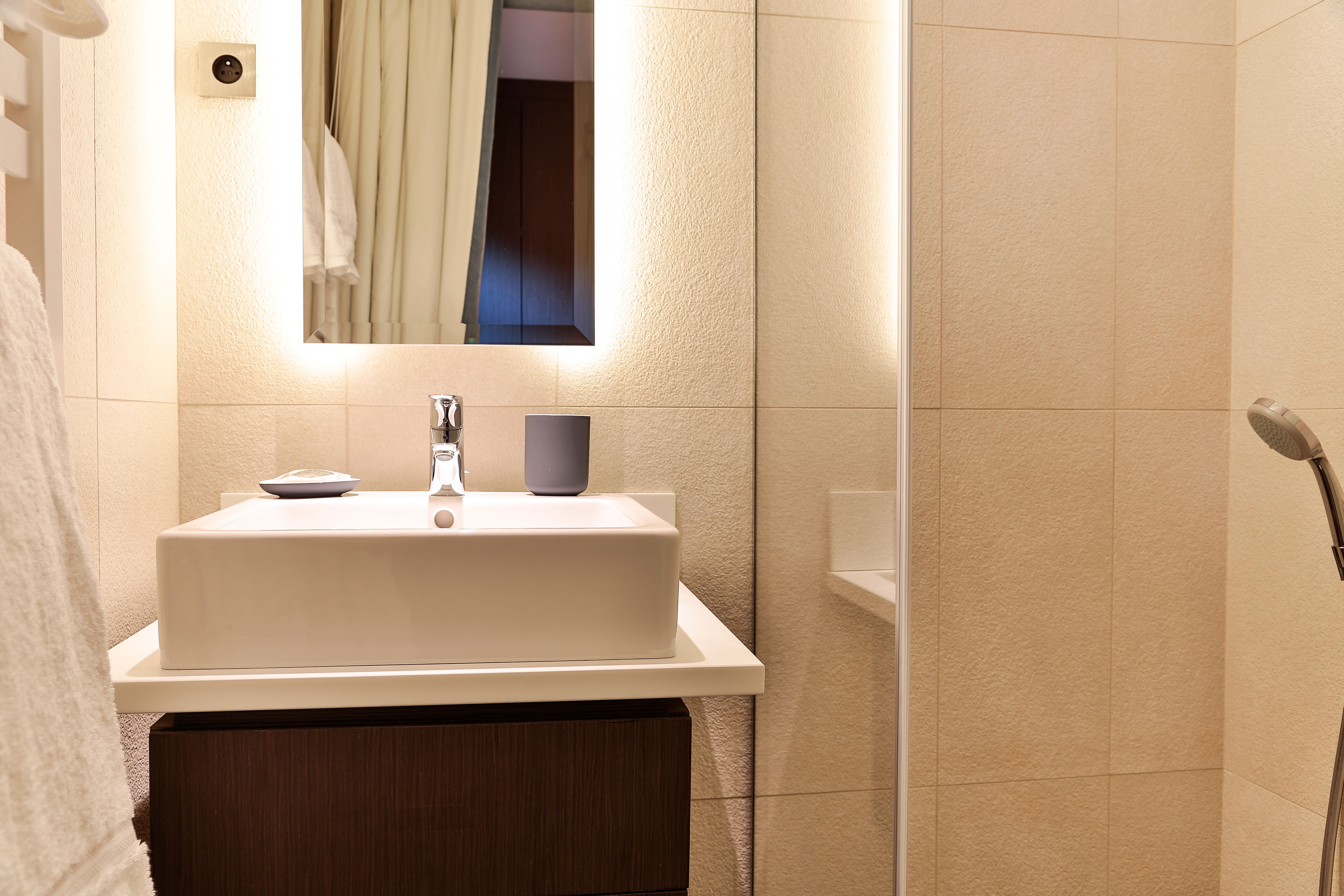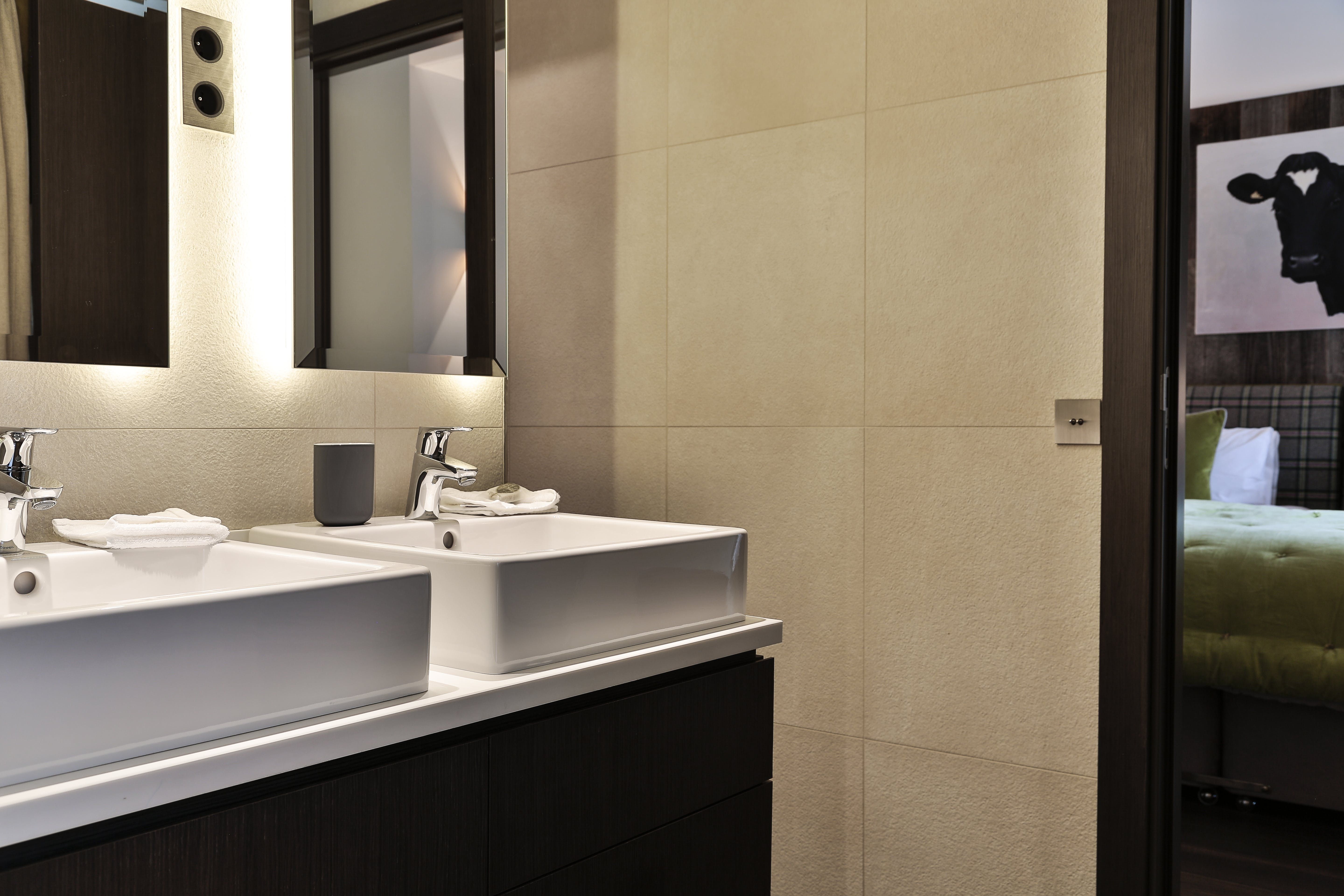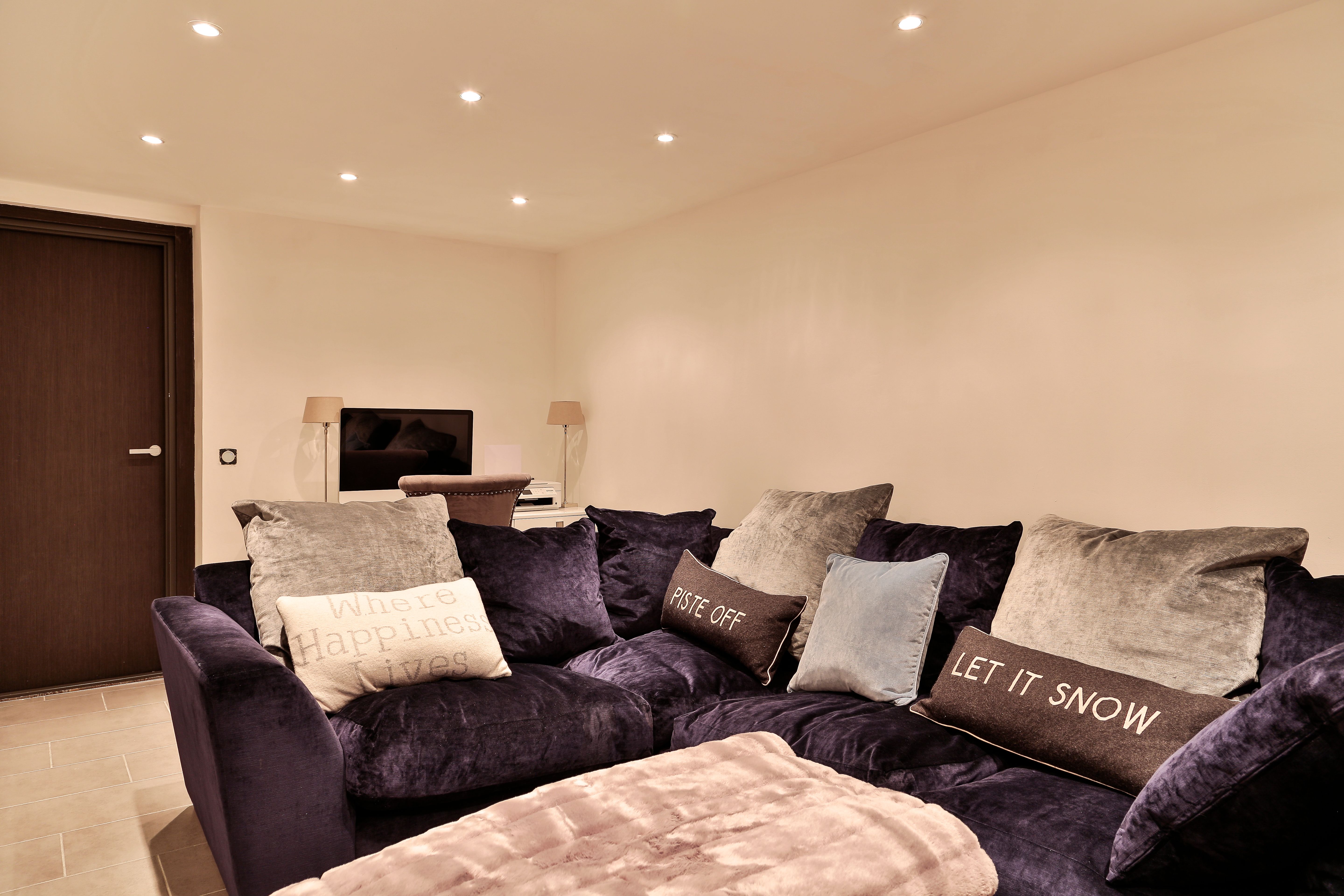 Speaking of ski, this home is located at the start of the ski slopes of Combloux, where lifts and gondolas await to whisk you up the mountainside. After a day on the slopes, there’s nothing better than getting a fire going in the living room, draping a fur blanket over your knees and cuddling up on one of the plump sofas. Or, head down to the home cinema for a movie night together. Bedrooms beneath wooden ceilings on the top level are the ultimate ski chalet vibe.