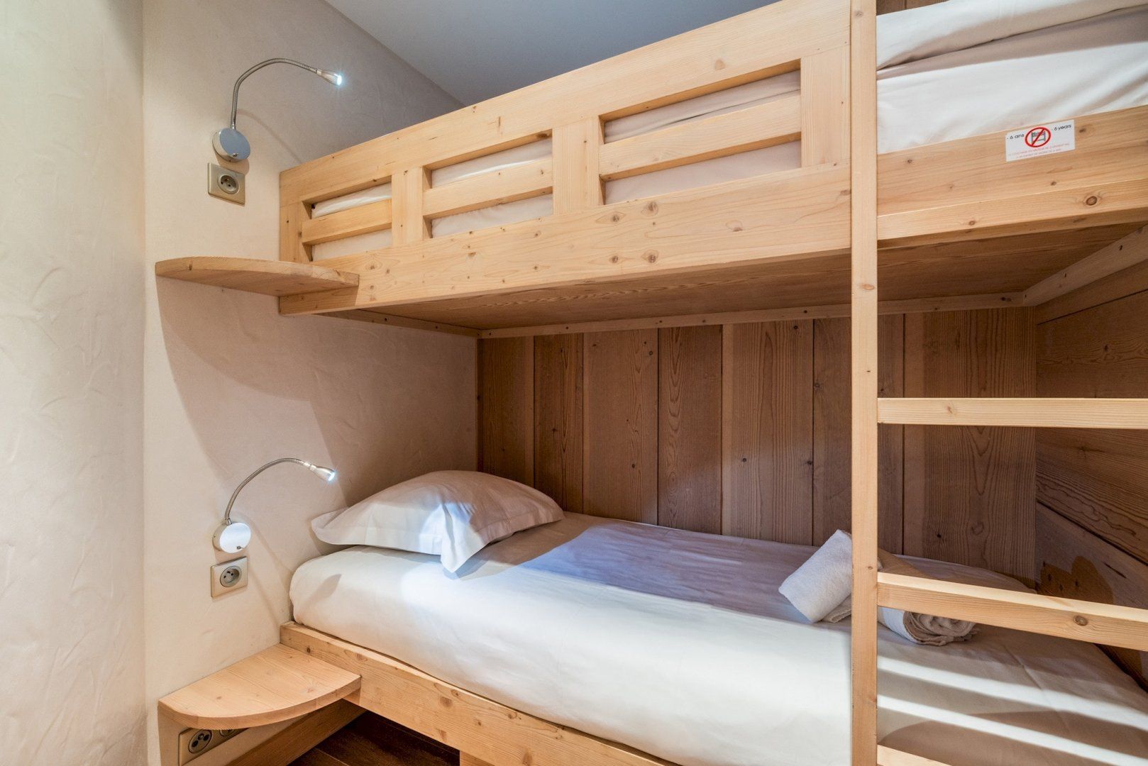The interior takes inspiration from traditional mountain design, with plenty of wooden cladding and stone accents that evoke the grand chalets found dotted throughout the resort. An open living area – with a sofa, dining table and well-equipped kitchen – is ideal for unwinding after an exhilarating day enjoying the outdoors. Make the most of bluebird days with a revitalising morning coffee out on the east-facing balcony, returning home after countless top-to-bottom runs to soothe your aching muscles in the sauna.