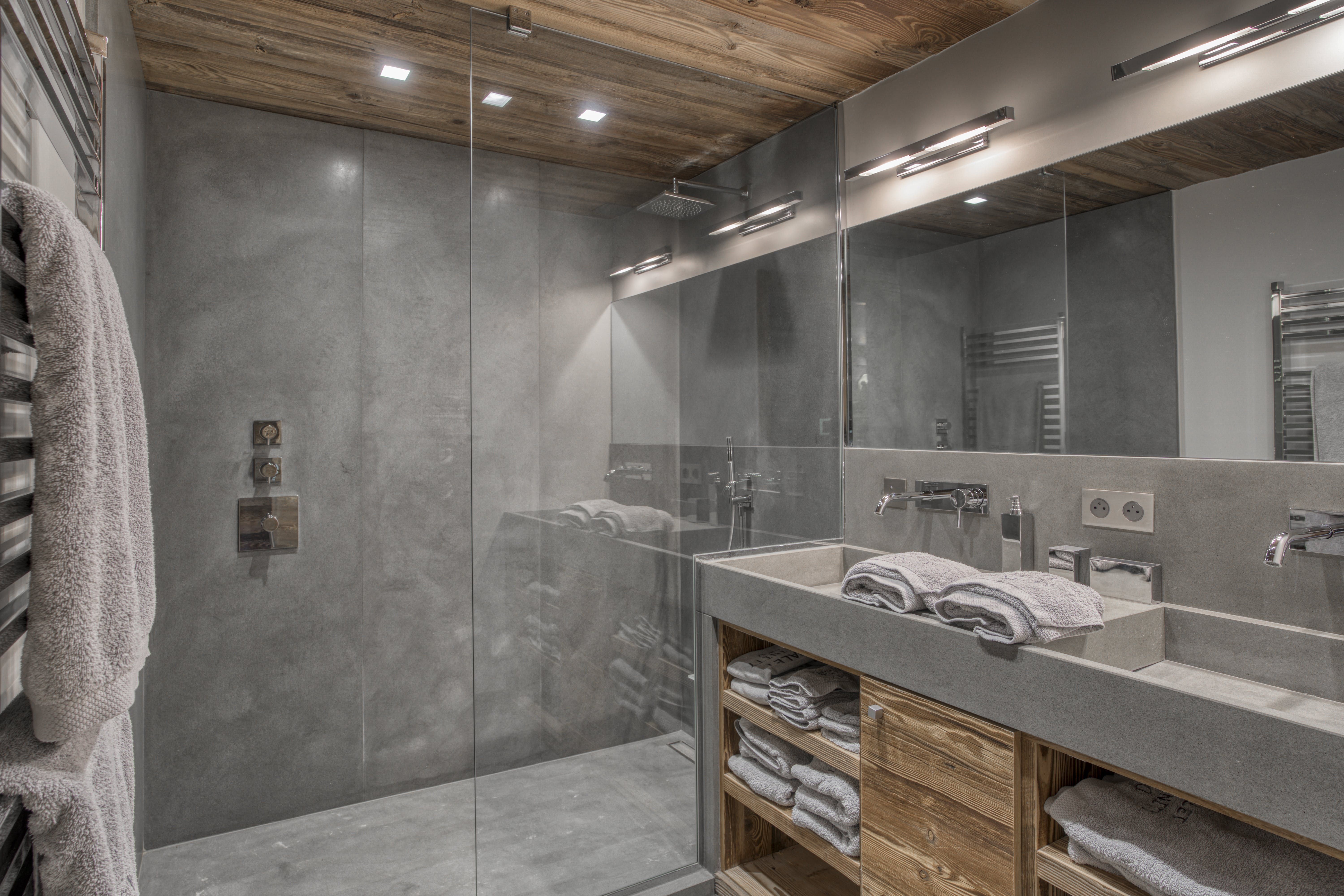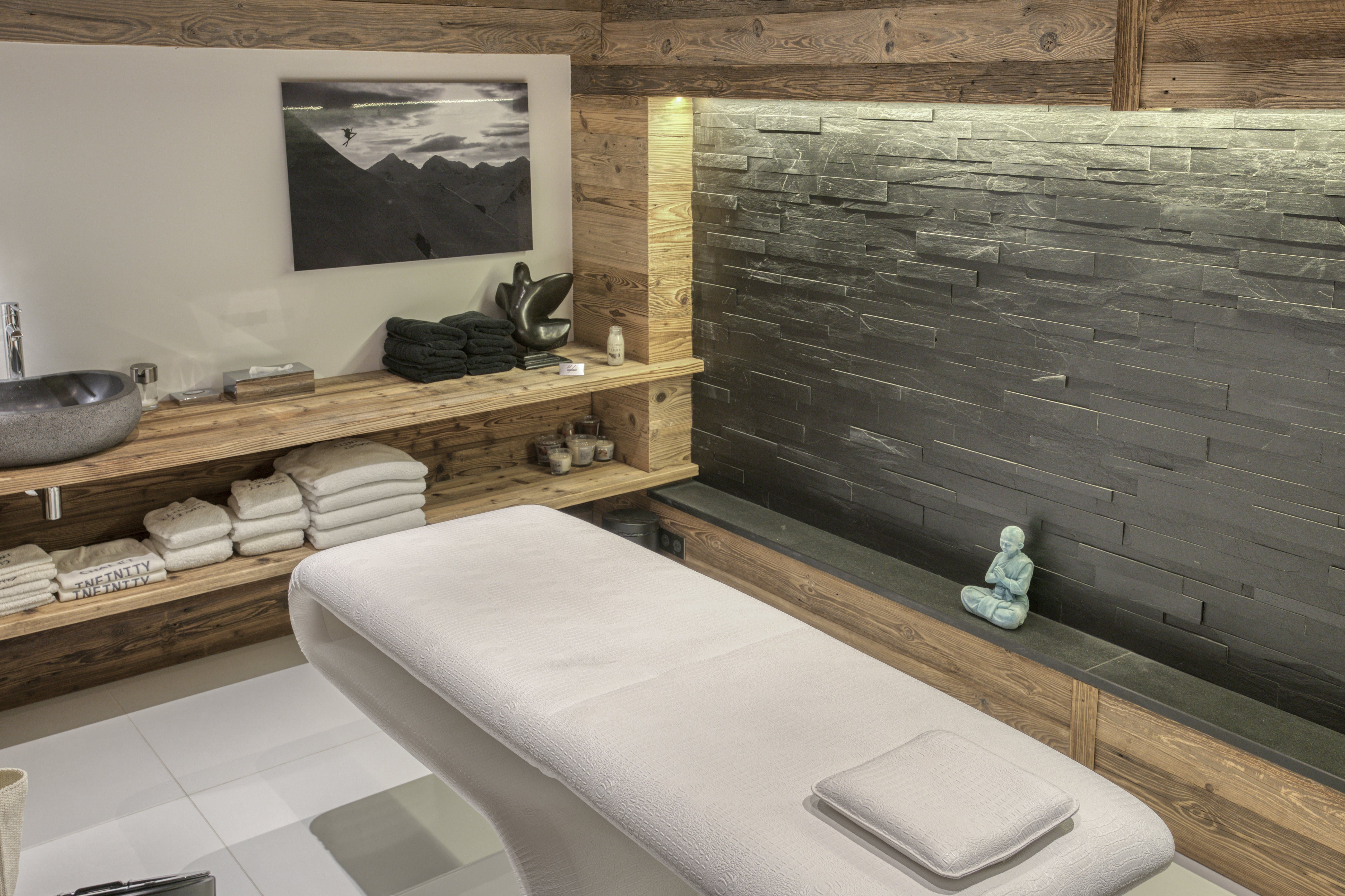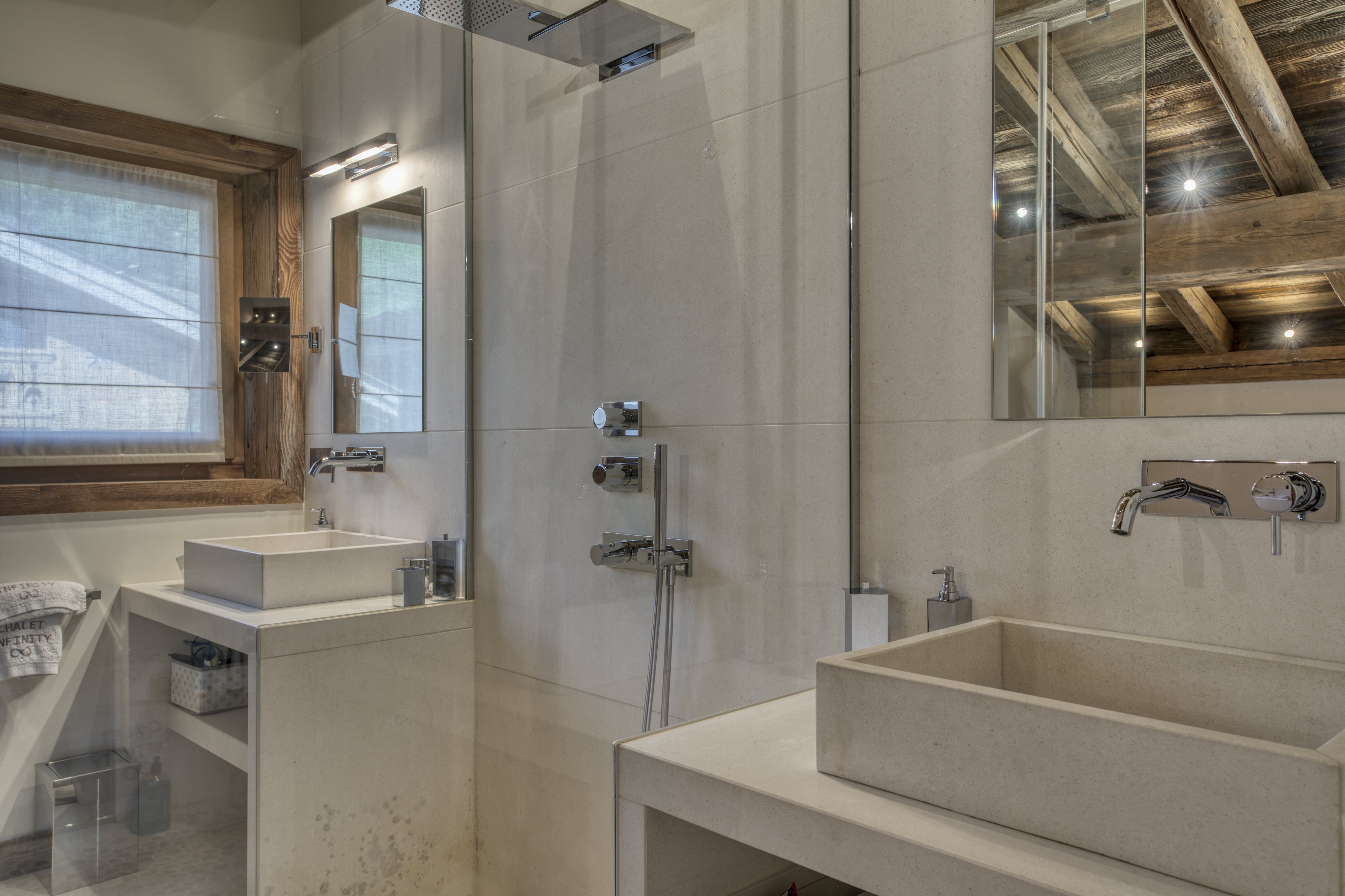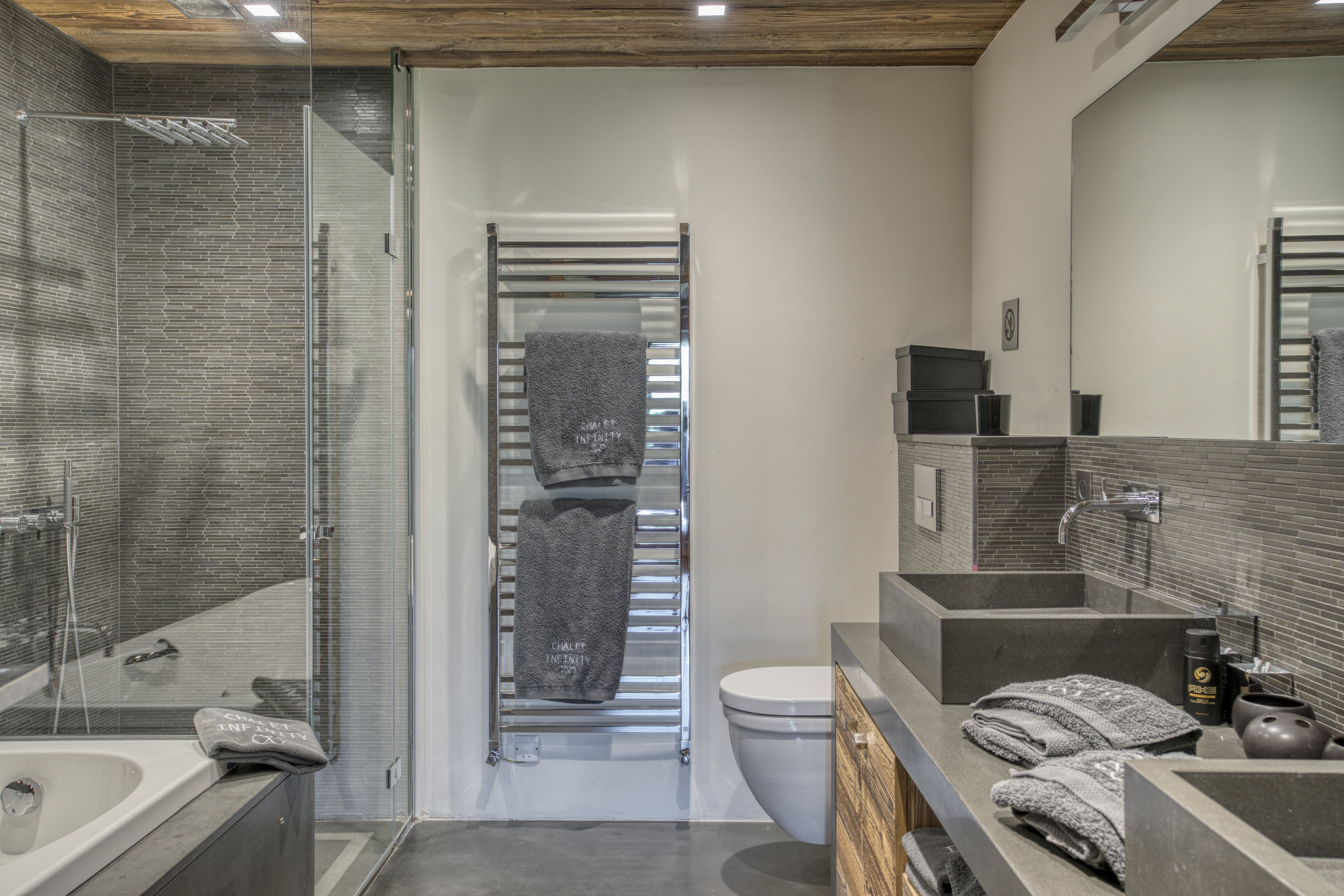 After a day on the slopes, there’s nothing better than settling in front of the fire in the grand lounge, perhaps with a glass of red from the wine cellar. A wall of picture-frame windows shows off the valley view from here and there’s a banquet-sized dining table for group meals. Bedrooms in wood-clad walls and slate grey are the perfect mix of chalet-chic and modernism.
