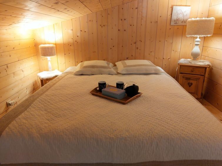 "La Jacquerie", 1-room studio 32 m2 on 1st floor. Object suitable for 2 adults + 2 children. Living/dining room with TV. Exit to the balcony. Open gallery with sloping ceilings with 1 french bed (160 cm, length 200 cm). Sleeping alcove with 1 x 2 bunk beds (80 cm, length 190 cm), 1 sleeping facility (80 cm, length 190 cm).