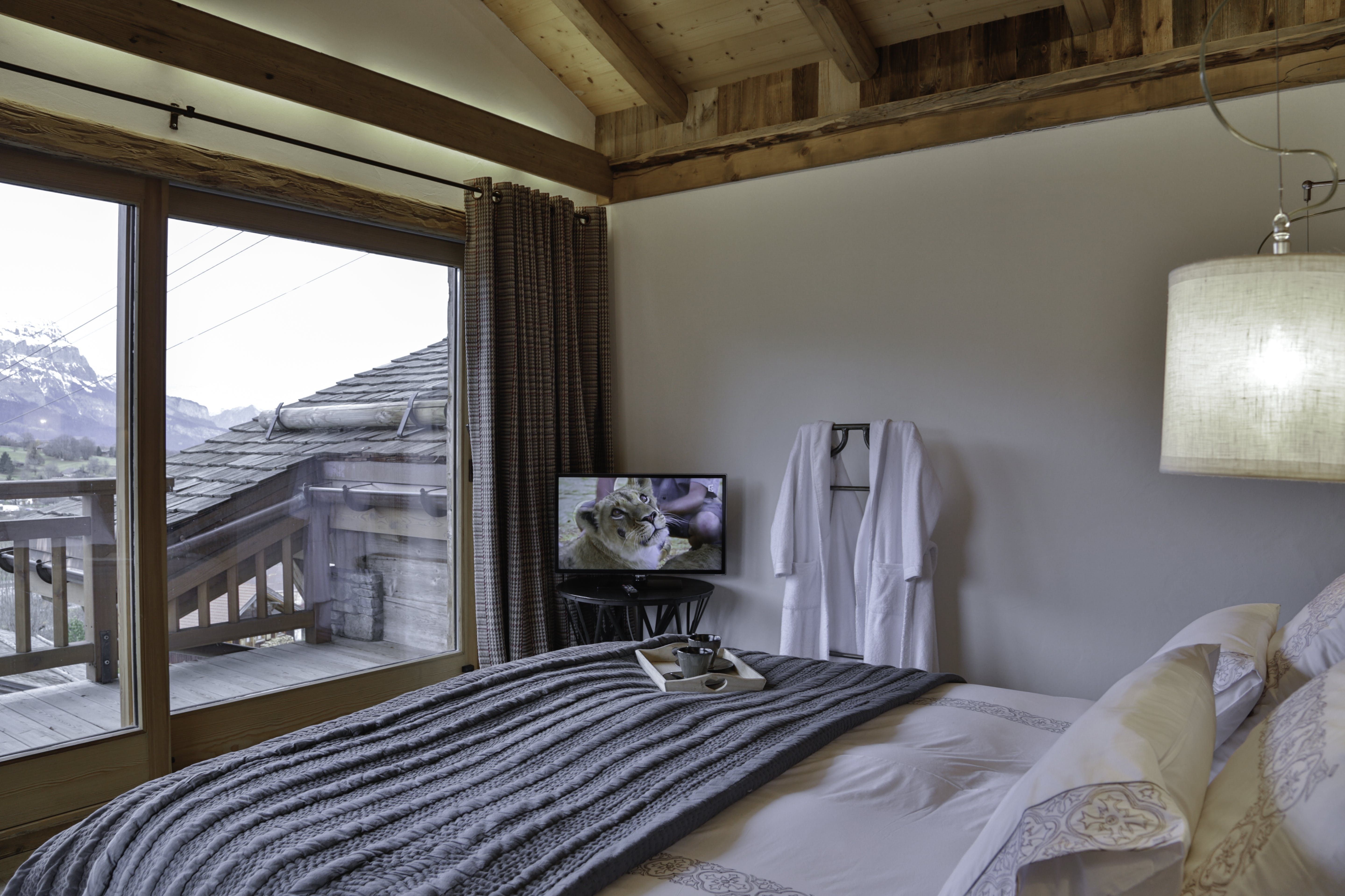This cosy chalet awaits you at the bottom of the La Princesse slopes. Offerings you a gorgeous view from every angle outdoors, as well as a sneak peek at the surrounding scenery from inside the home. You'll be greeted with wooden beamed ceilings and walls as well as wooden furniture to provide you with comfort and charm no matter the time of year. Pop the fireplace on as you put your feet up on the sofa next to the stone feature wall.