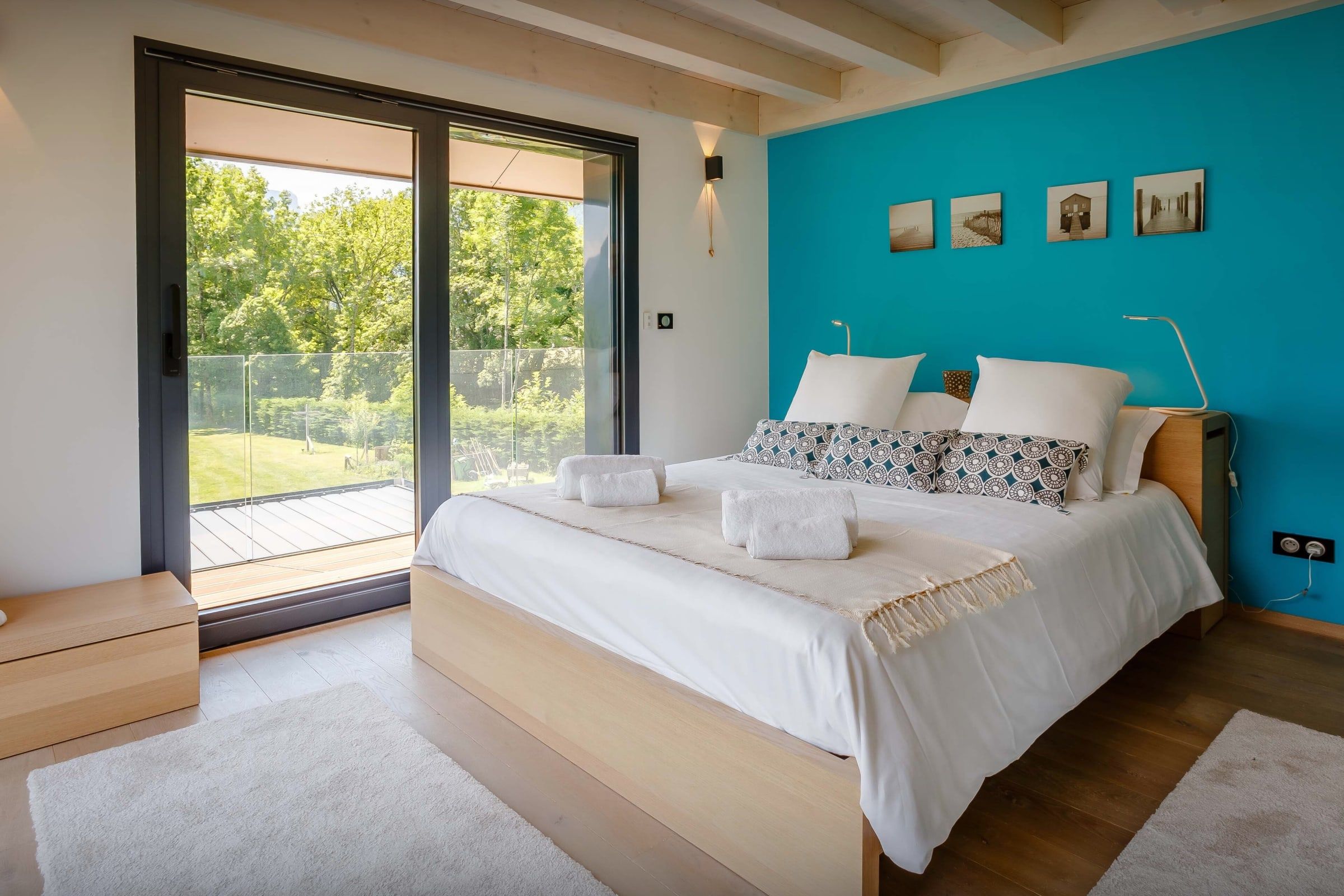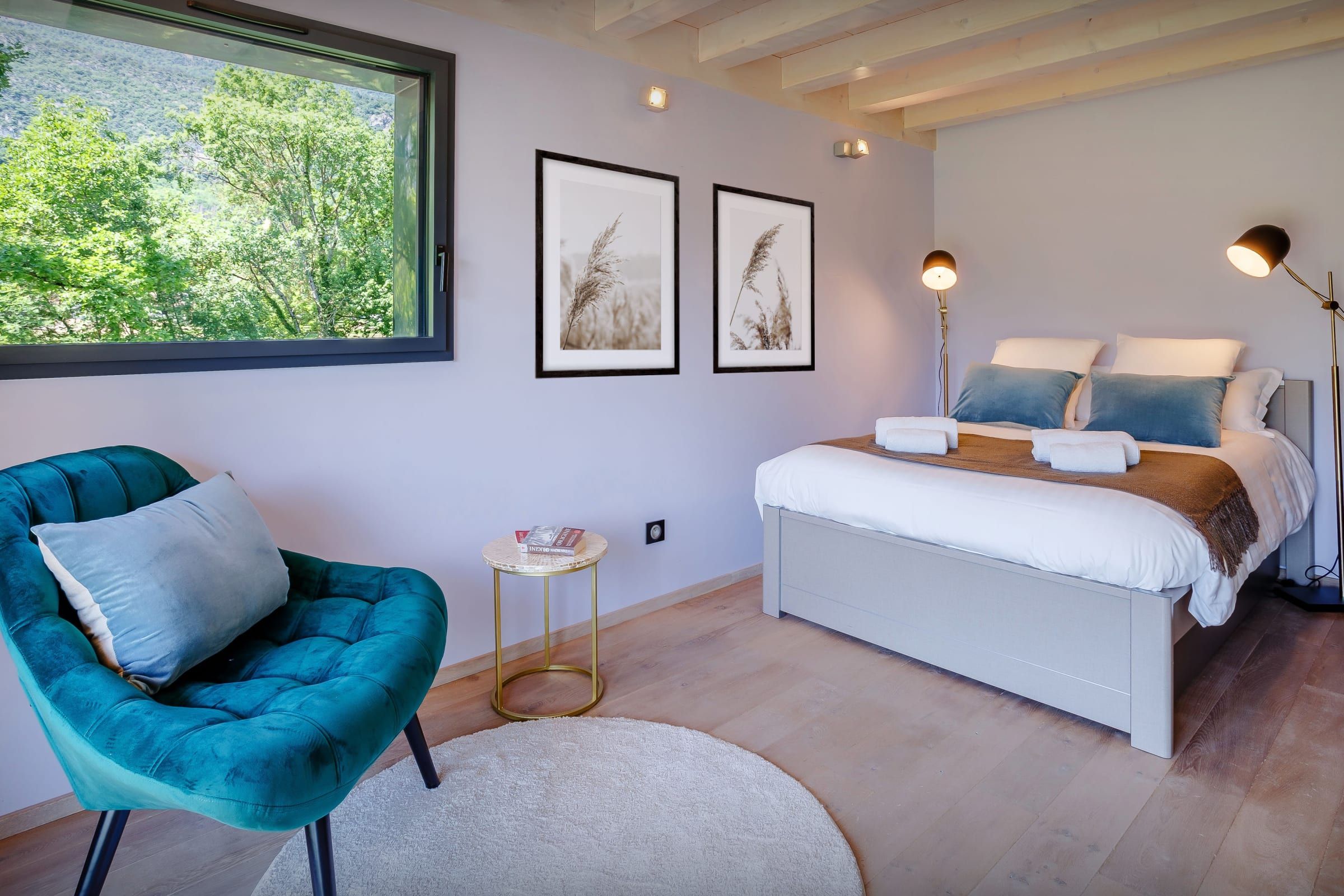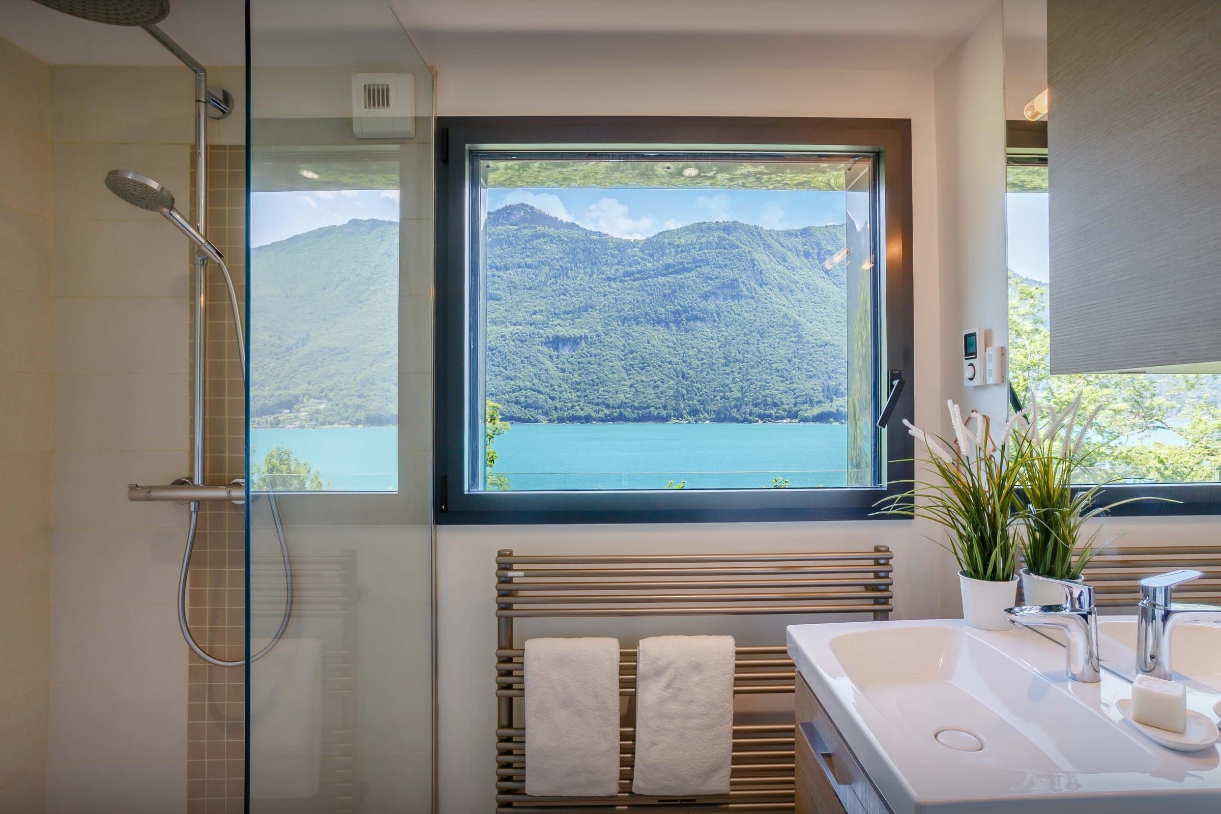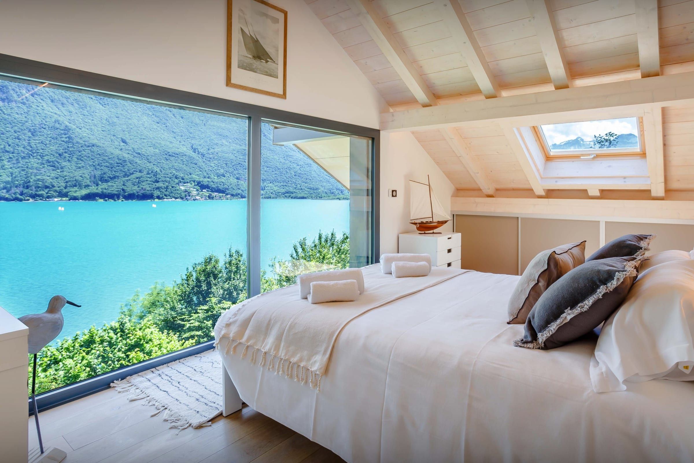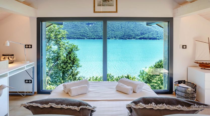 If you want to be surrounded by lake and mountain views, look no further. There’s a Nordic-style hot tub on the terrace, large gardens, a kids’ play area and pétanque pitch, as well as a shaded pergola for dining. The accommodation is over three floors, and all of the rooms capitalise on the wonderful vistas. Three bedrooms have access to a balcony, while the spacious fourth on the top floor has a seating and workout area. If you want to do some winter sports, the ski resorts of La Sambuy and Semnoz are just under thirty minutes away. In summer, there's a lakeside beach just 2 kilometres from this home, and the Voie Verte cycle and footpath passes the door.