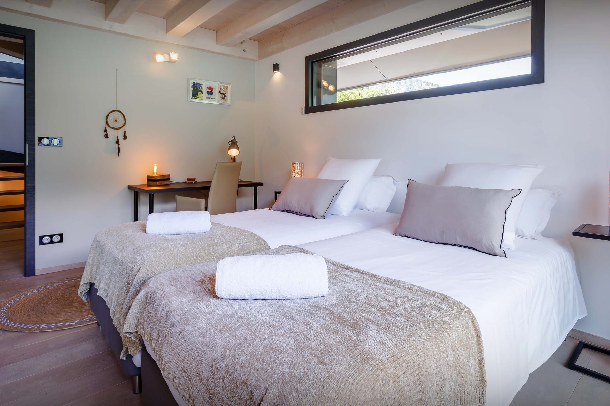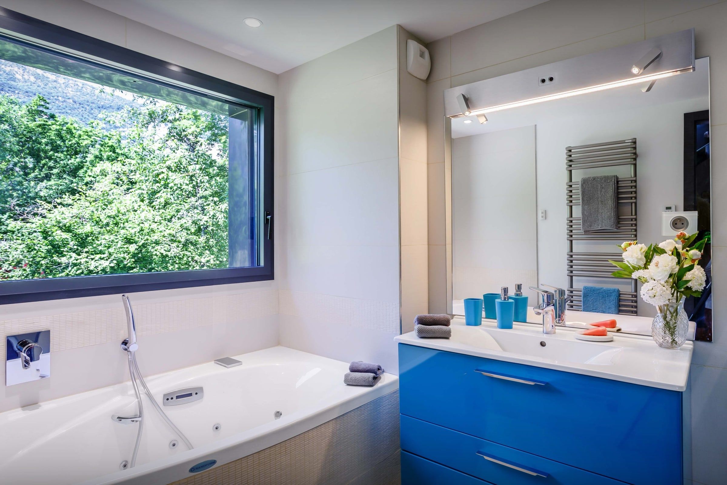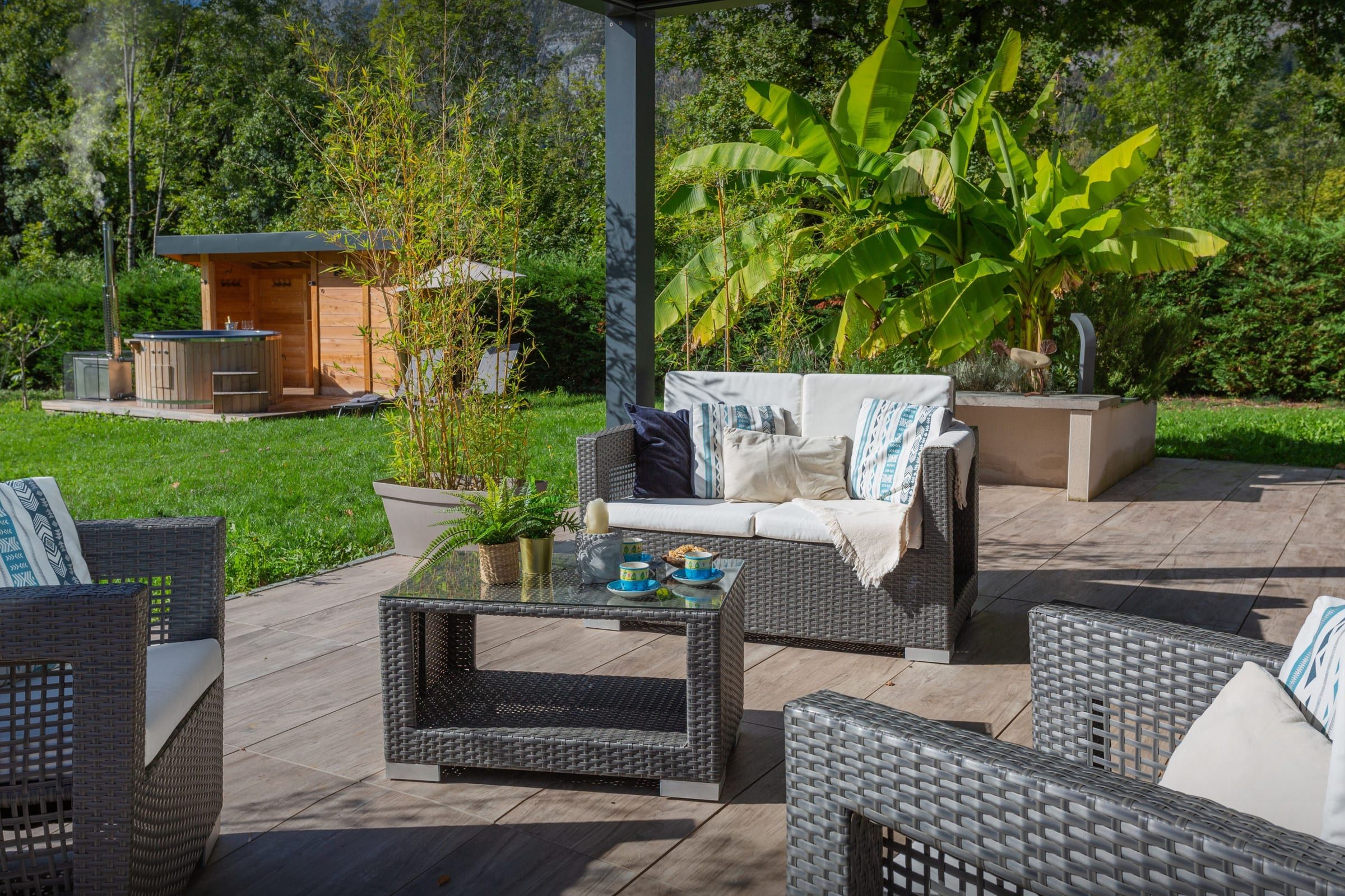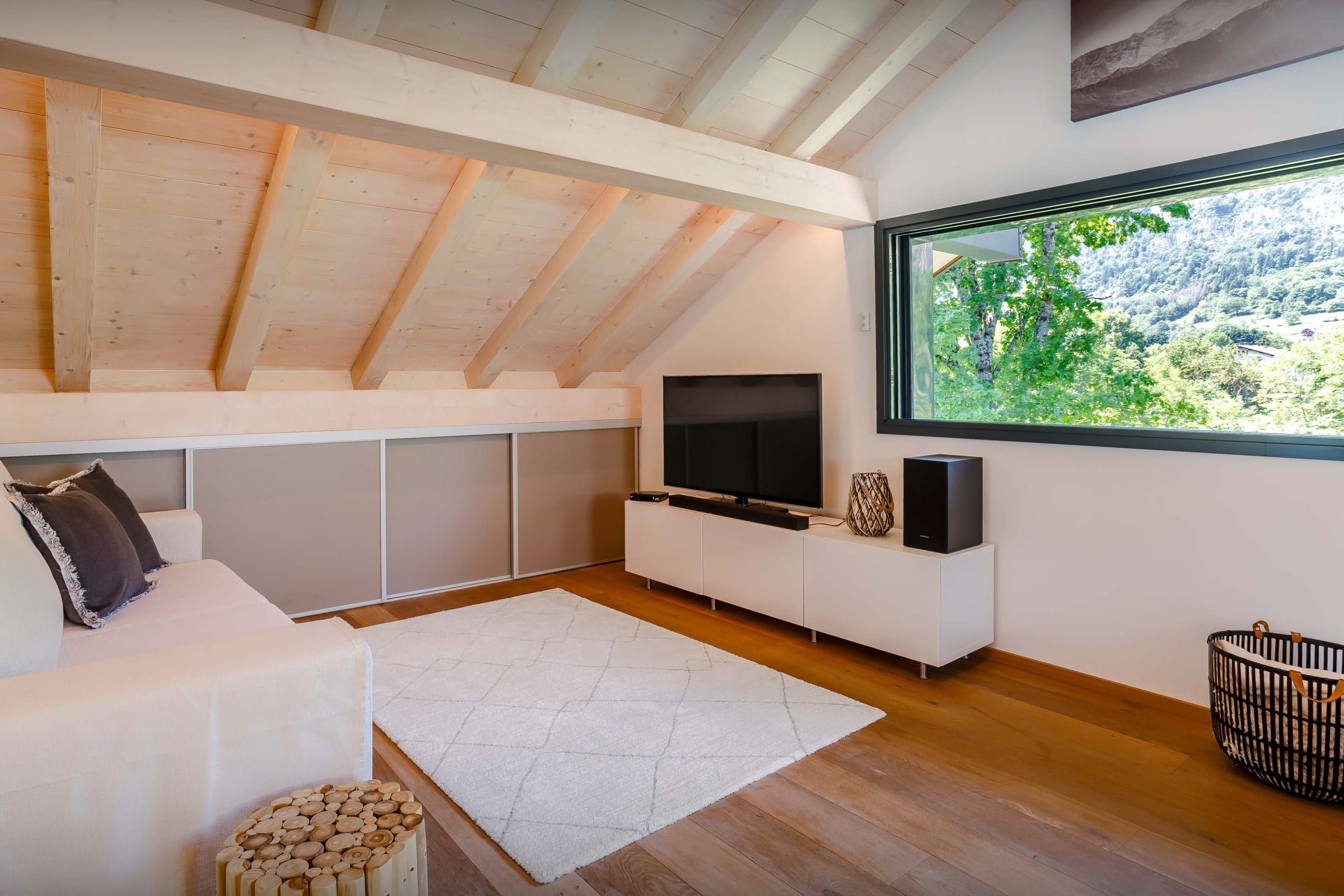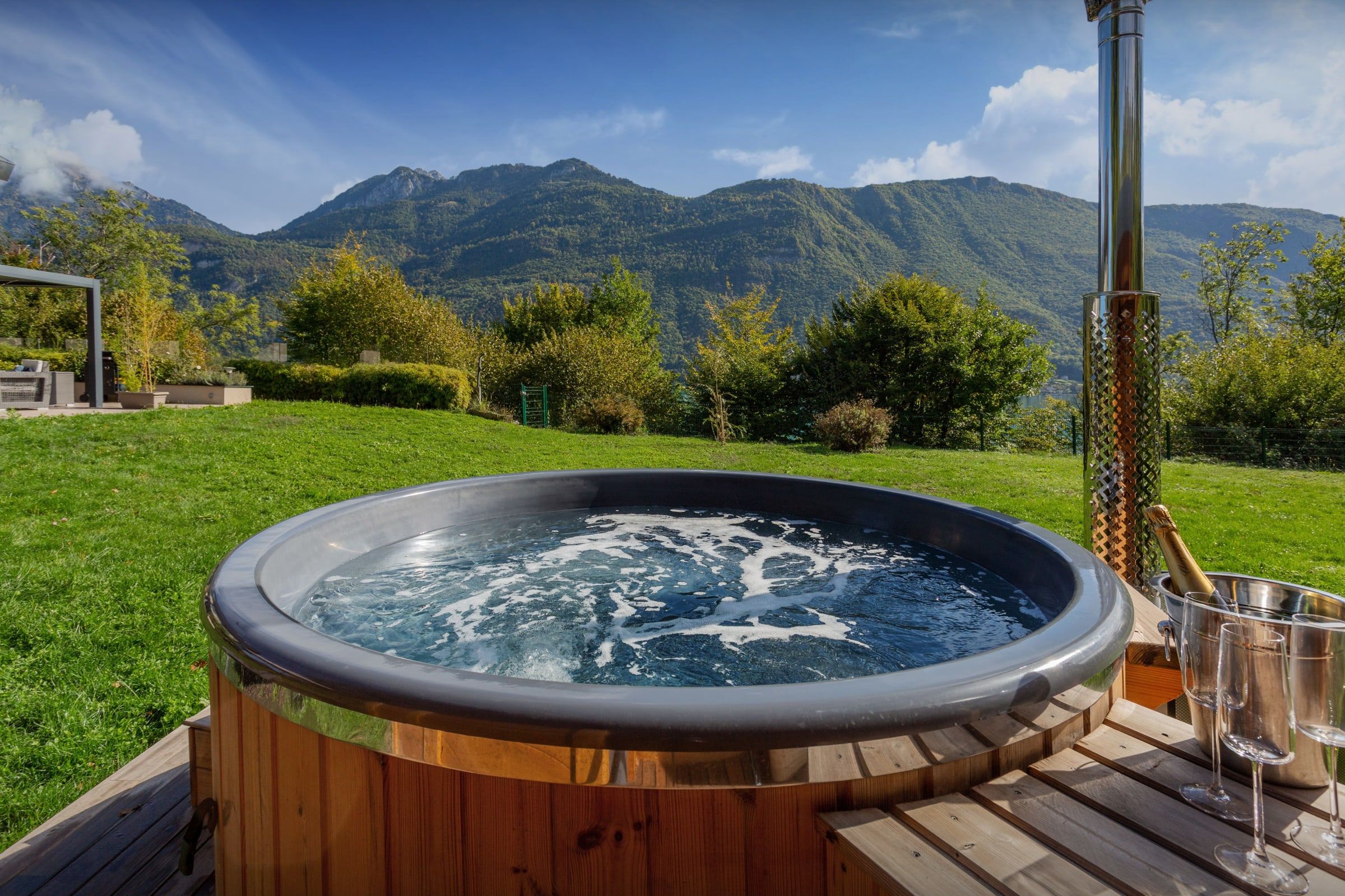 If you want to be surrounded by lake and mountain views, look no further. There’s a Nordic-style hot tub on the terrace, large gardens, a kids’ play area and pétanque pitch, as well as a shaded pergola for dining. The accommodation is over three floors, and all of the rooms capitalise on the wonderful vistas. Three bedrooms have access to a balcony, while the spacious fourth on the top floor has a seating and workout area. If you want to do some winter sports, the ski resorts of La Sambuy and Semnoz are just under thirty minutes away. In summer, there's a lakeside beach just 2 kilometres from this home, and the Voie Verte cycle and footpath passes the door.