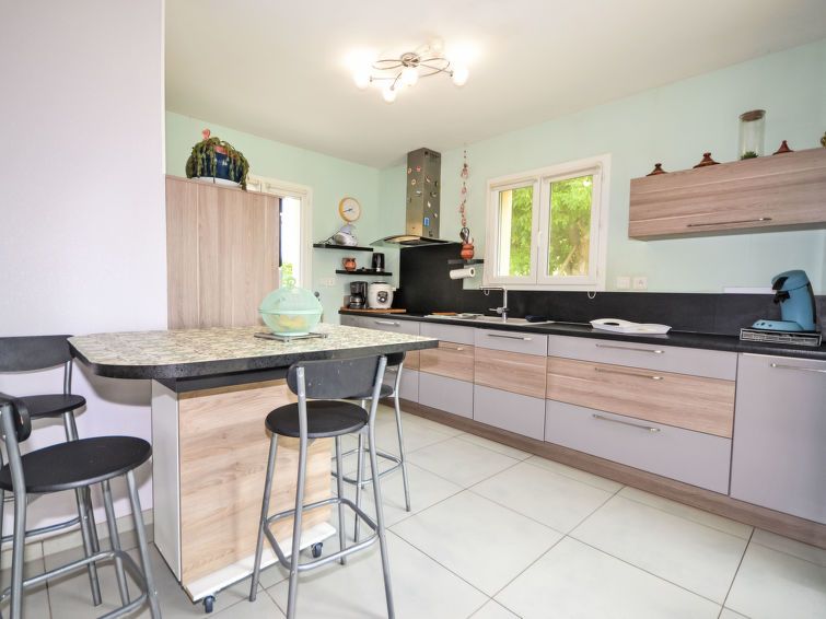 3-room terraced house 105 m2. Beautiful furnishings: living/dining room 25 m2 with Scandinavian wood stove and TV (flat screen), air conditioning and electric shutters. 1 room with 1 french bed (160 cm, length 200 cm), electric shutters. 1 room with 1 double sofabed (140 cm, length 190 cm), 1 french bed (140 cm, length 190 cm), electric shutters.