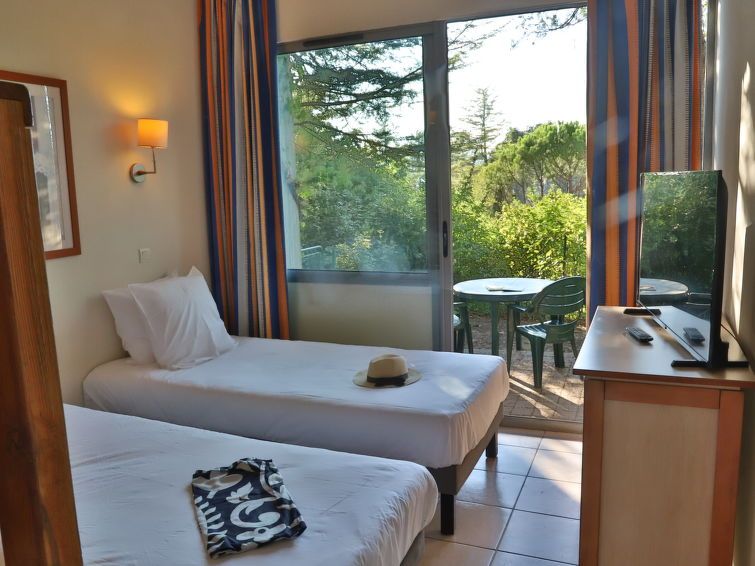 "Le Vallon", 1-room studio 25 m2. Simple furnishings: living/sleeping room with 1 french bed (180 cm, length 200 cm), dining table and TV (flat screen). Exit to the balcony, to the terrace. Kitchenette (dishwasher, 2 ceramic glass hob hotplates, toaster, kettle, microwave). Bath/WC.