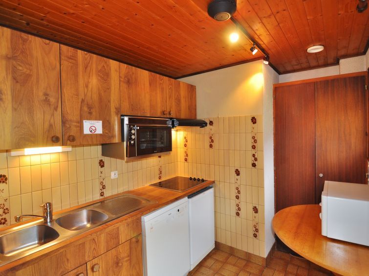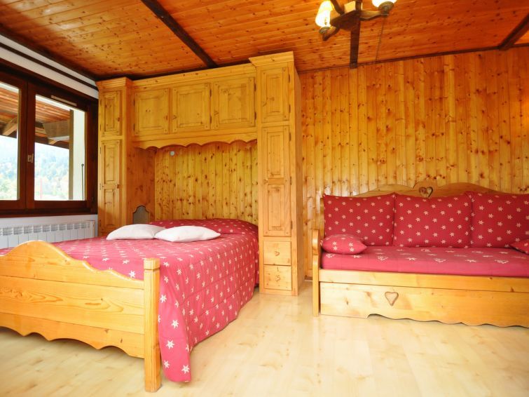 "Les Cornettes de Bise / Studio Nr 3", 1-room studio 30 m2 on 3rd floor, north-east facing position. Object suitable for 2 adults + 2 children. Comfortable and cosy furnishings: living/sleeping room with 1 double bed (140 cm, length 200 cm), 1 pull-out bed and satellite TV. Exit to the balcony.