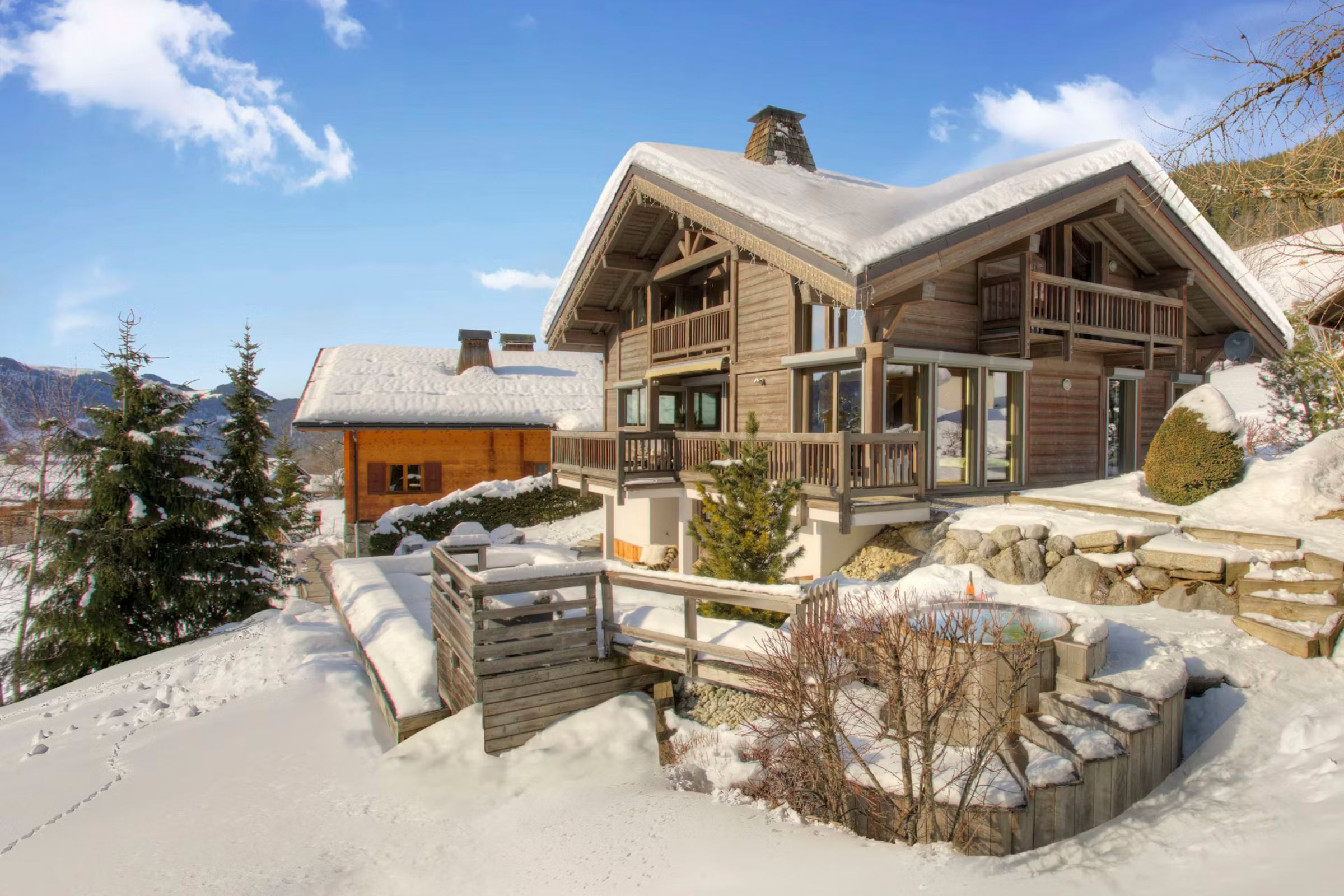 Home truths: *Not all bedrooms are photographed, but expect the style and quality to be consistent with the rest of the home. *Well-behaved pets are welcome here – please speak to your host for more information. *Your host provides a cot and high chair upon request. *The utility room has a heated rack for five pairs of ski boots. Skis, bikes, golf clubs, and other outdoor gear can be stored in the garage. *As this home is set over three floors, it may not be suitable for guests with limited mobility. *Two on-site parking spaces are available. If you'd rather not drive during your stay, a bus stops 100m from the chalet and offers access to the whole Aravis ski resort. *The barbecue and outdoor furniture are stored away during winter months. *Your host will ask for a security deposit on a credit card up to two weeks before your stay.